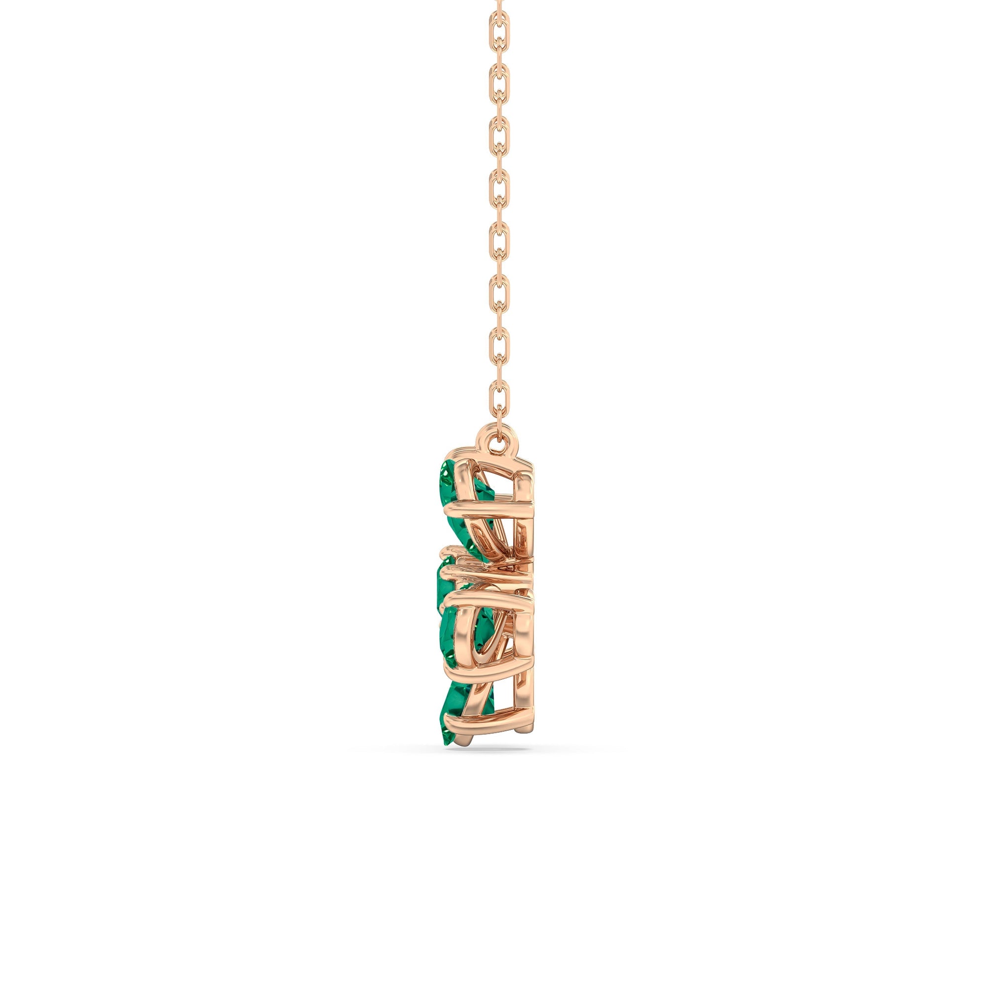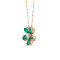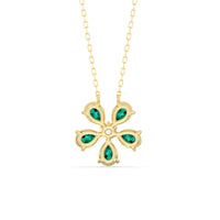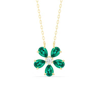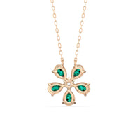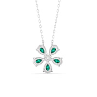 The Daisy Necklace captures the essence of feminine refinement and élan. This piece blooms with five pear-cut emerald petals surrounding a round center diamond. From the delicate floral motif, a subtle brilliance bursts forth like a breath of fresh air. This diamond necklace is the perfect graceful addition to your ensemble.