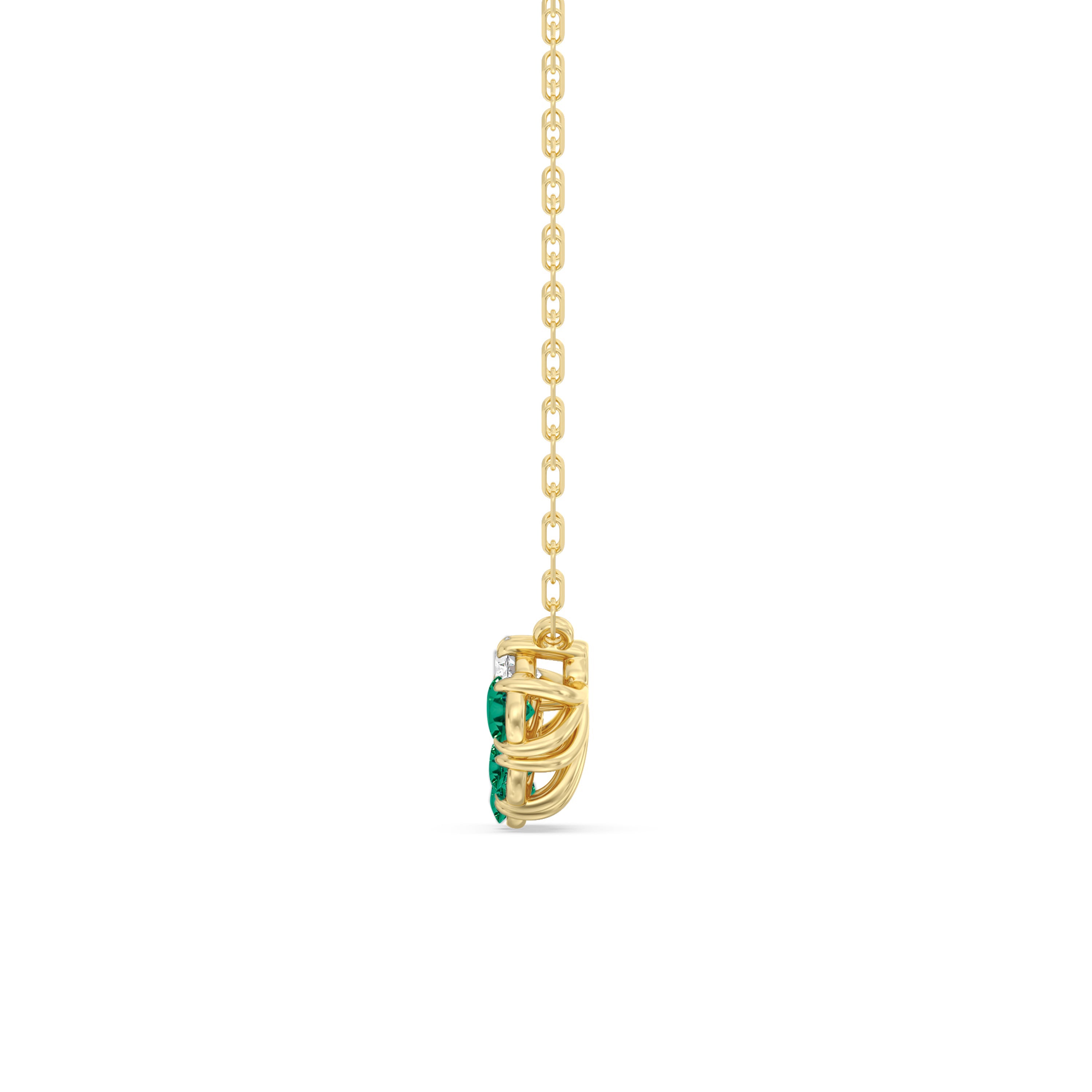 This necklace is crafted to bring a touch of understated glamour to your looks. The necklace holds a radiant pendant composed of a cluster of diamond and emerald. A single oval diamond sits in an east-west position, with its bottom side decorated with five pear-cut emerald that form a fan-shaped silhouette. The soft beauty and subtle sparkle of this necklace will draw just enough attention to your neck and face.