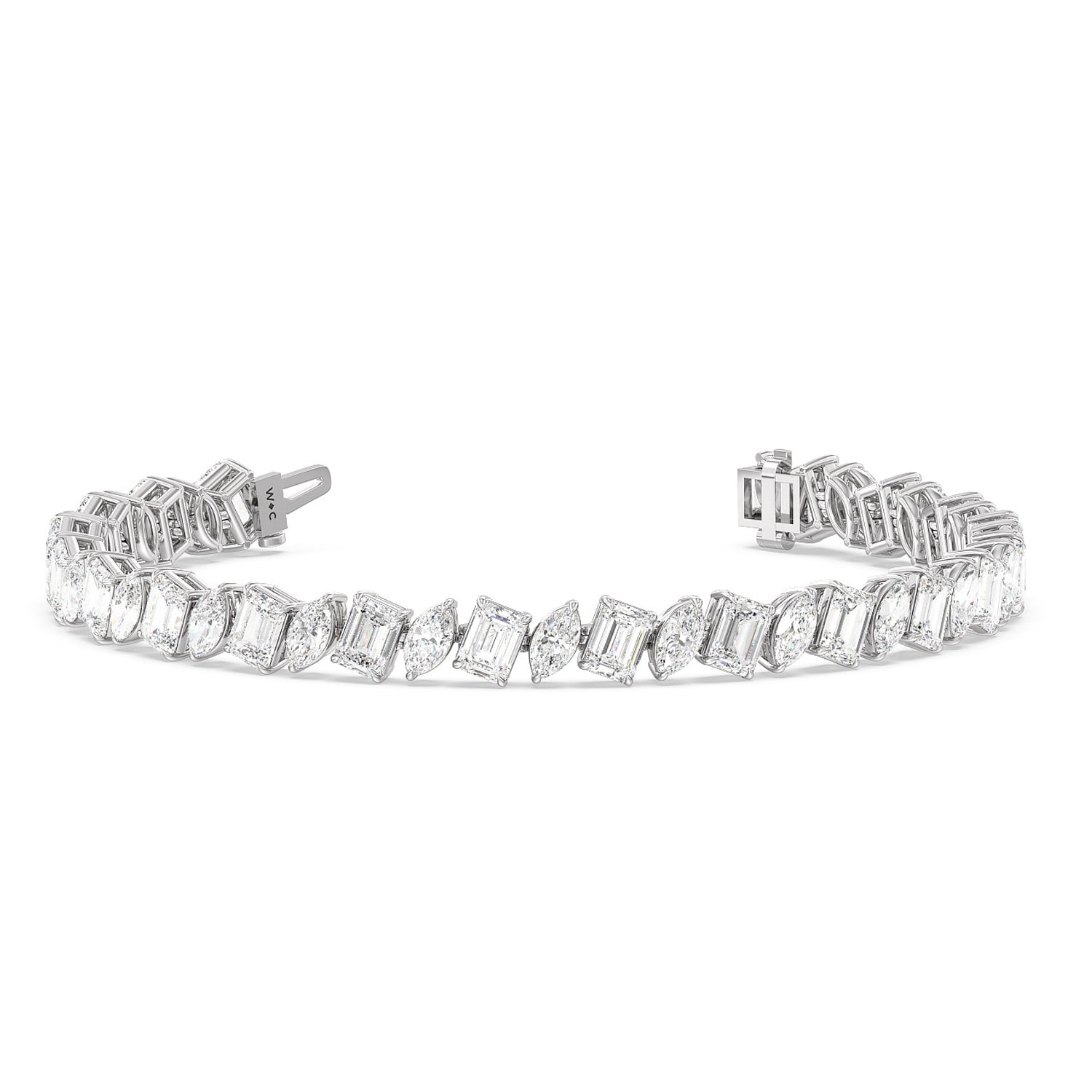 Infuse some creativity and fun into your jewelry collection. Our Slanted Pears and Emeralds Flip Flop Tennis Bracelet is designed to break away from tradition and add a dash of imagination and playfulness to your wrist.