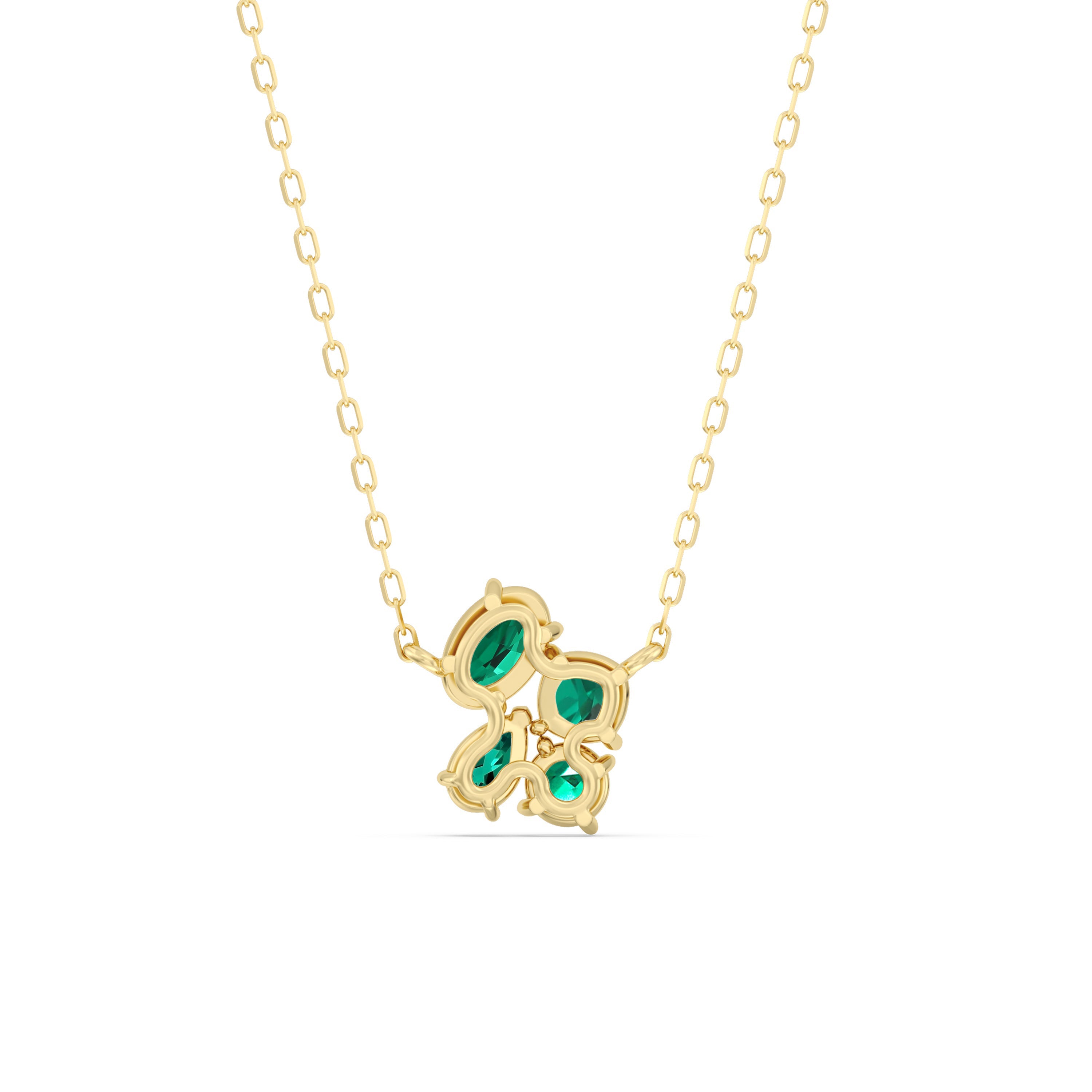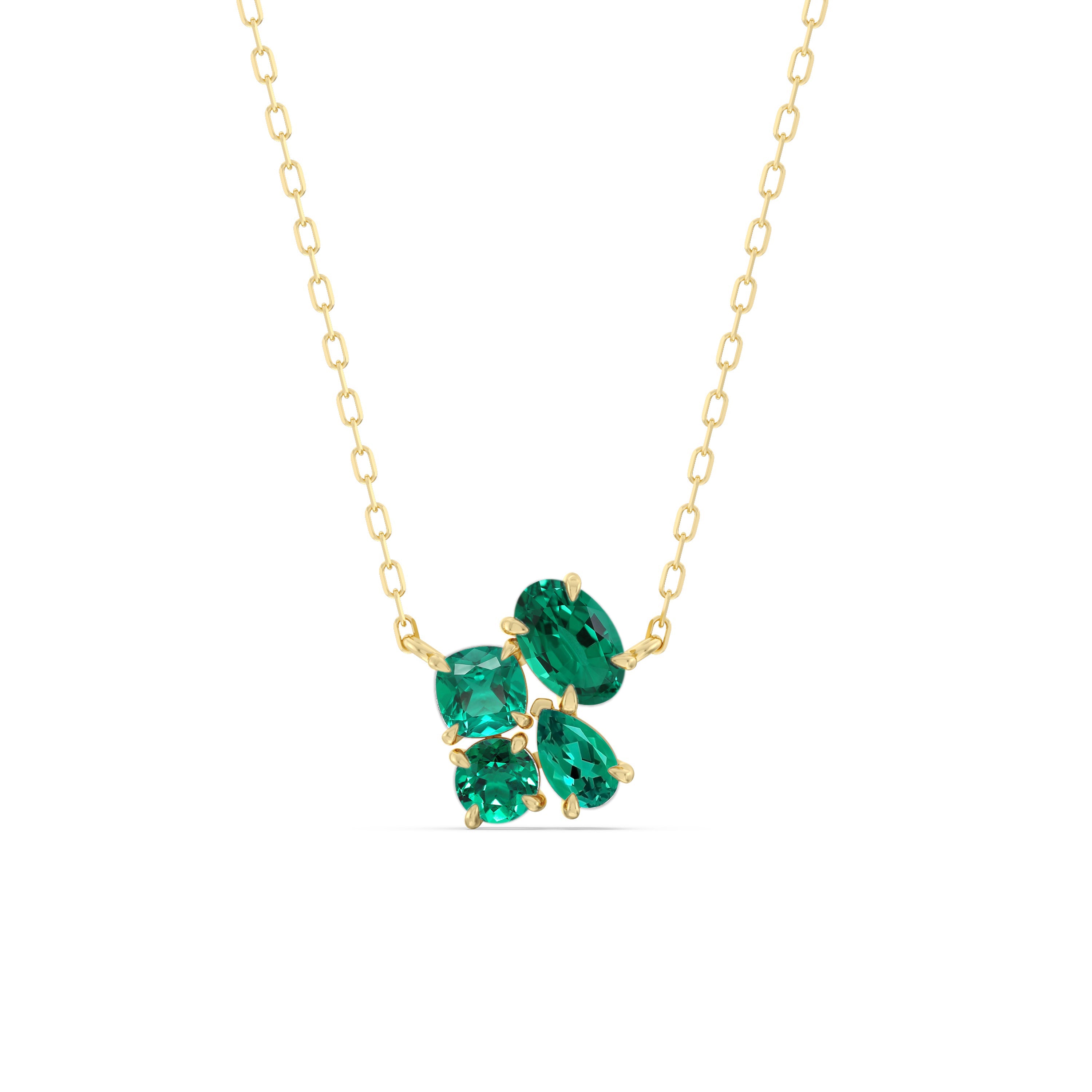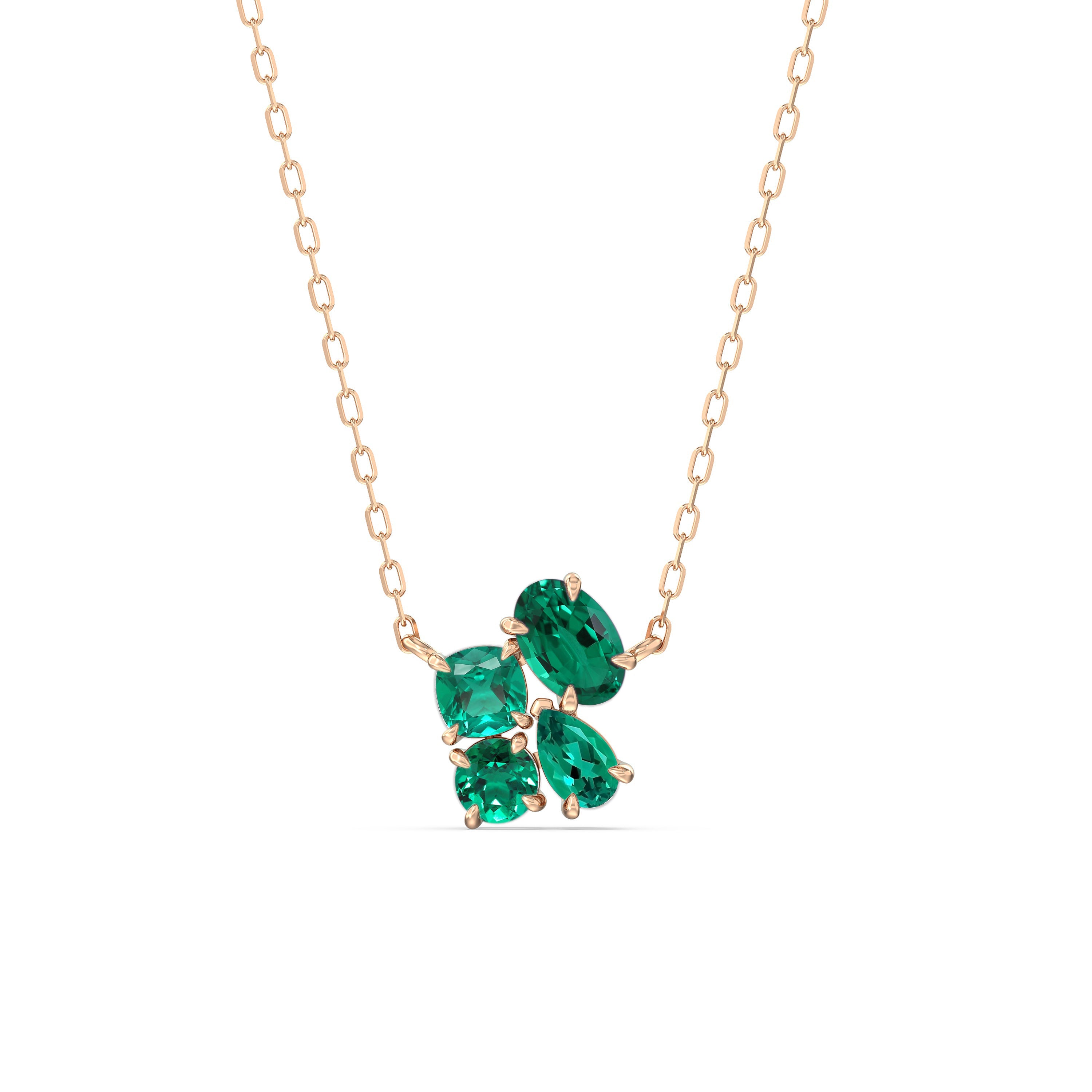 A dazzling companion that will never look out of place. This glittering necklace features four emeralds arranged in a cluster to display a brilliant shine.