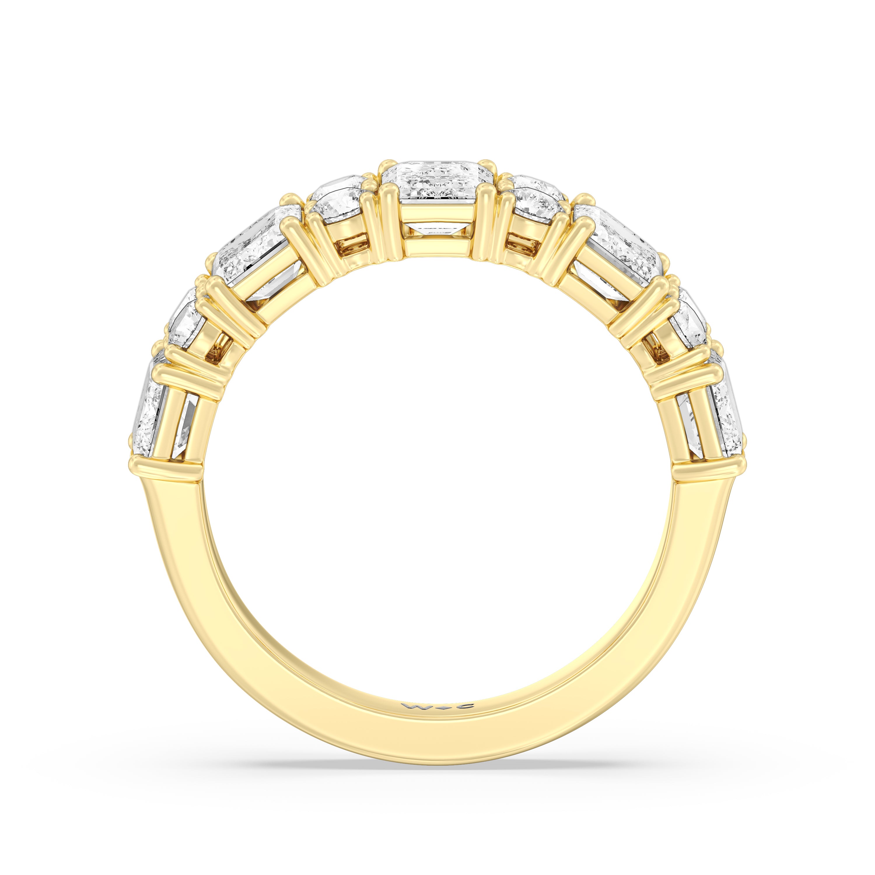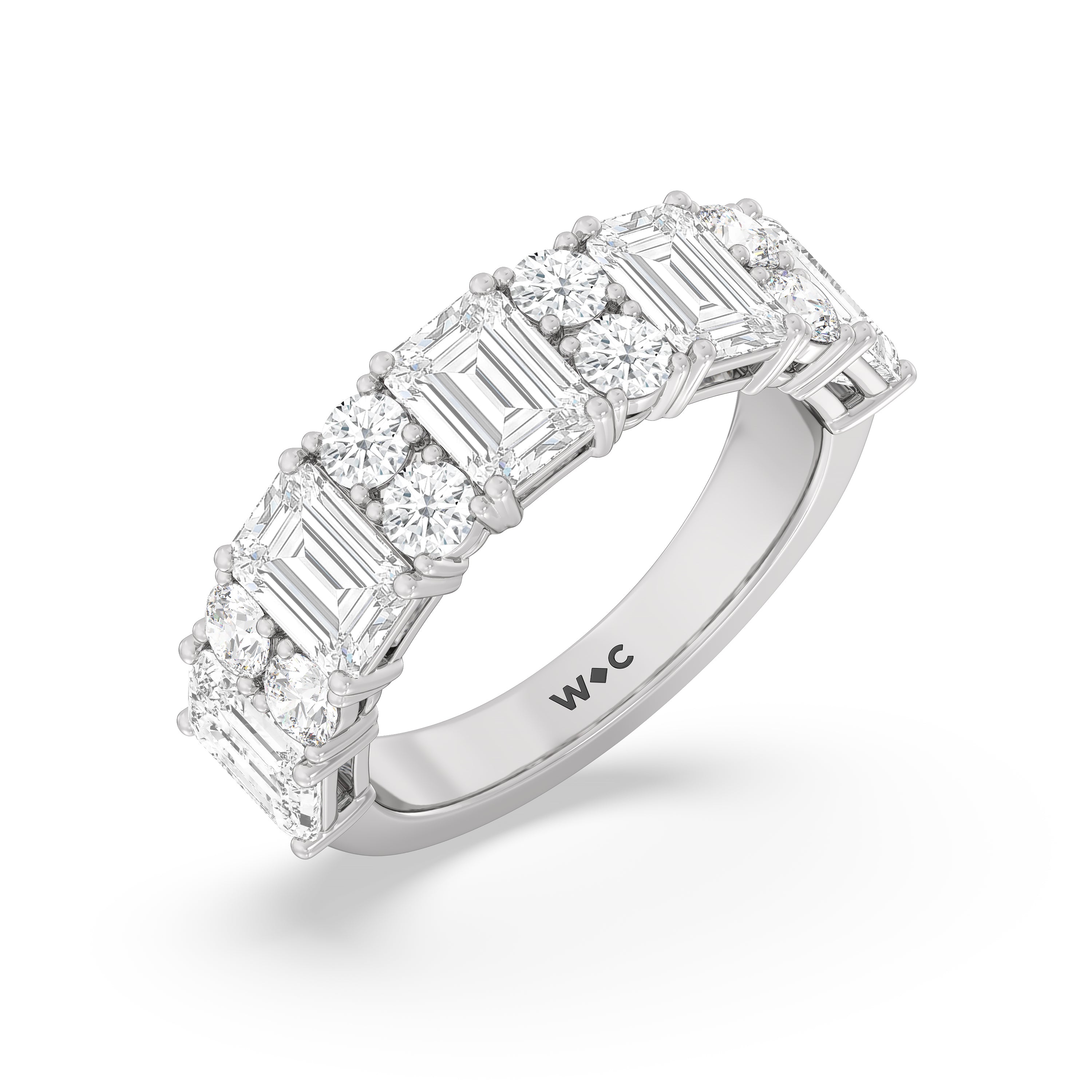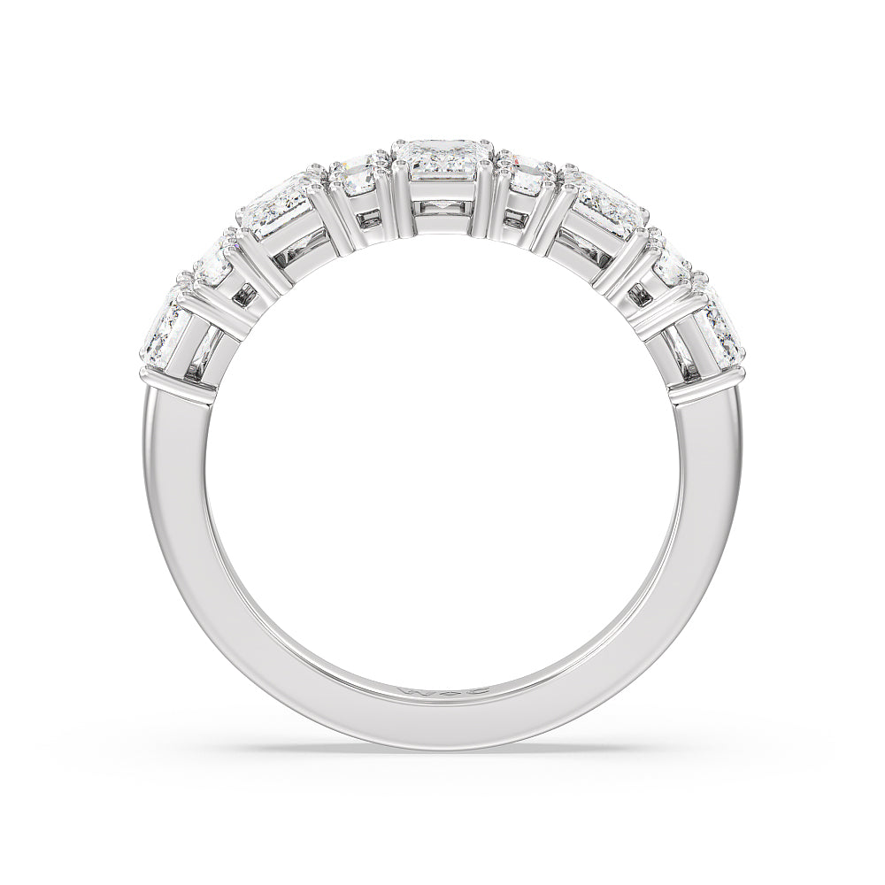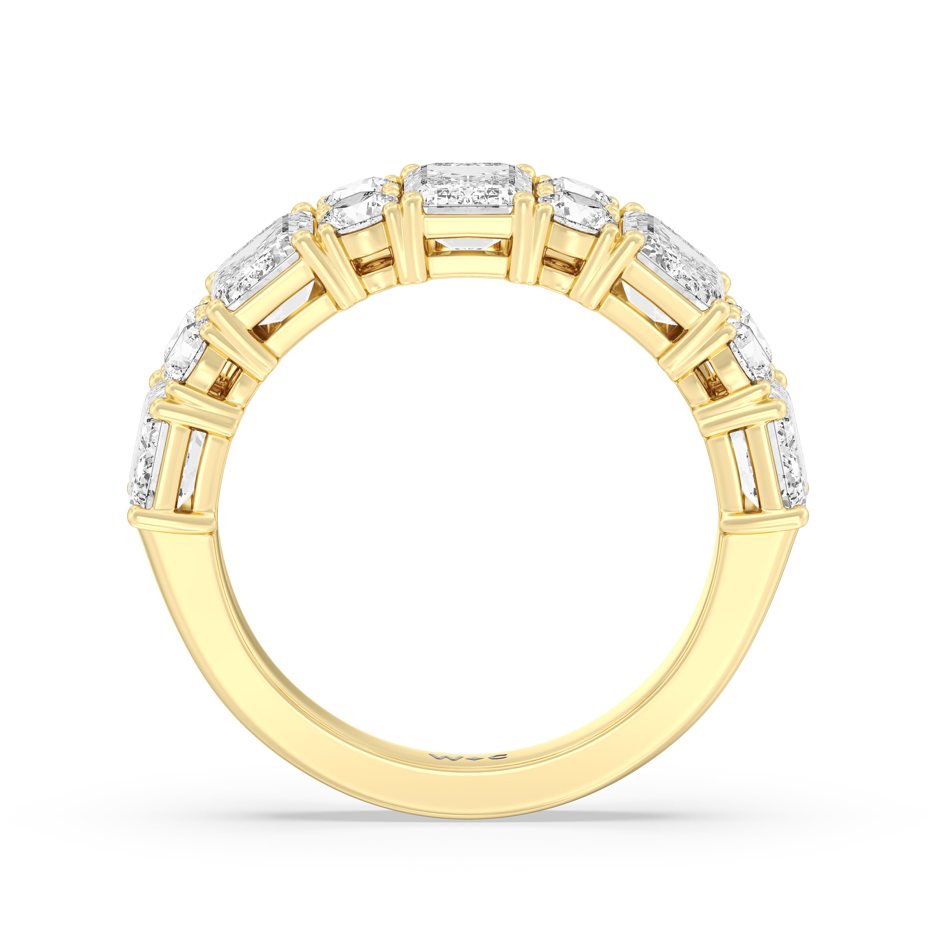 Relive the moment that changed your life forever with this sophisticated diamond anniversary band. This diamond ring features emerald-cut diamonds set in stations halfway around the ring. The elongated diamonds display striking flashes of light that stand out against the polished band.