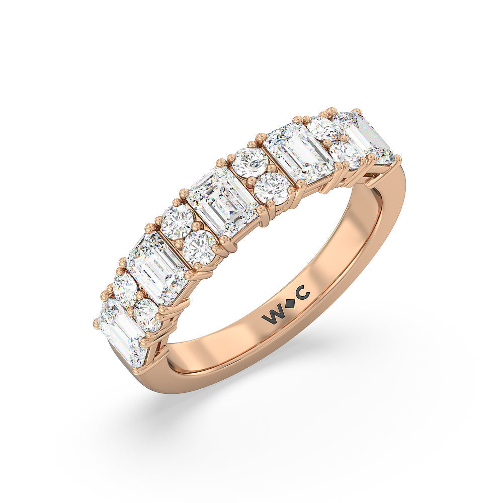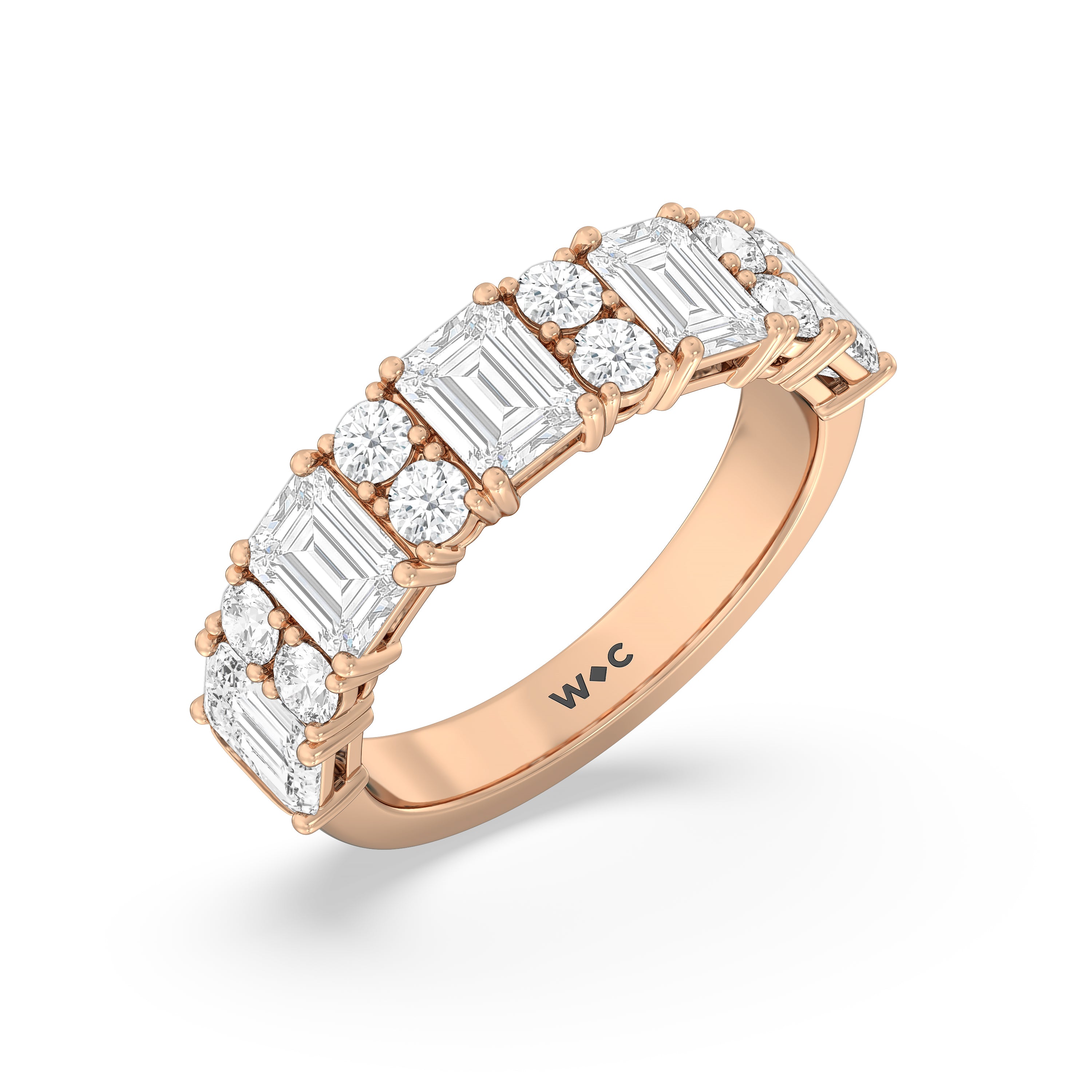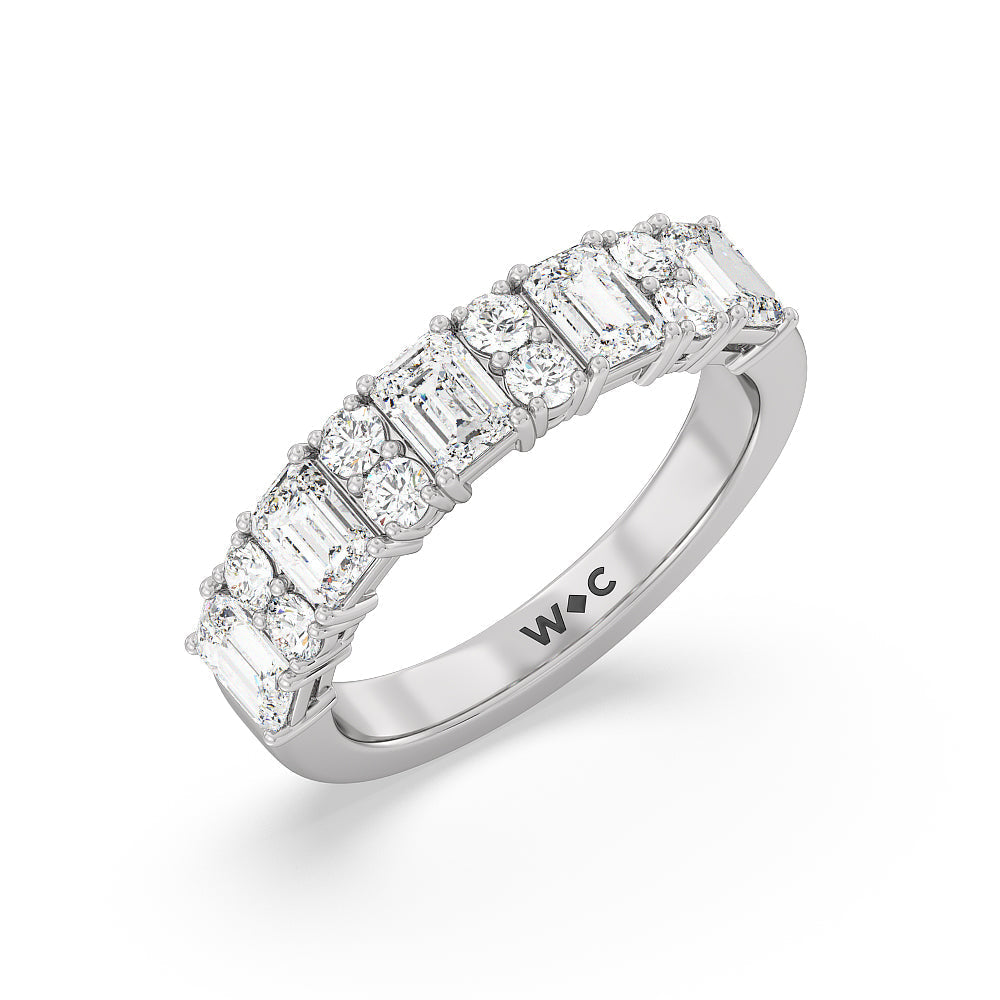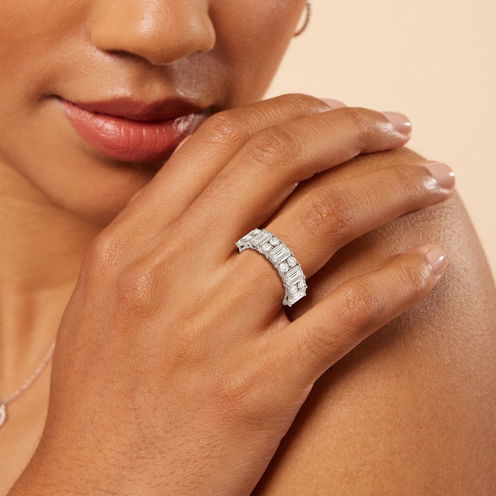 Relive the moment that changed your life forever with this sophisticated diamond anniversary band. This diamond ring features emerald-cut diamonds set in stations halfway around the ring. The elongated diamonds display striking flashes of light that stand out against the polished band.