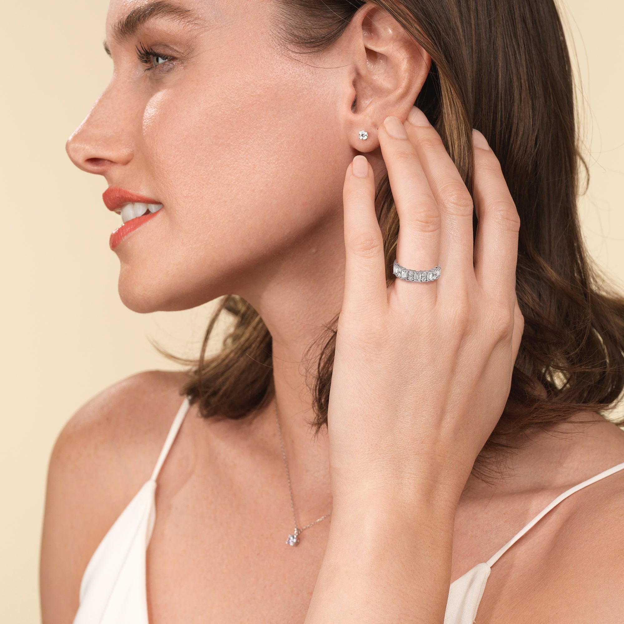 Finding the right size for a ring or band can be simple. Use our easy guide to determine a comfortable fit. Women’s ring sizes typically range from 3 to 9 within the United States. The most common women’s ring sizes are from size 6 to 7. The most popular men’s U.S. ring size is size 9. Refer to our international ring sizing chart or this printable guide to make finding the right size an easy process for your band or ring. You can also speak to our expert gemologists for more on the right finger sizing. At With Clarity, we offer complimentary resizing for engagement rings and wedding bands within 30 days of receipt.