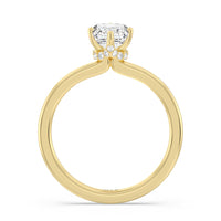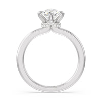 This gorgeous kite set engagement ring features diamond accents on the crown gallery and a petite band for an effortlessly chic style.