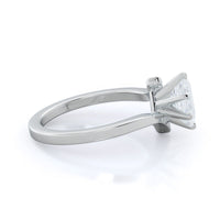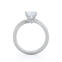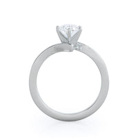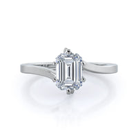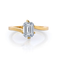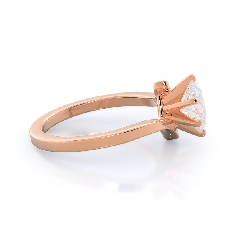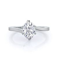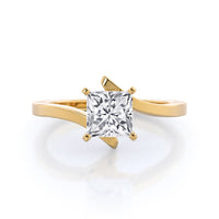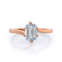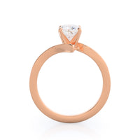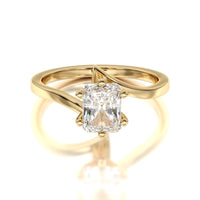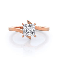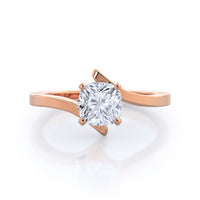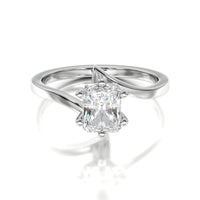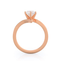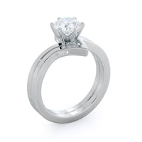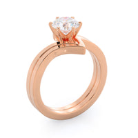 With a smooth band curving all around, the ends of this band finish in a dramatic upwards curve for a striking yet minimal look. A unique solitaire ring that makes a statement.