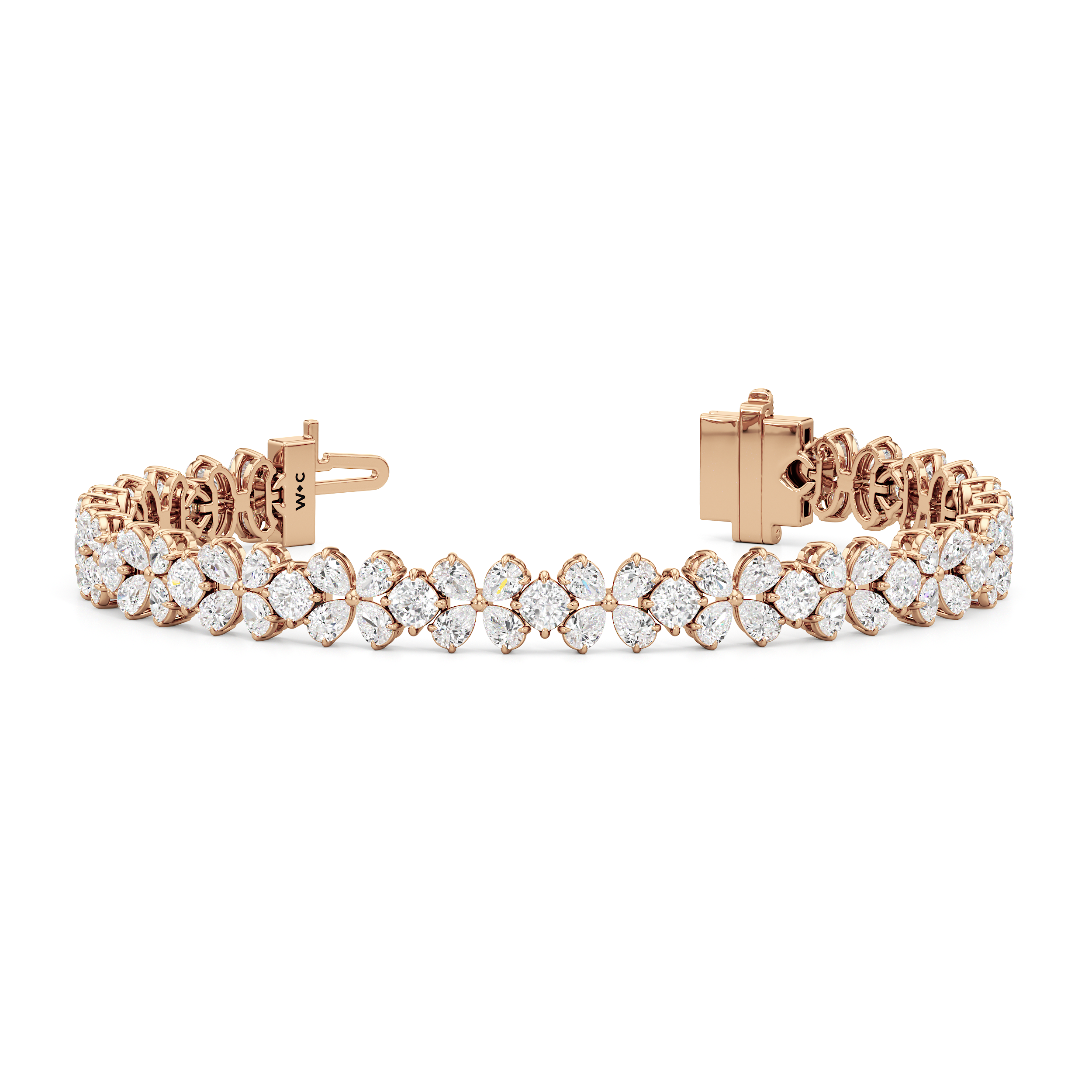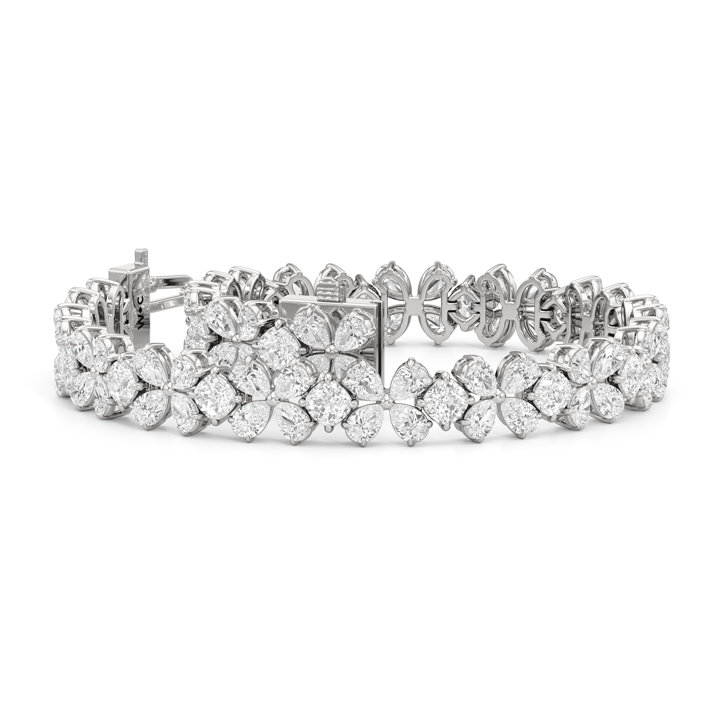 The Clover Bracelet carries effortless charm. It boasts a row of stylized floral motifs, each made of precious diamonds selected for their vibrant scintillation. The bracelet's design is inspired by the iconic four-leaf clover, bringing luck with you wherever you may go.