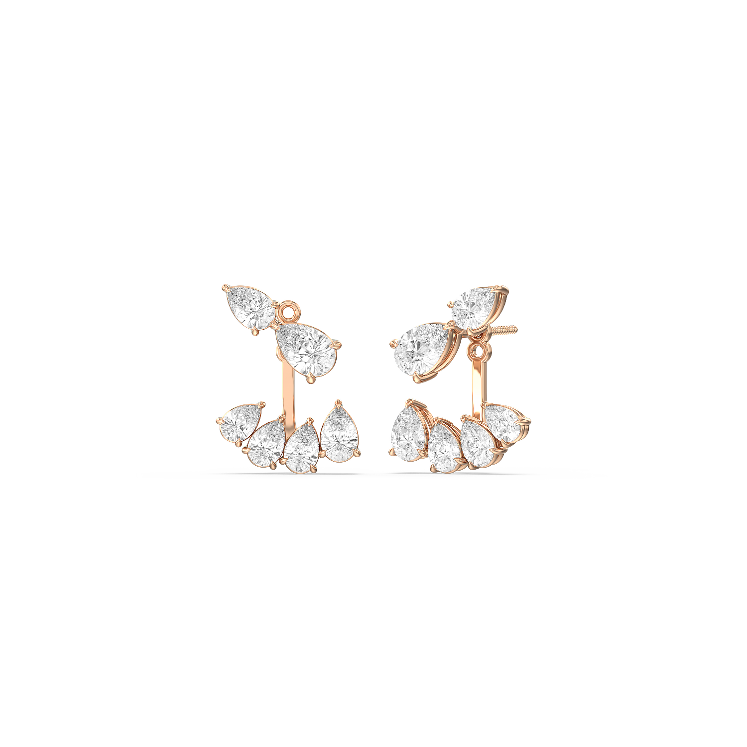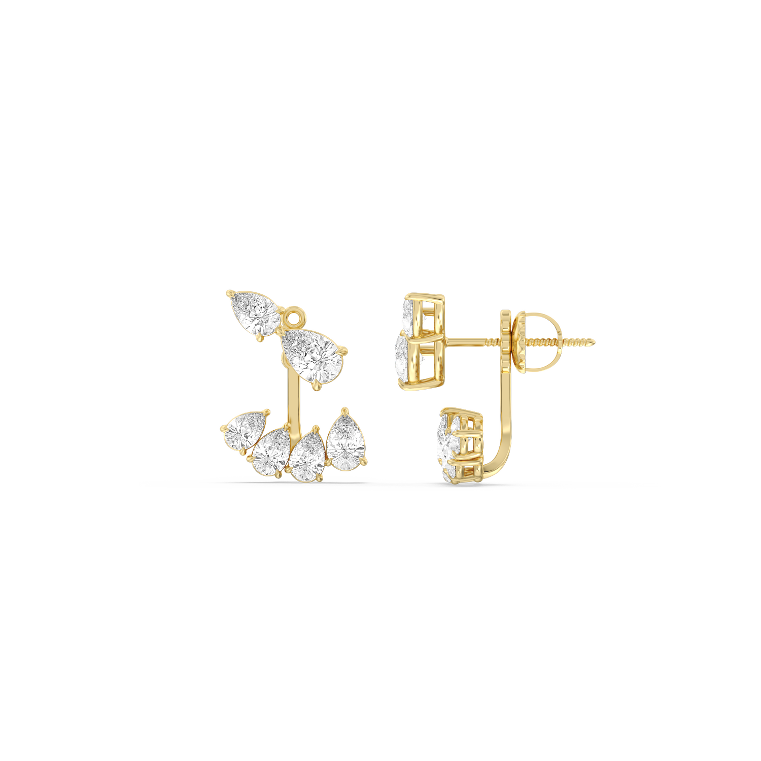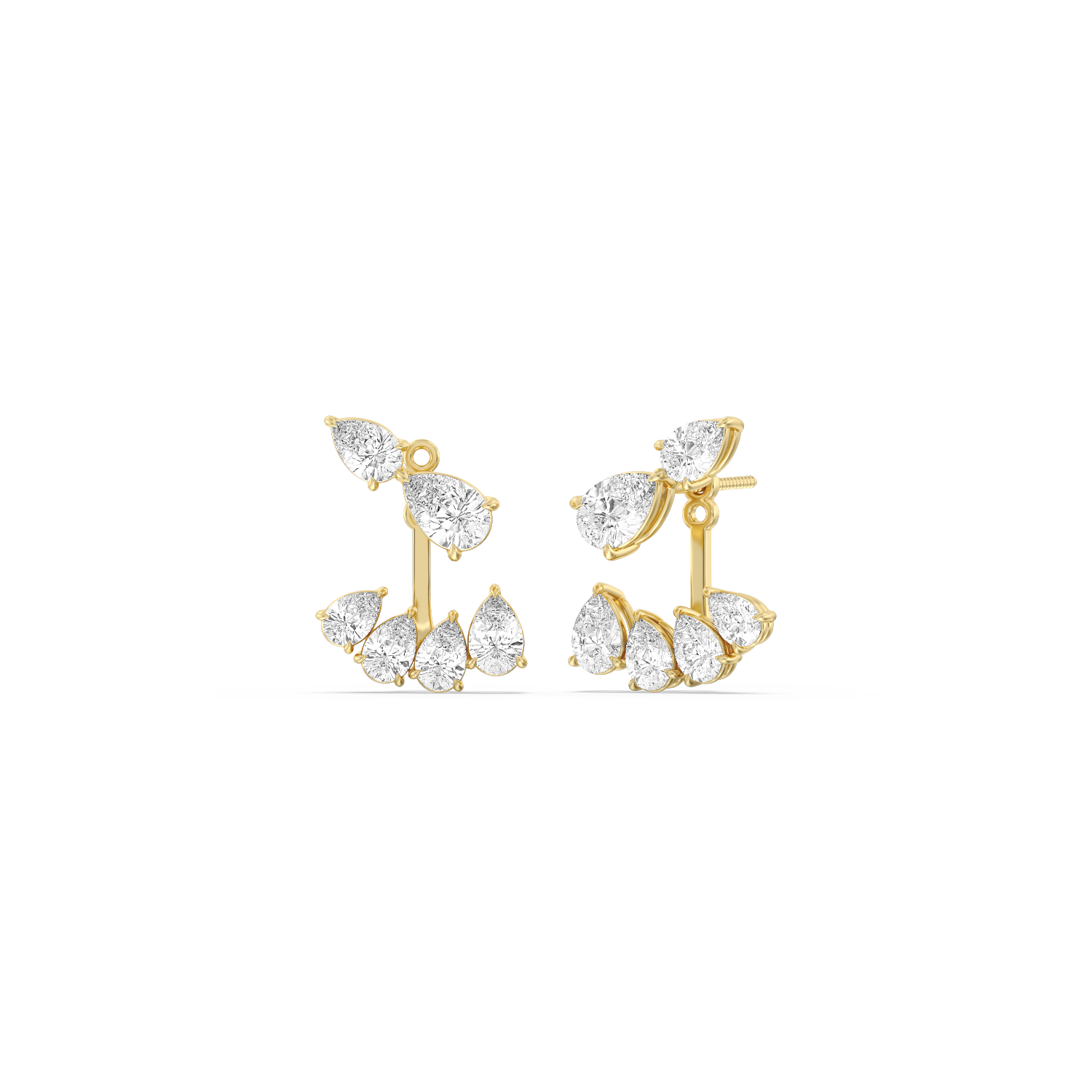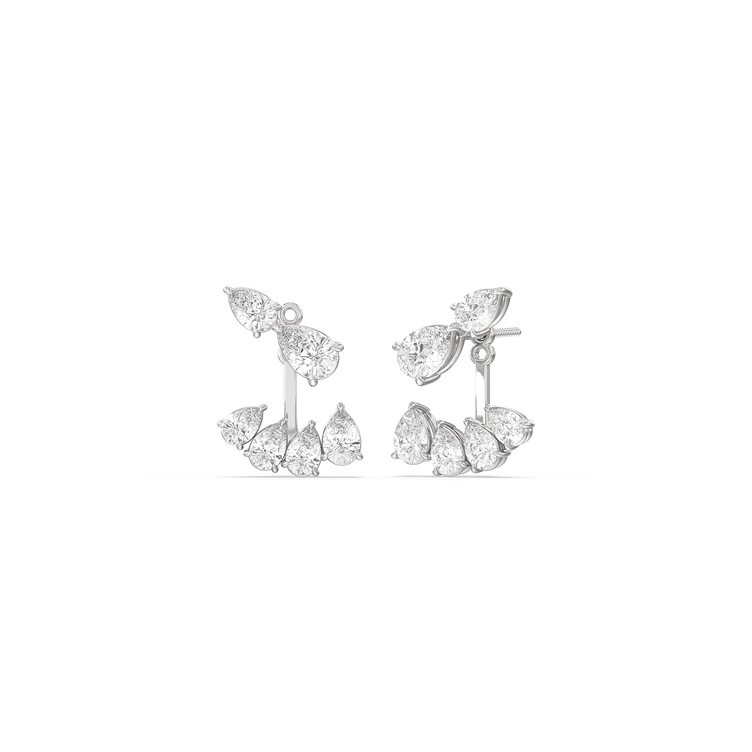 Get ready to have fun with your diamonds! Our Front-Back Pear Diamond Earrings are designed to add a touch of whimsy and creativity to your jewelry collection. These earrings are the perfect blend of elegance and playfulness, featuring twin pear diamonds on the climber tops and pear-shaped diamonds that elegantly dangle at the front and back. It's a fresh and unique way to wear diamonds that's sure to capture attention and spark conversations.