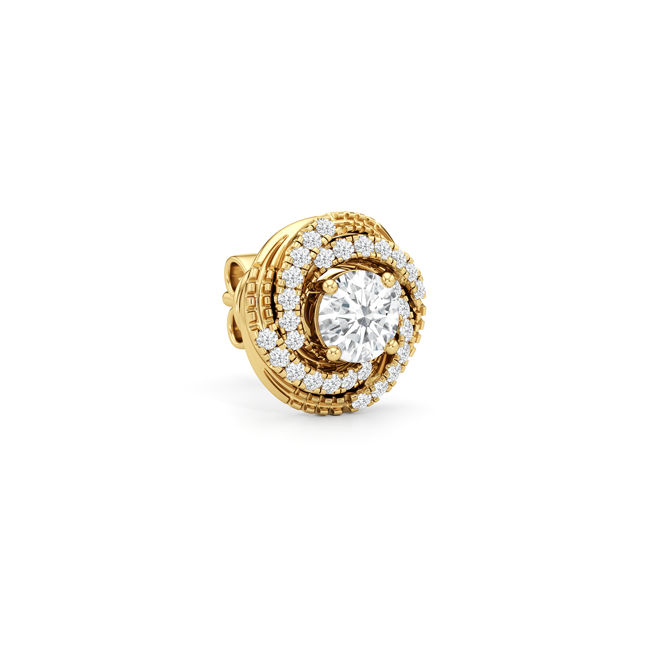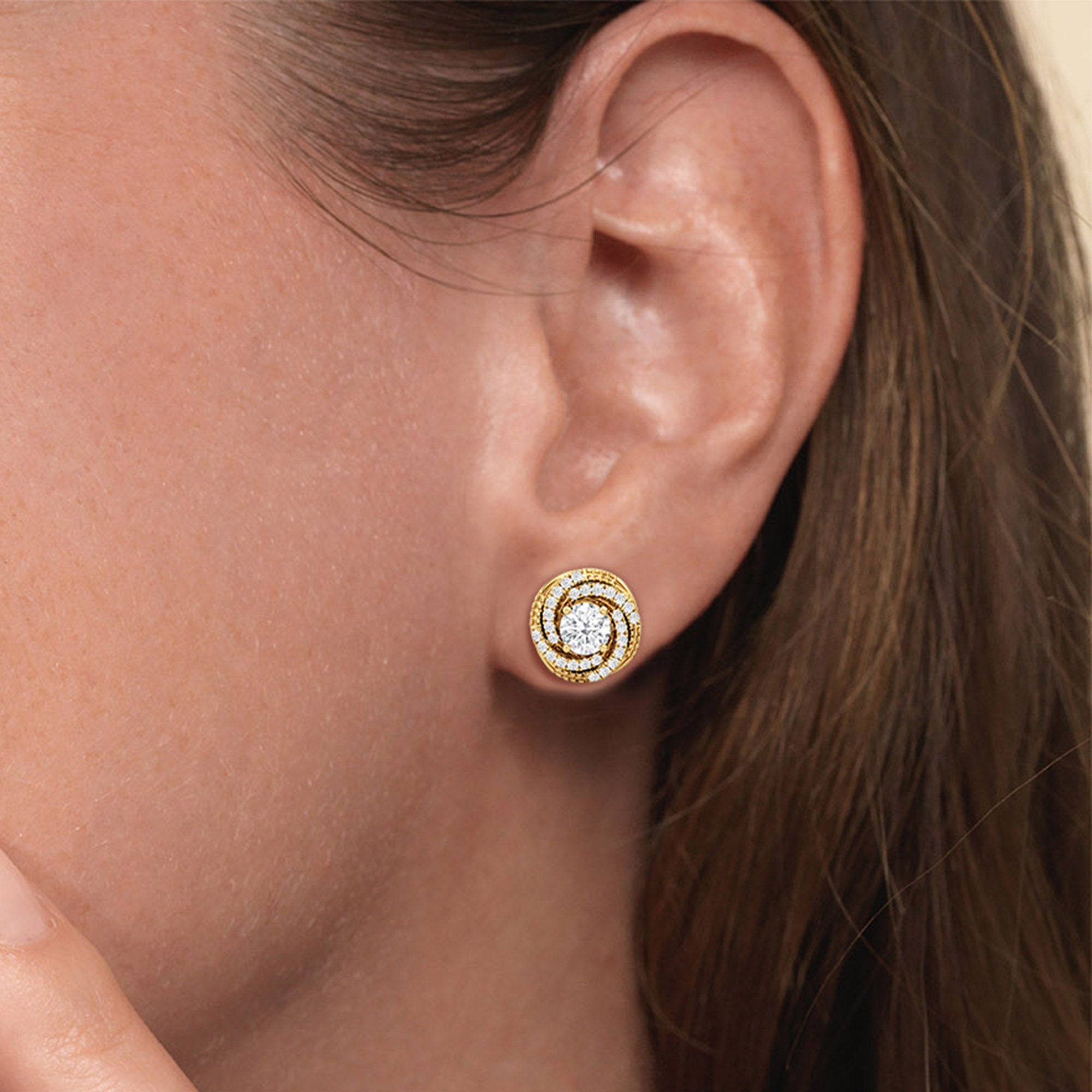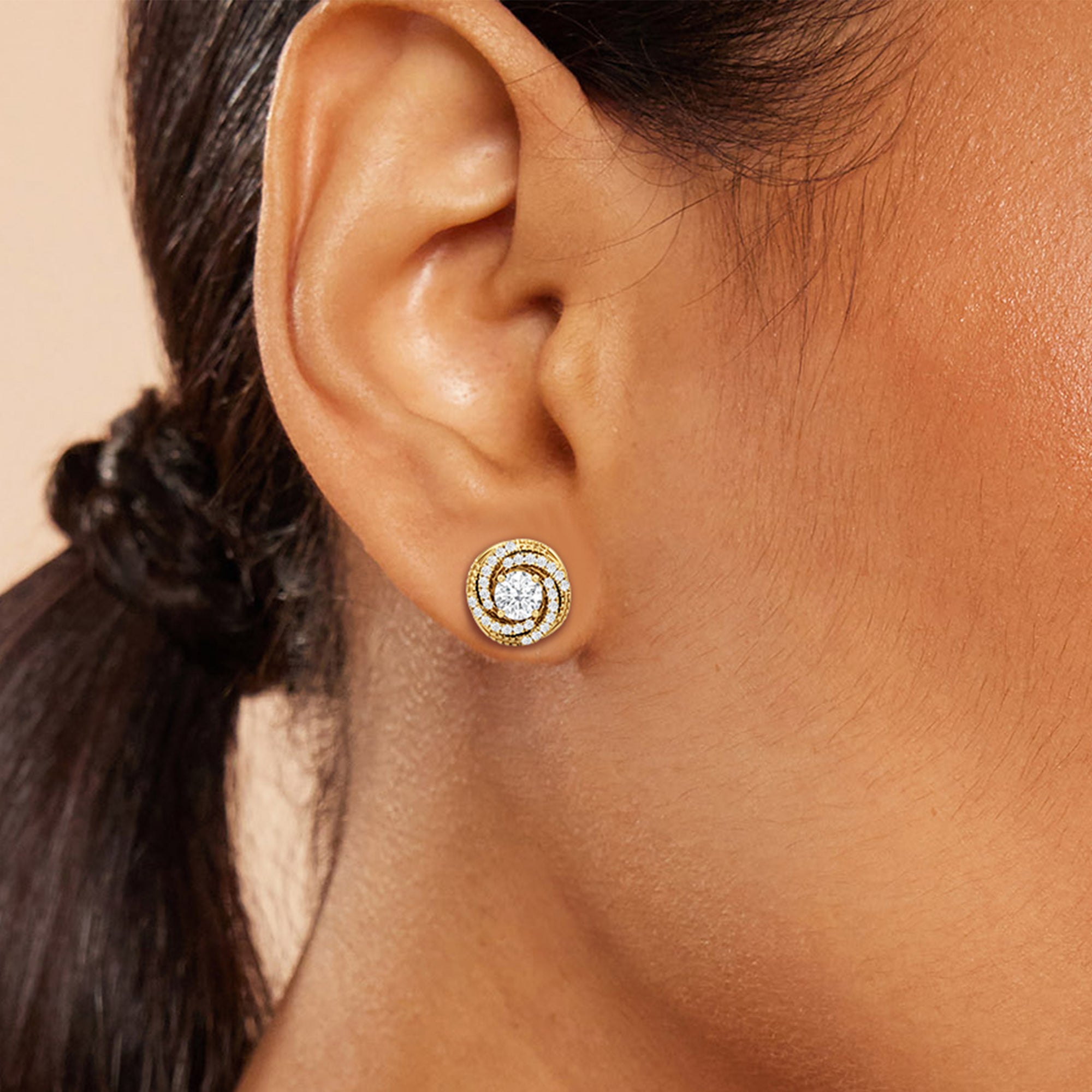 These diamond earrings offer offbeat elegance that adapts perfectly to any outfit. The swirling design of these diamond studs brings a subtle geometric play to a simple loop. Adding this to your collection ensures you have a pair that can easily transition from day to night.