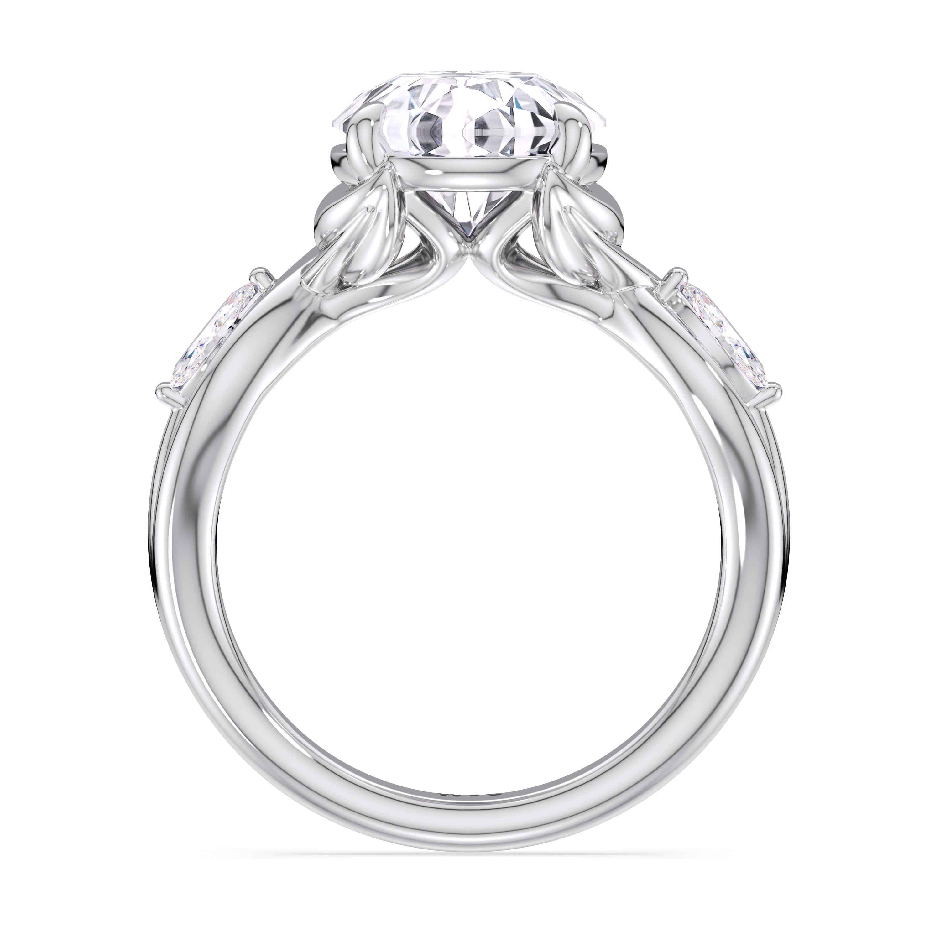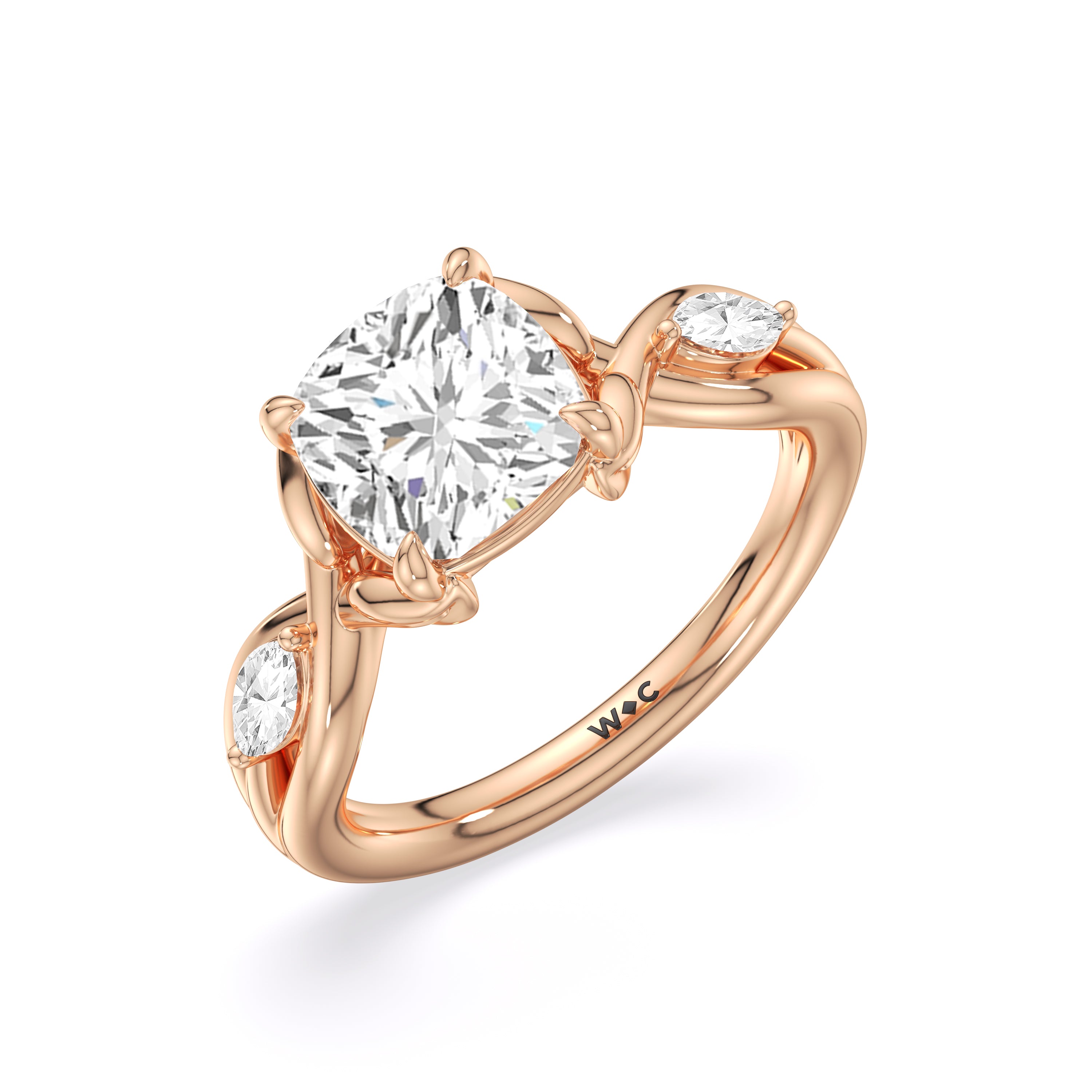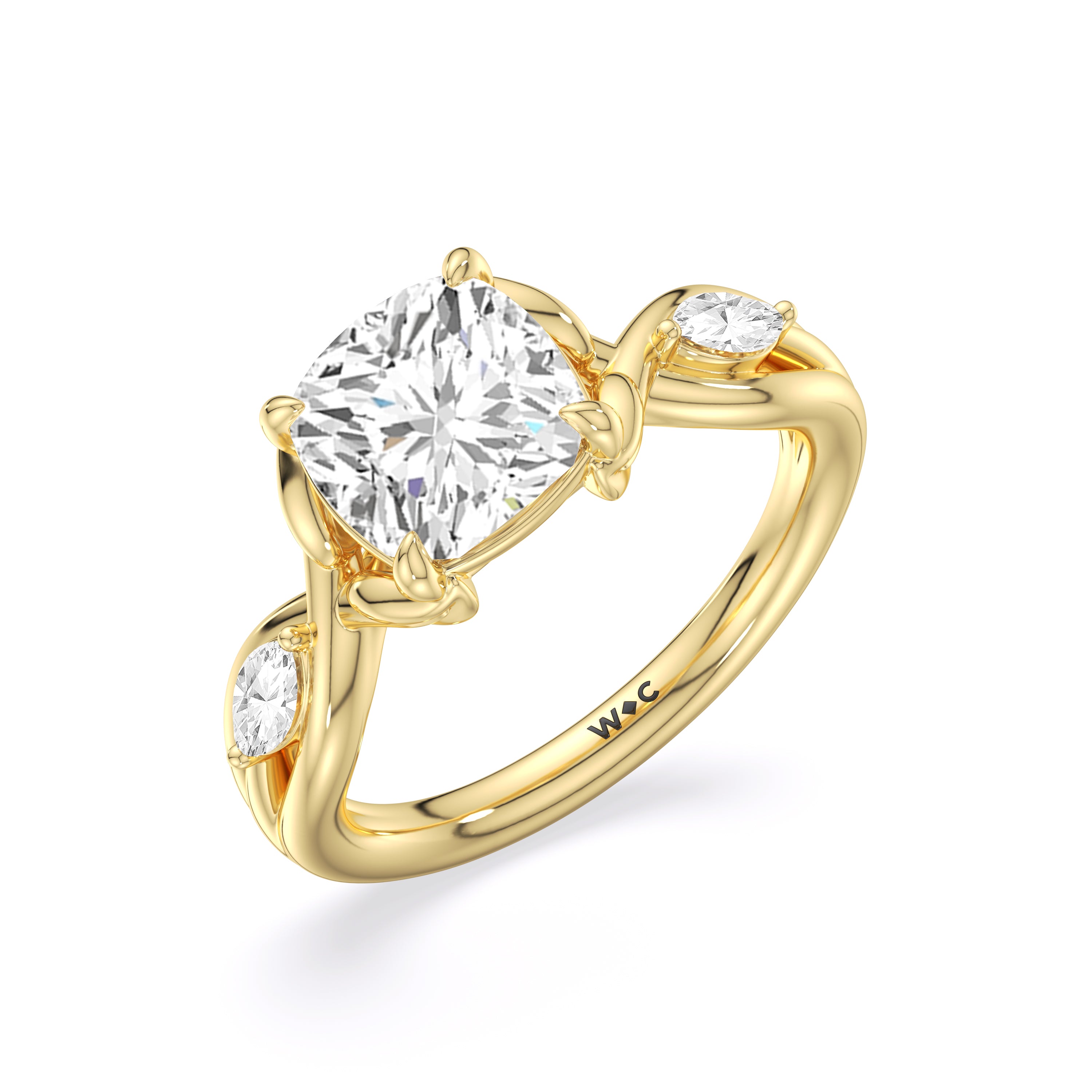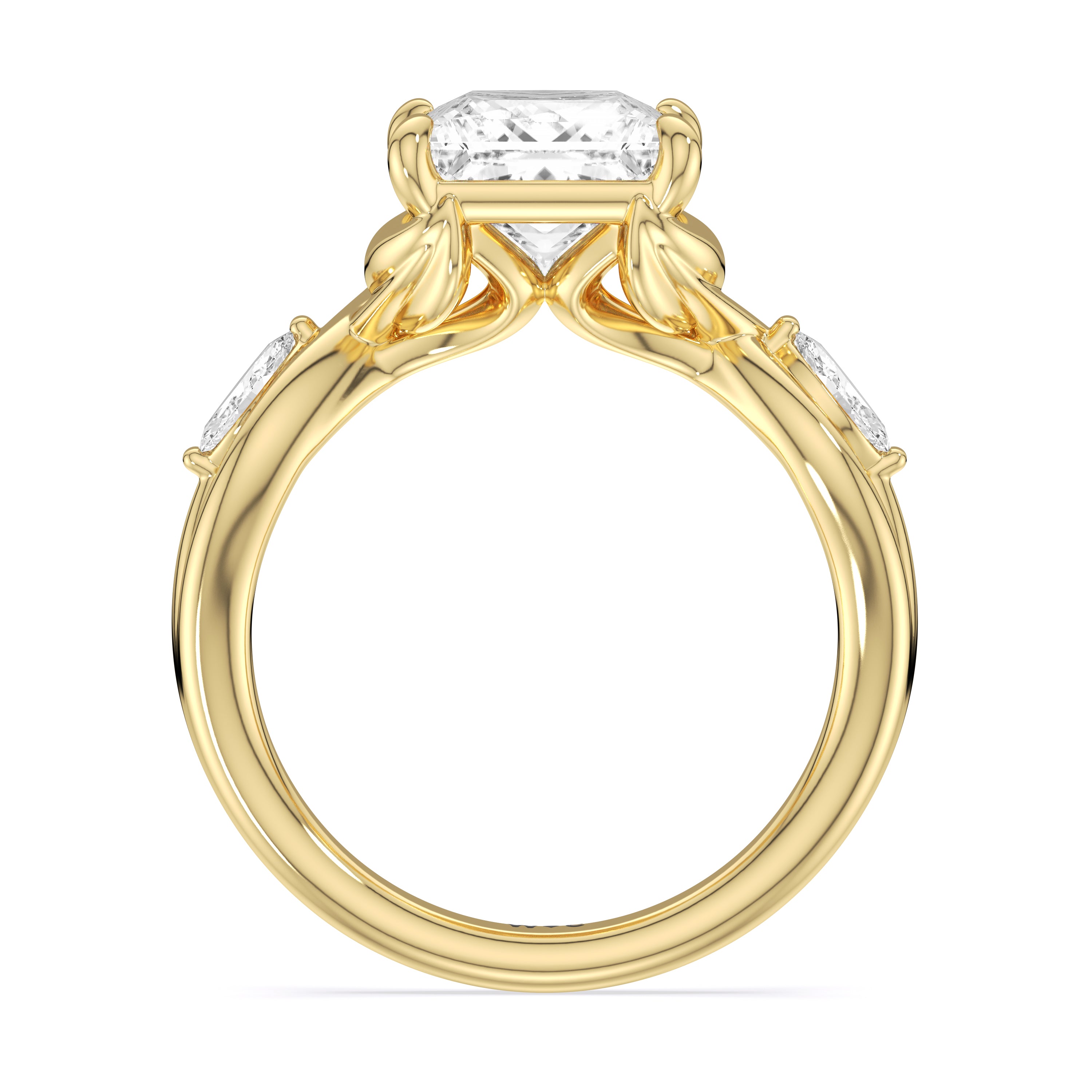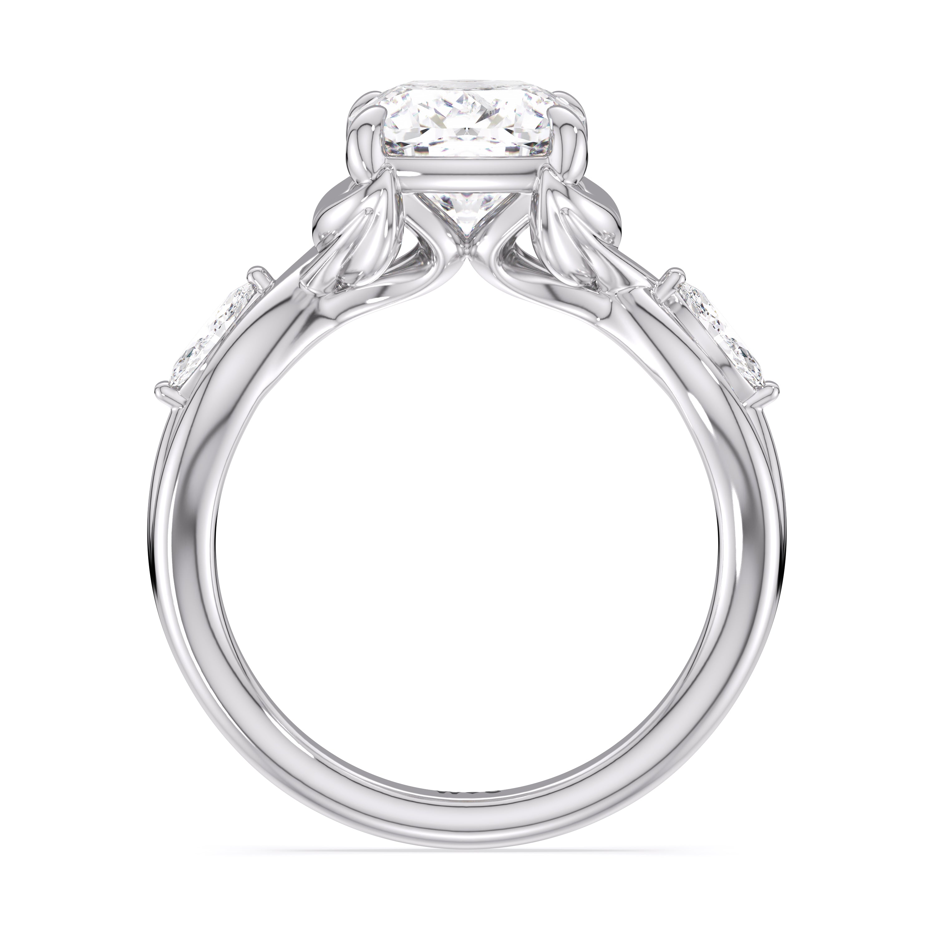 The foliage motif of this diamond engagement ring symbolizes a love that blossoms like a garden of flowers. The band holds a scintillating diamond center stone, presented in a four-prong setting. The ring's vine-inspired shoulders are enhanced by the pointed and curved profile of a marquise diamond, offering an elegant finish to the ring.