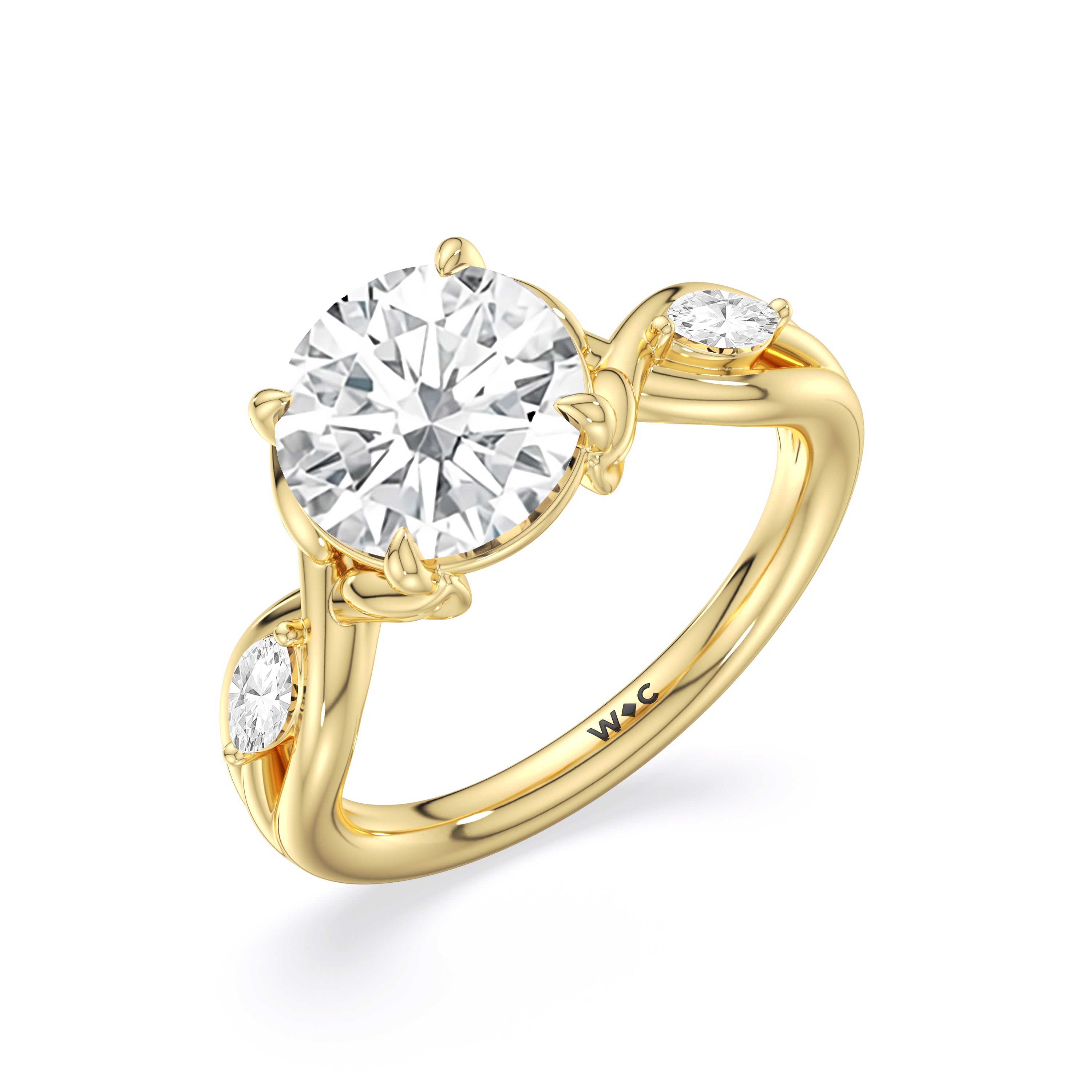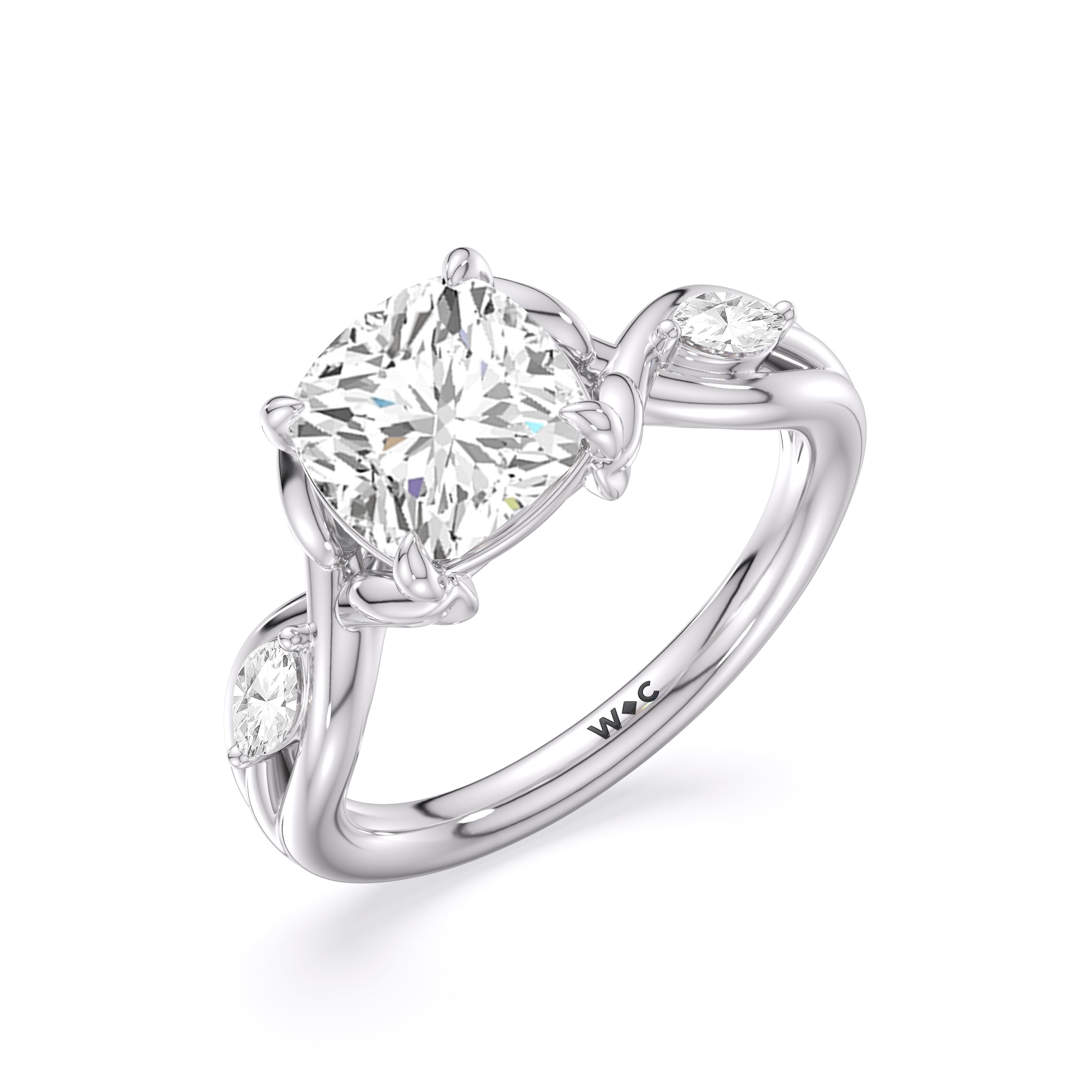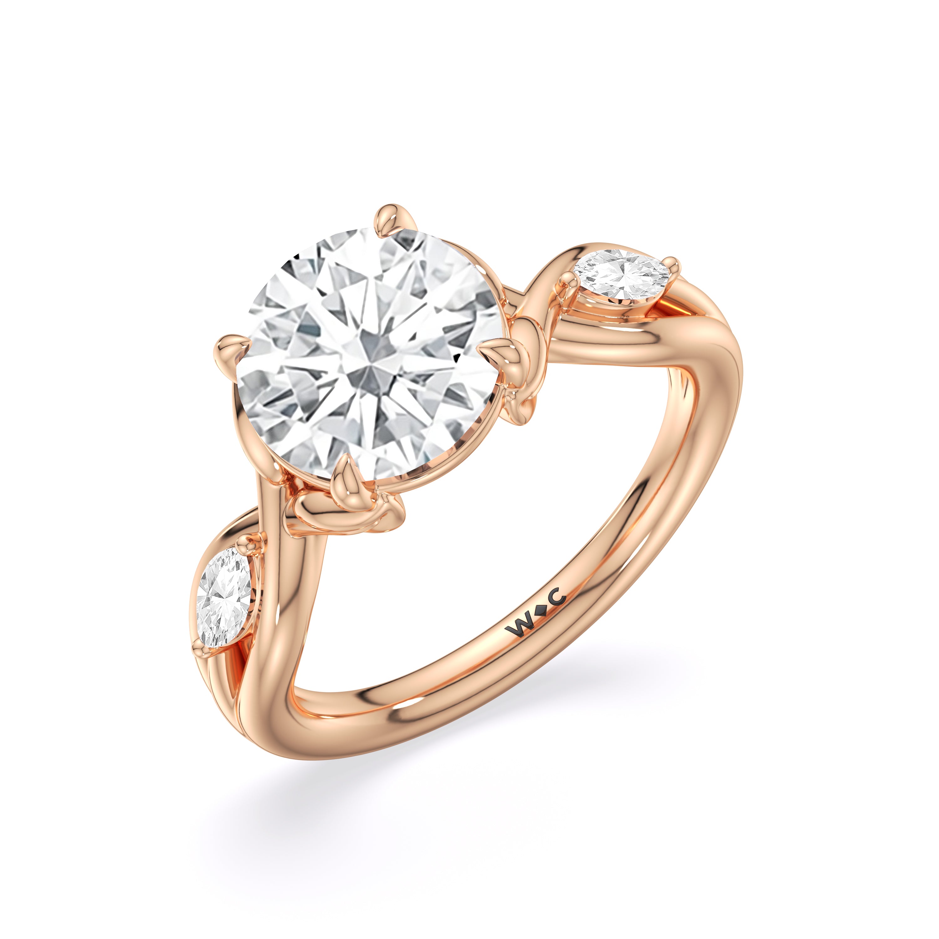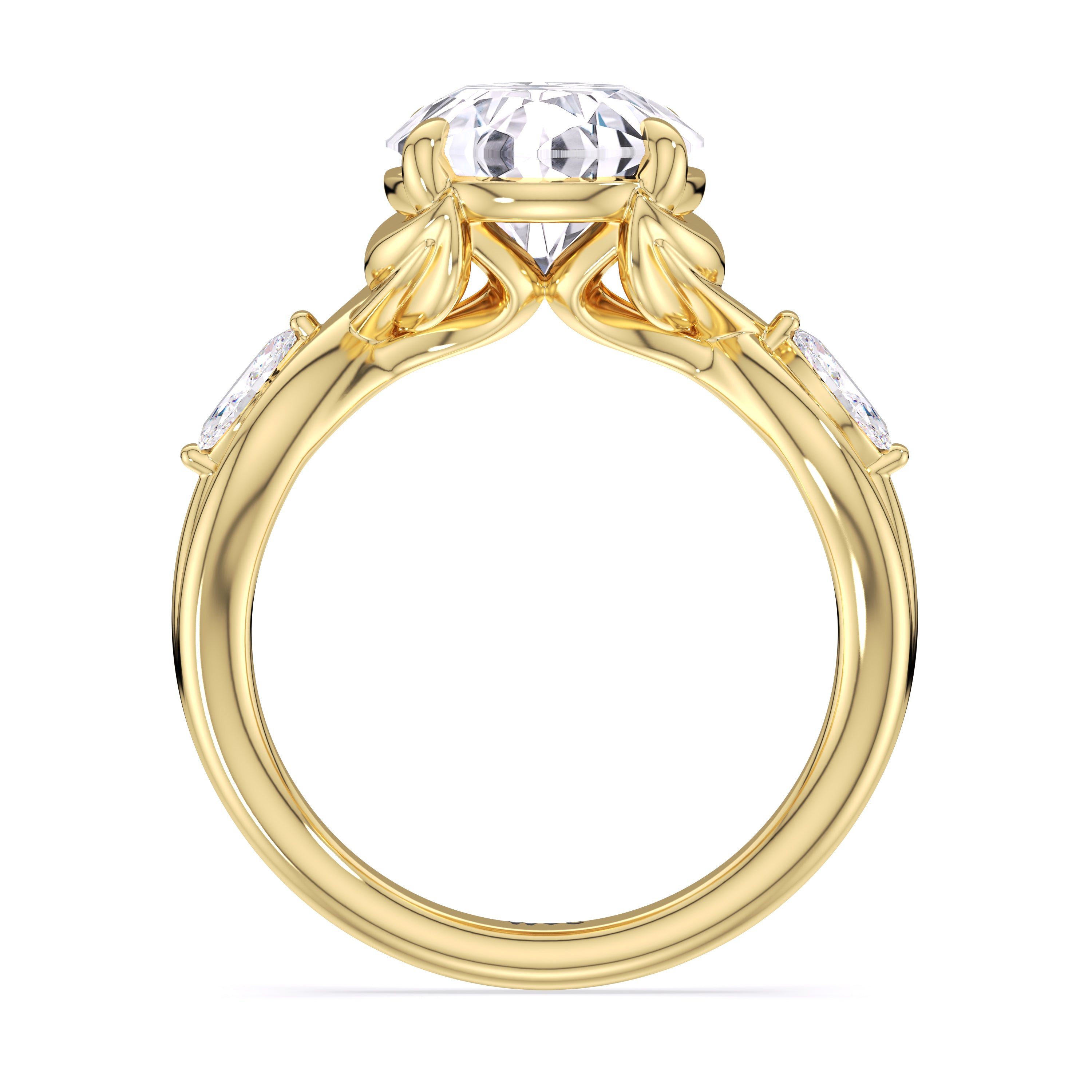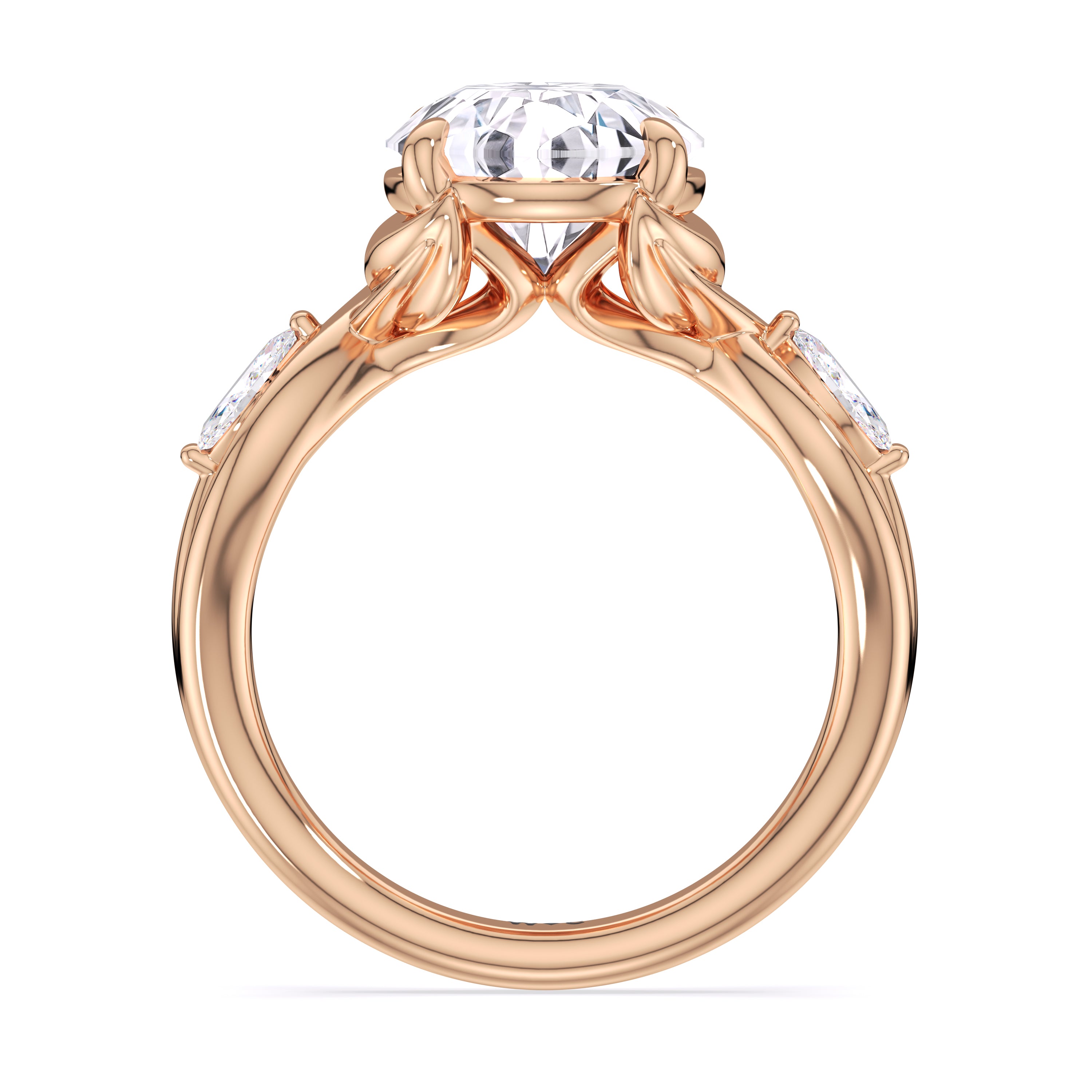 The foliage motif of this diamond engagement ring symbolizes a love that blossoms like a garden of flowers. The band holds a scintillating diamond center stone, presented in a four-prong setting. The ring's vine-inspired shoulders are enhanced by the pointed and curved profile of a marquise diamond, offering an elegant finish to the ring.