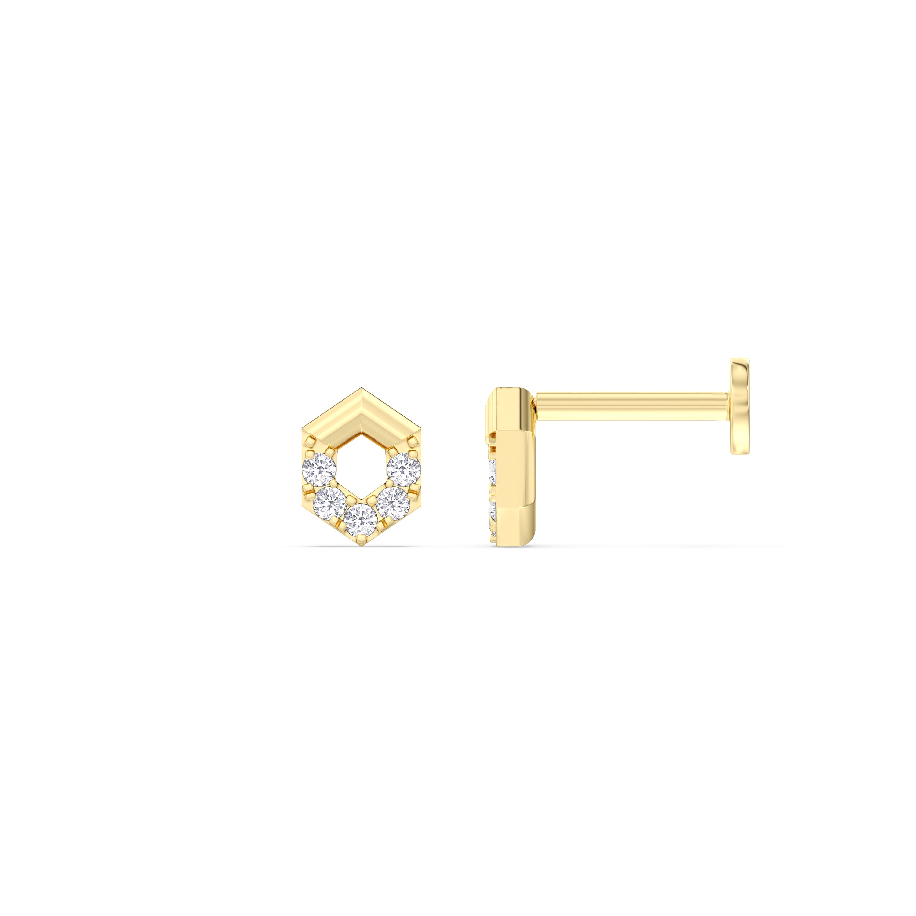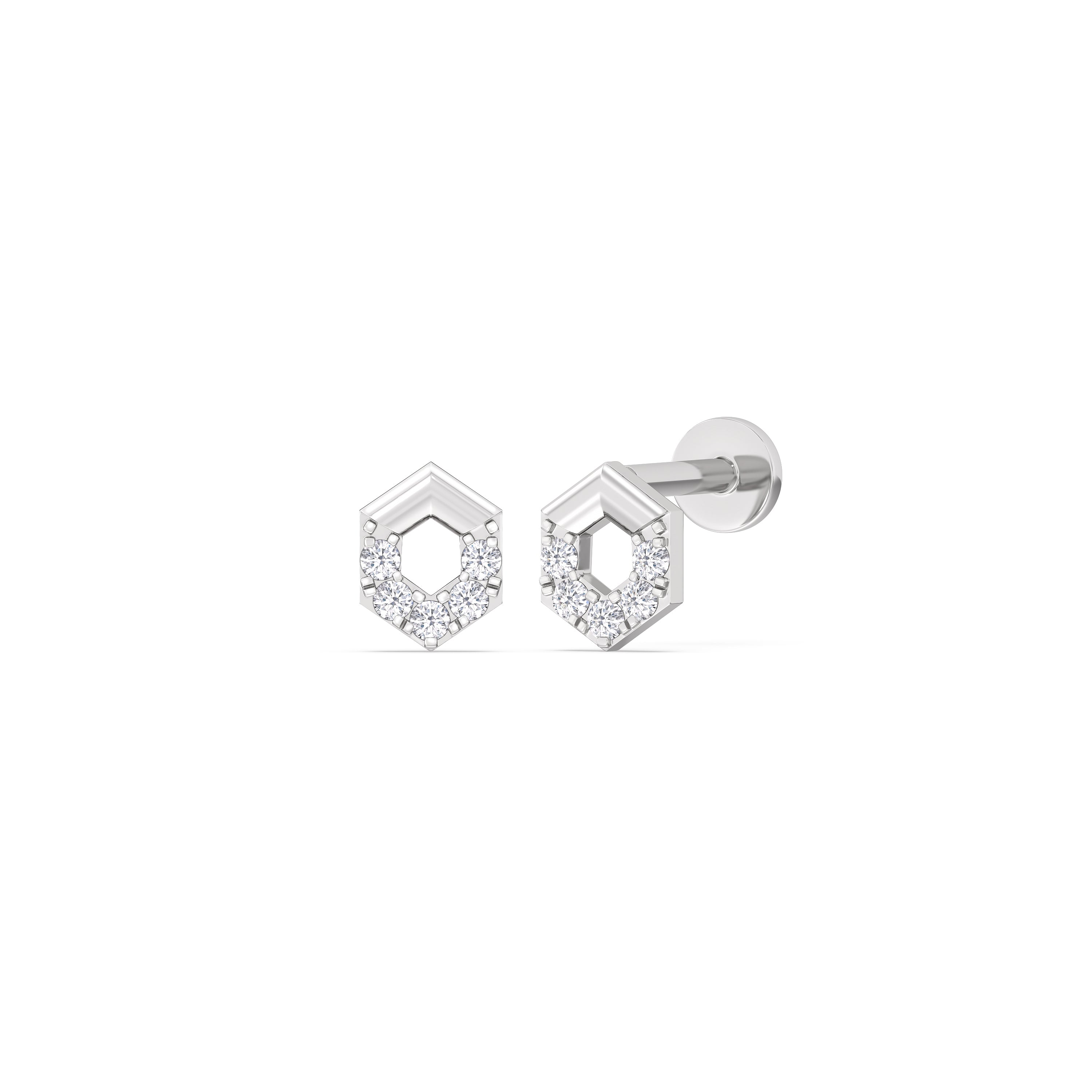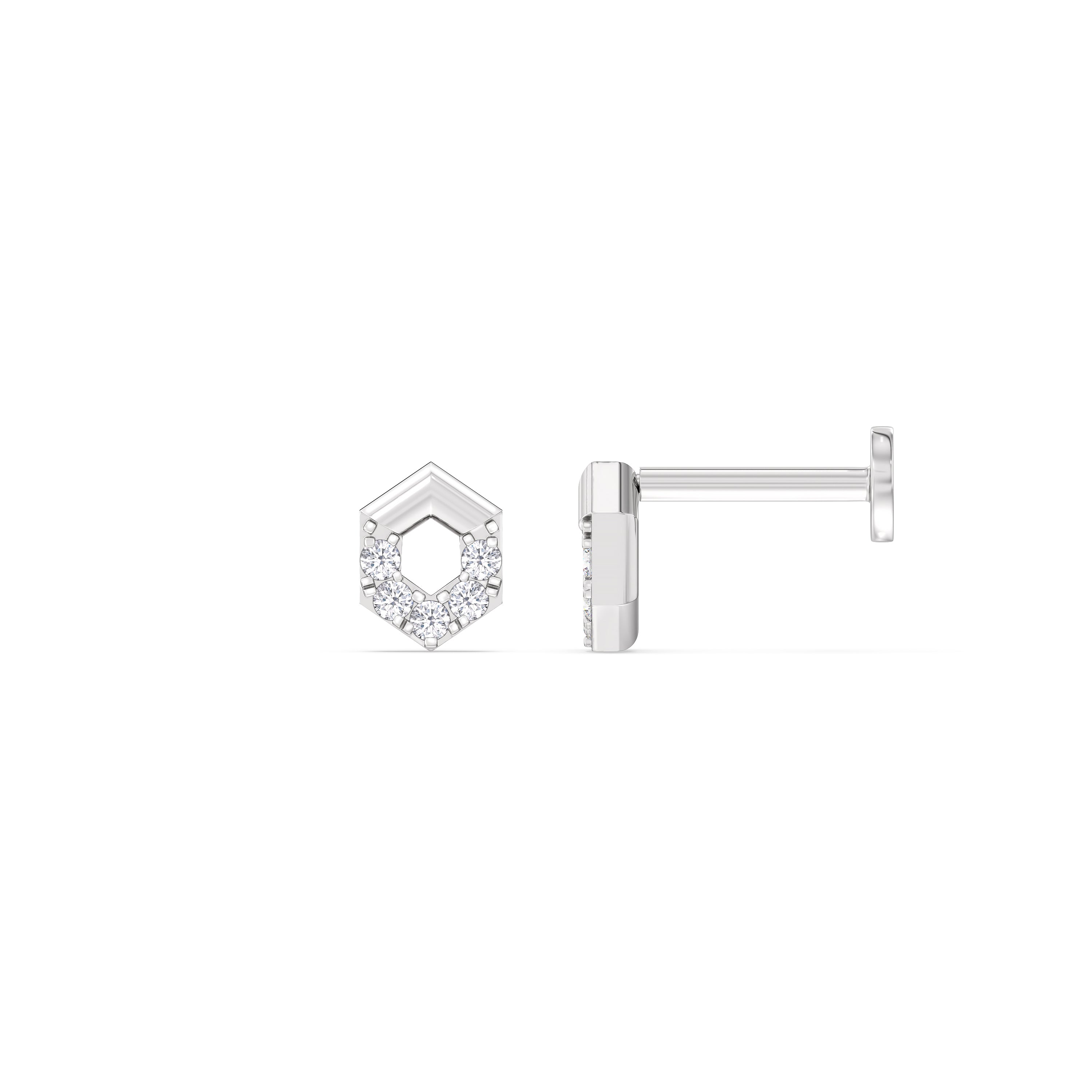 Geometric studs just got a new update. These cleverly designed hexagonal flatback studs have a flat and smooth backing that easily yet securely snaps into place. Without sharp or pointed posts that will poke or snag, you can comfortably wear these 24/7.