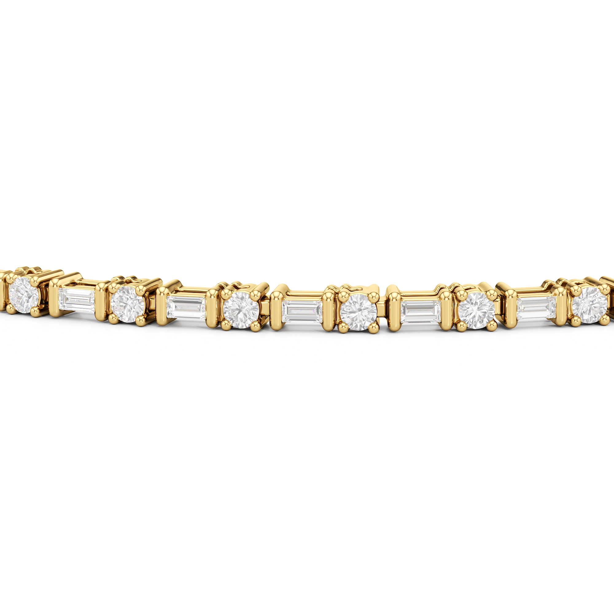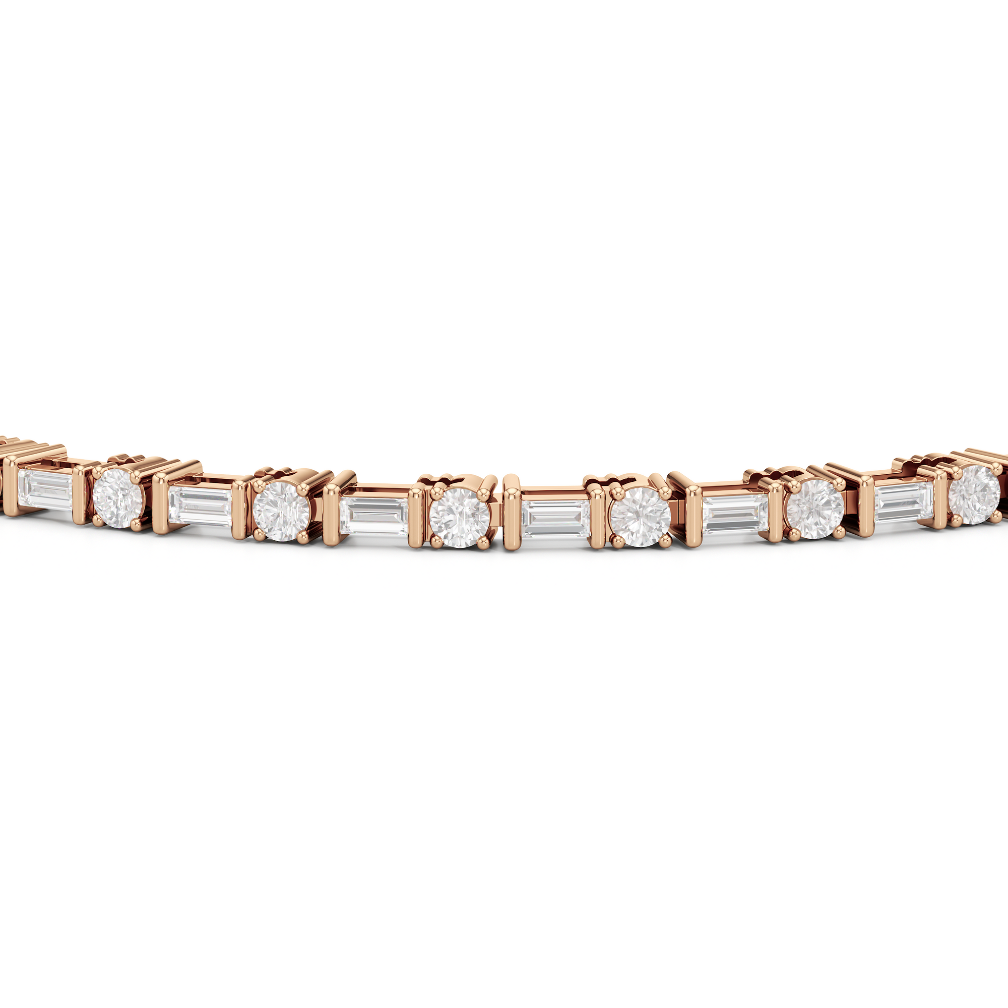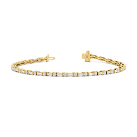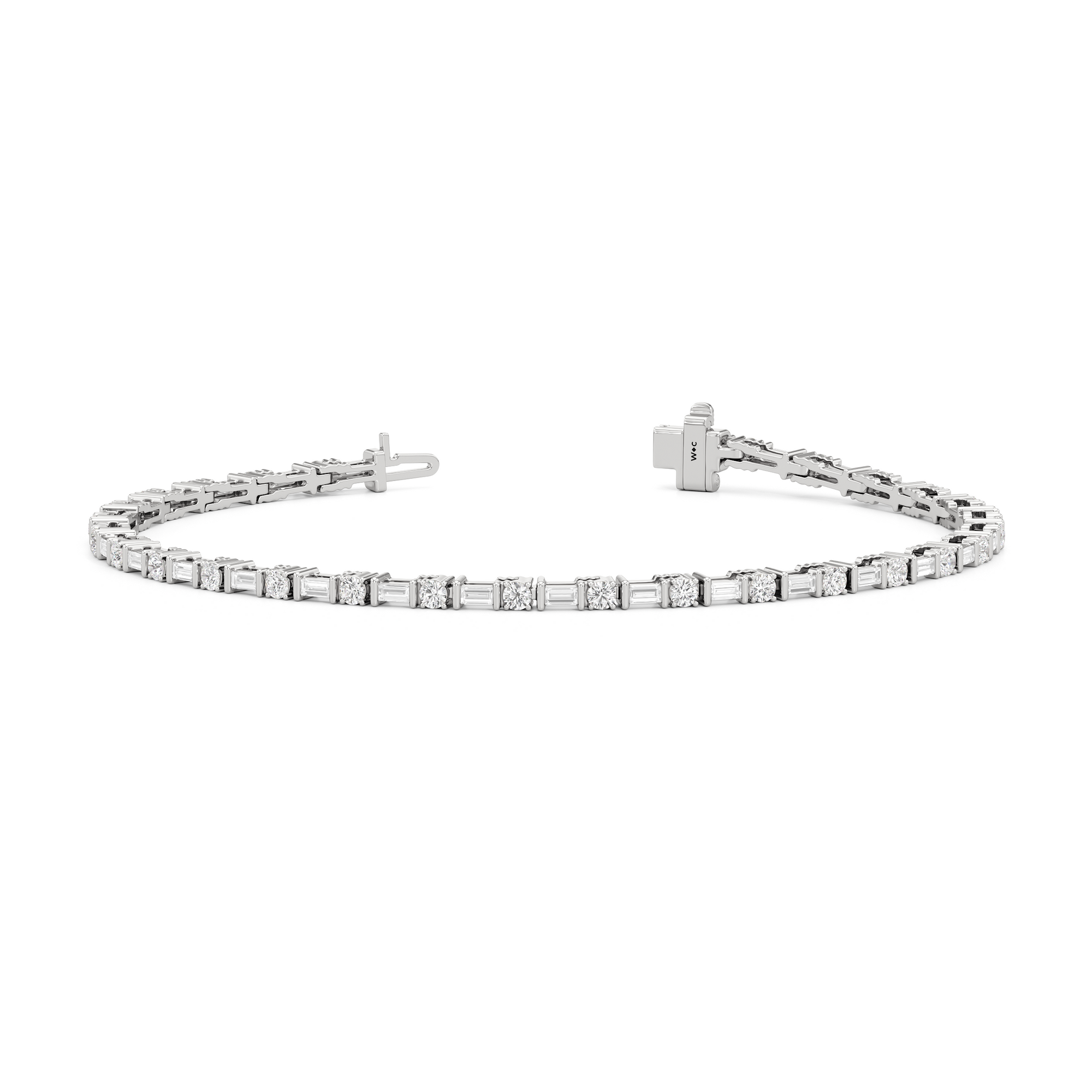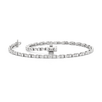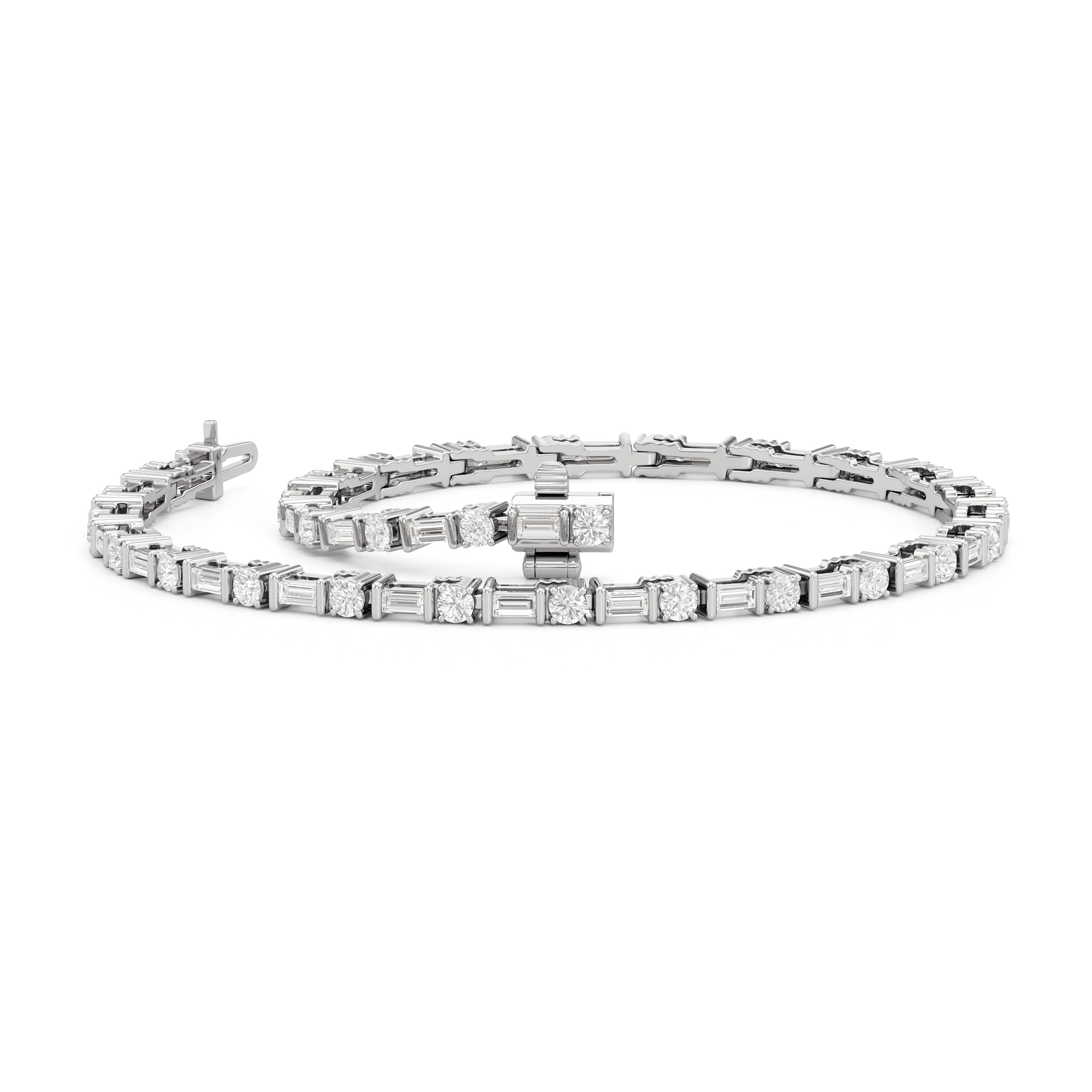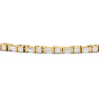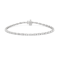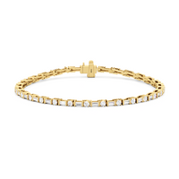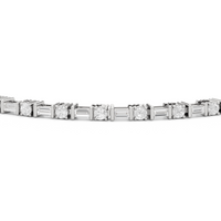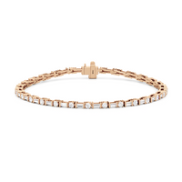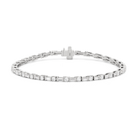 That piece that transitions seamlessly from work to play. This diamond bracelet of refined simplicity pairs timeless prong-set round diamonds with elongated, rectangular step-cut diamonds in sleek east-west setting.