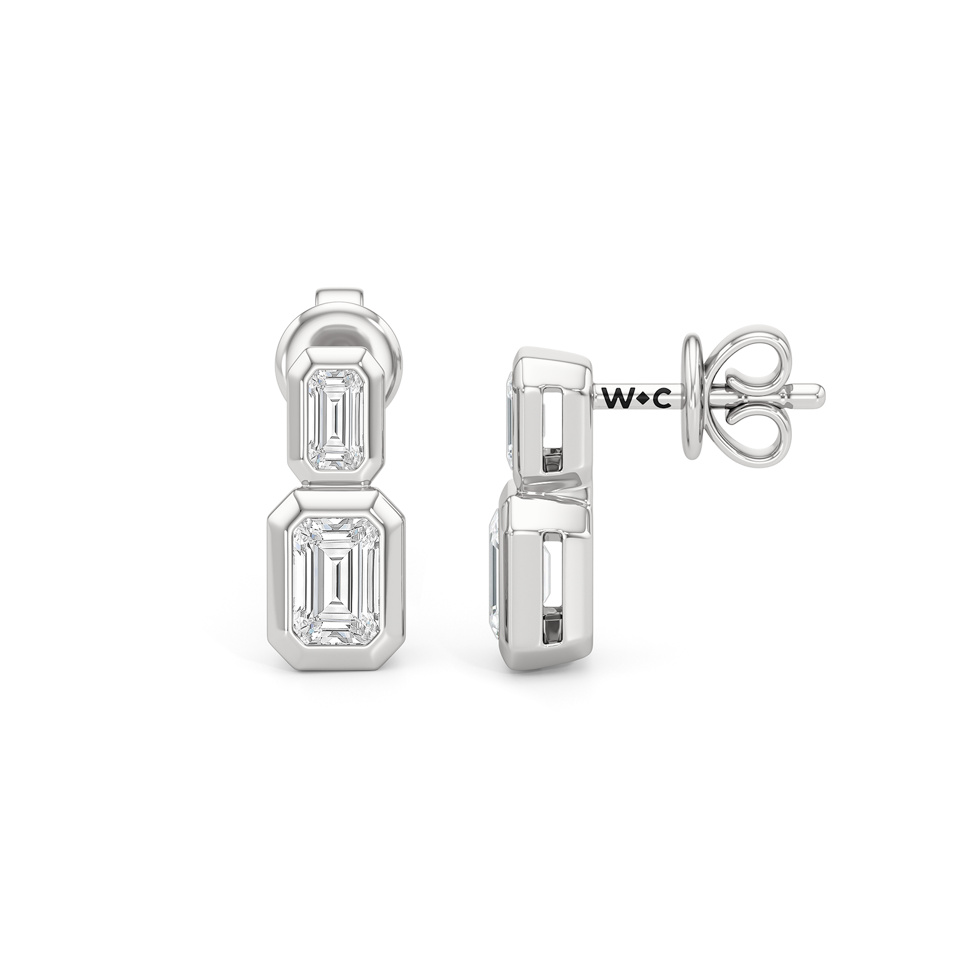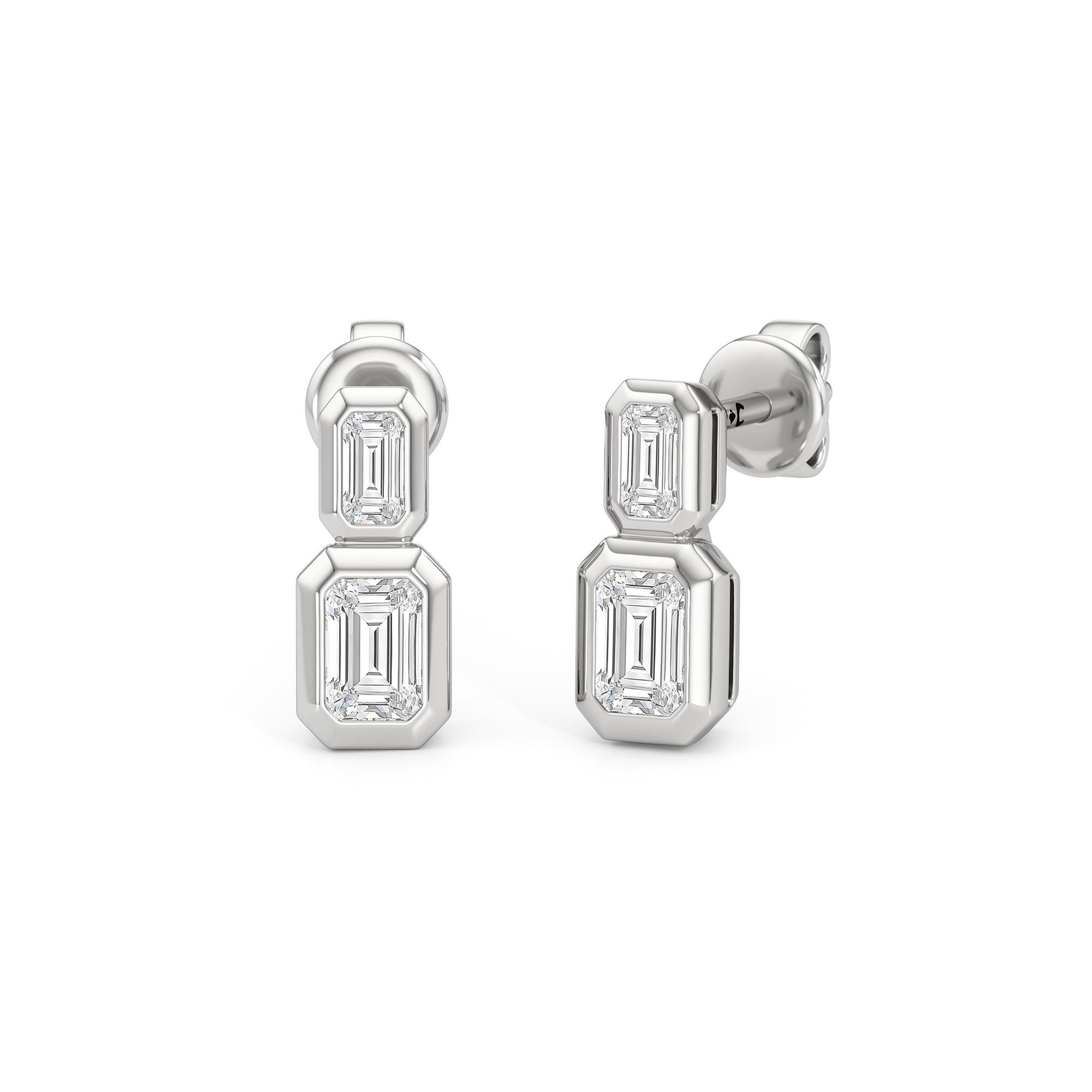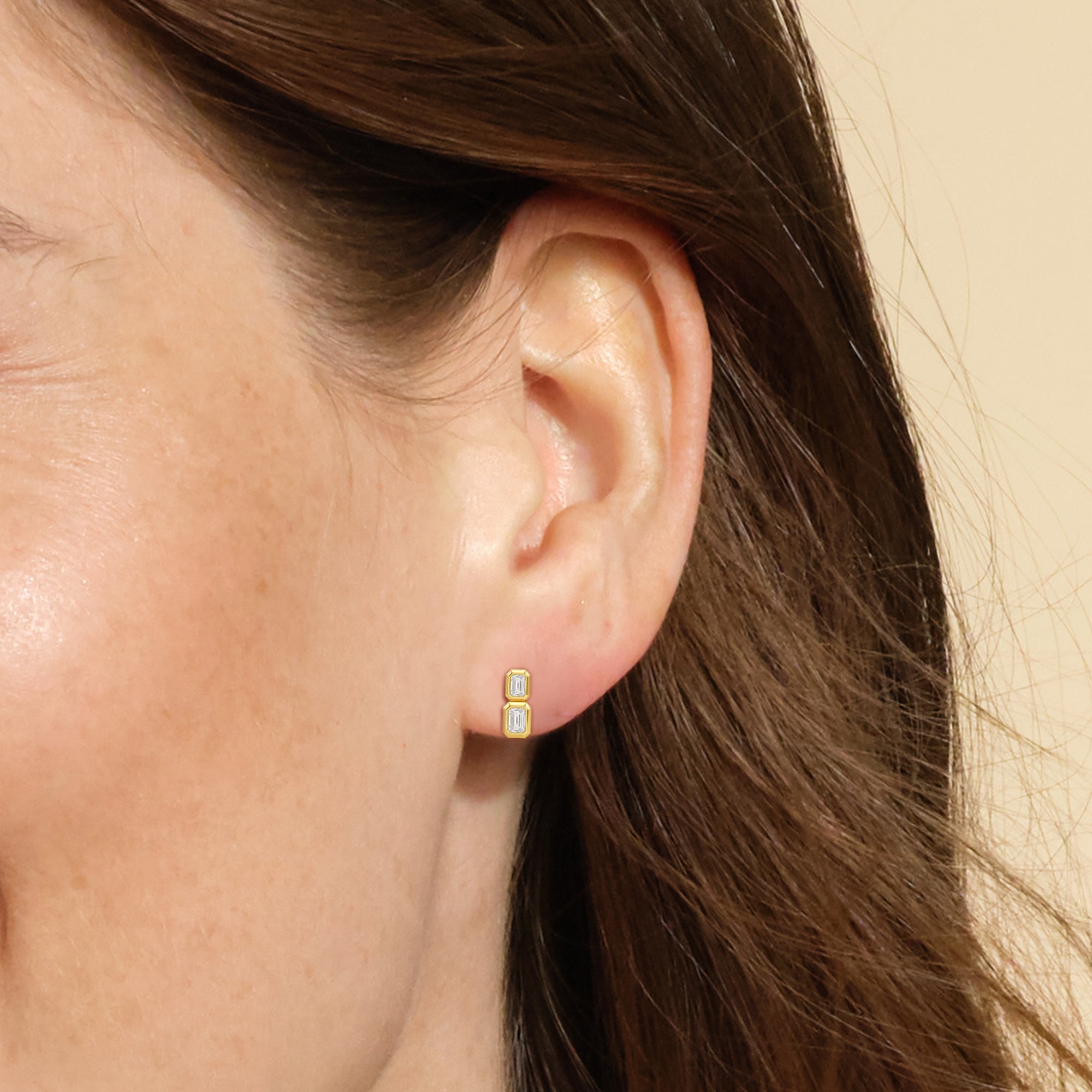 Our Glint studs bring life to even your simplest outfit. Each one stacks emerald-cut diamonds in secure bezels for a sleek yet bright shine. They feel like nothing, but look like everything.
