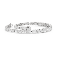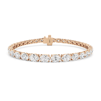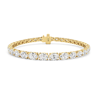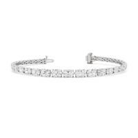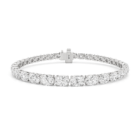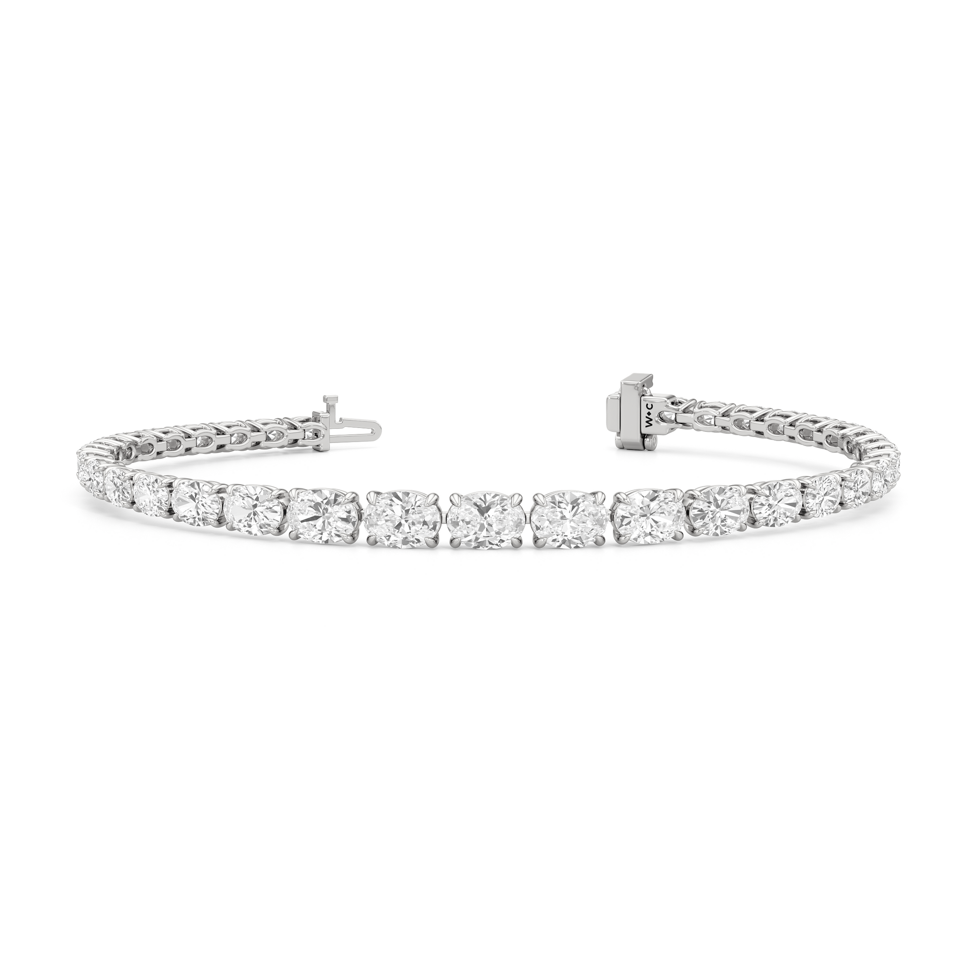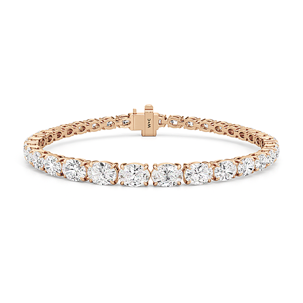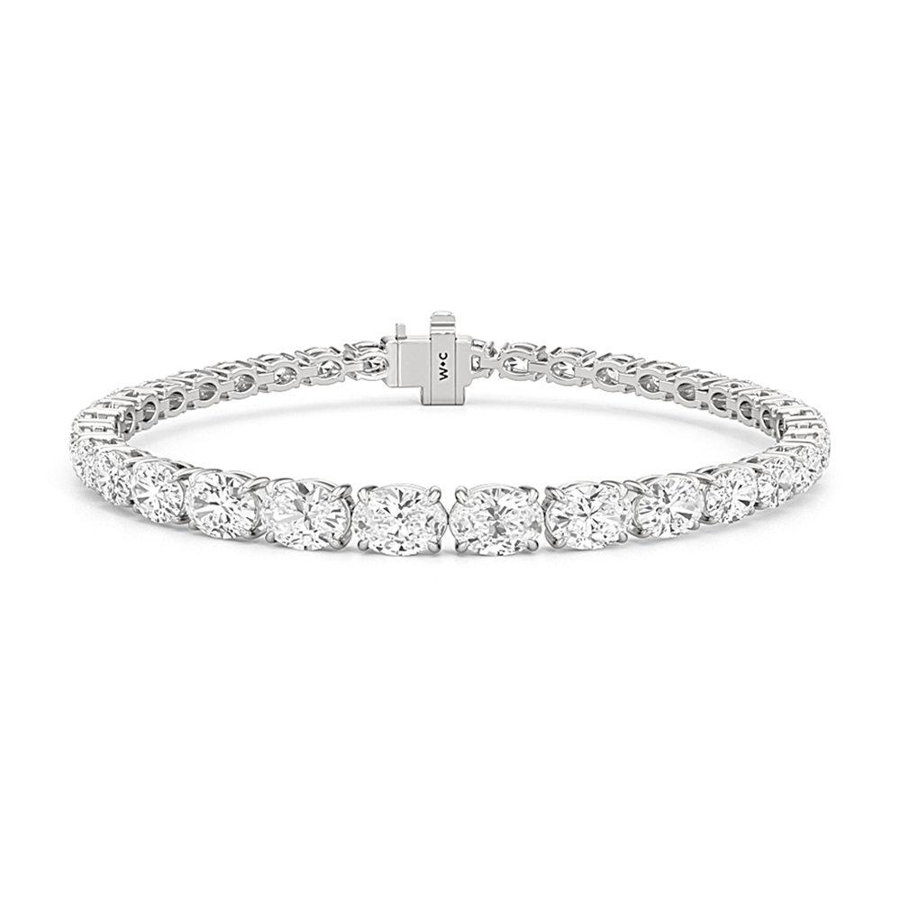 A 10.25-carat diamond tennis bracelet infused with a touch of contemporary sophistication. This refined piece displays 35 oval diamonds, each mounted meticulously on a claw-prong setting. The oval diamonds taper in size as they become closer to the clasp.