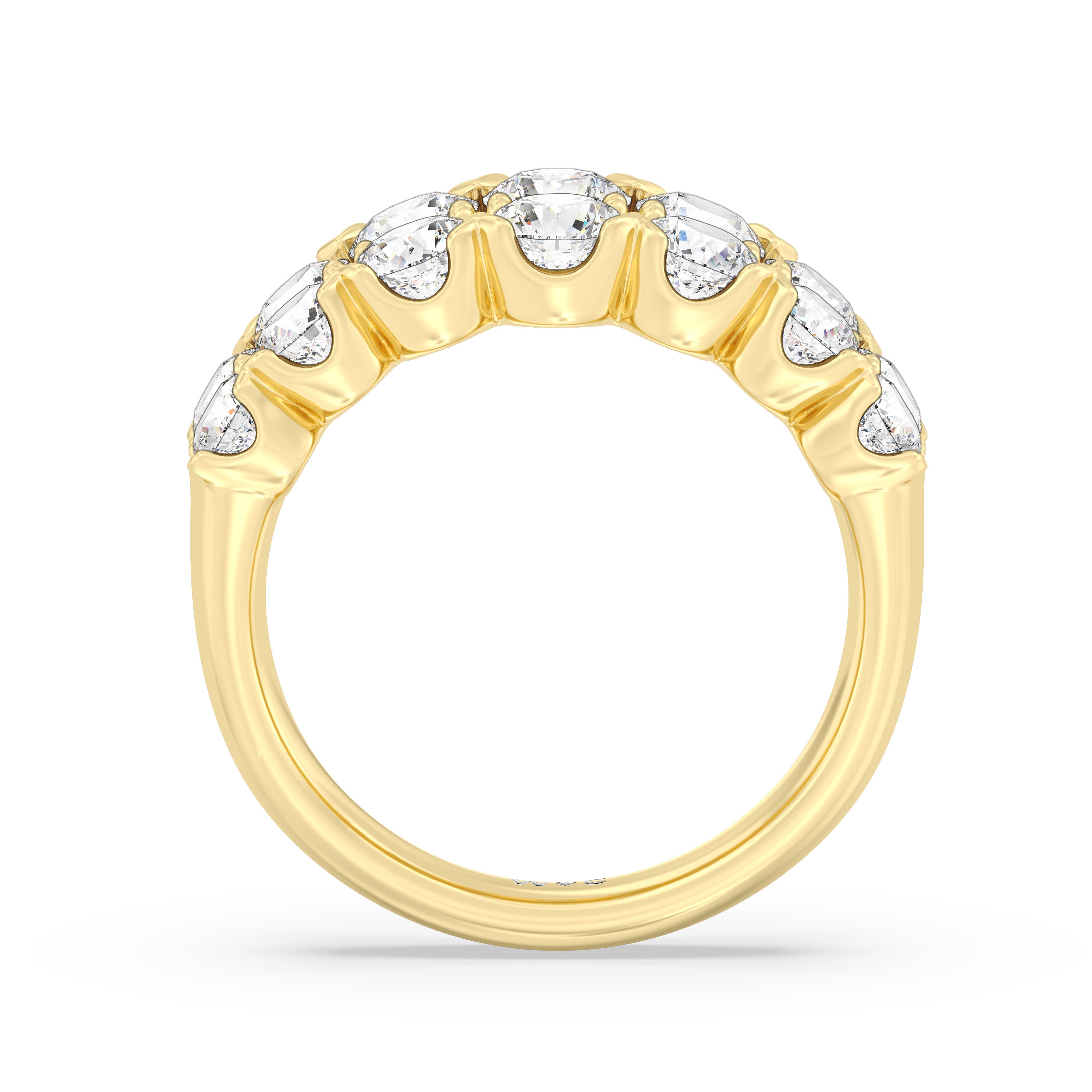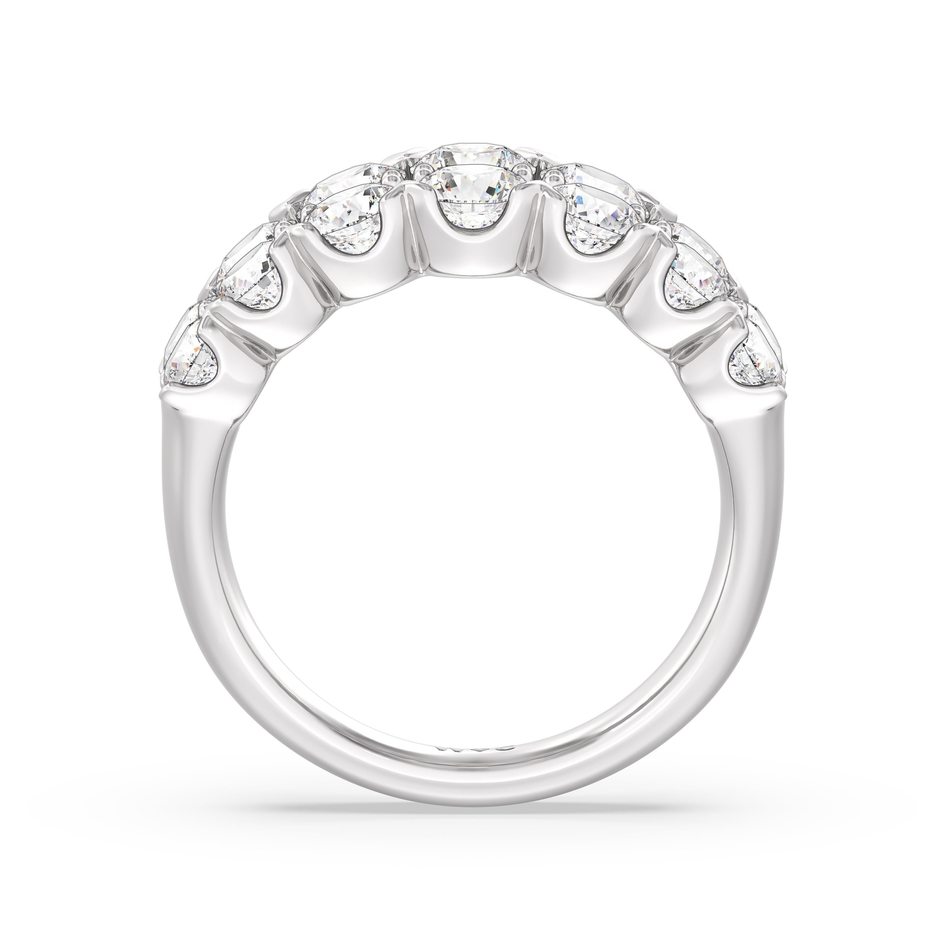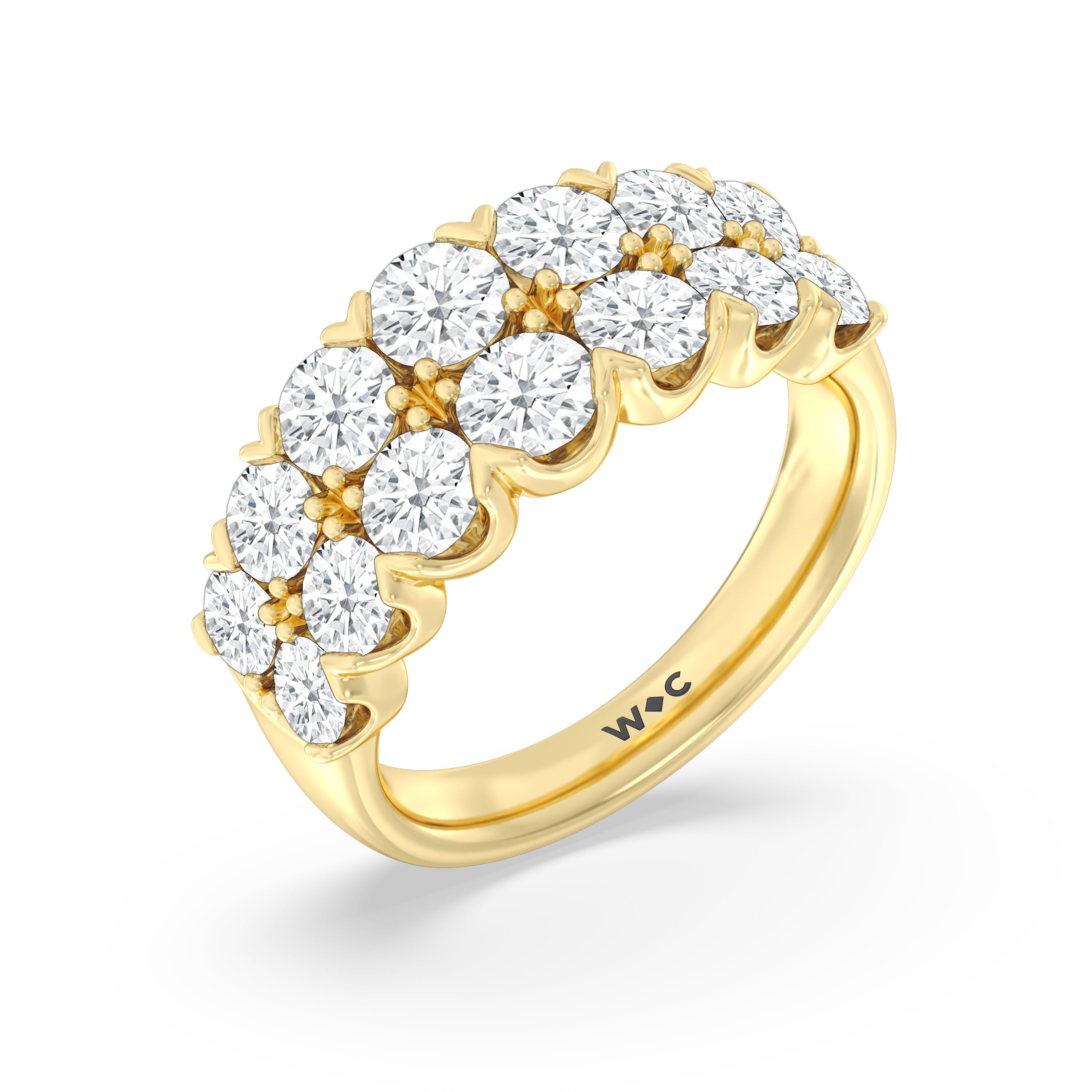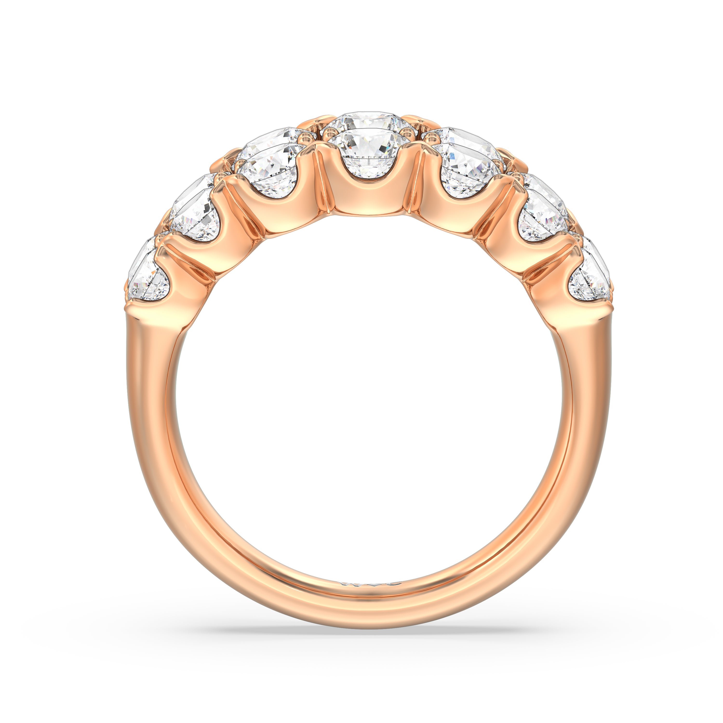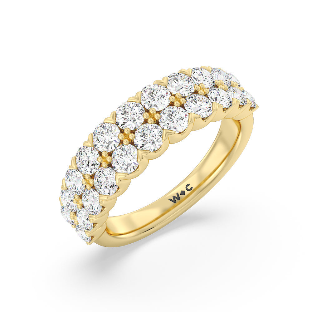 This anniversary ring with two rows of round diamonds looks incredibly stylish while simultaneously timeless. The polished band that gently tapers towards the back has its top half adorned with round diamonds that also taper gradually in size. This ring is the perfect choice if you're looking for a half-eternity diamond ring that possesses a bit more sense of style and sophistication.
