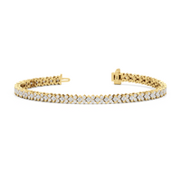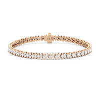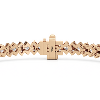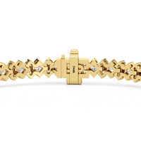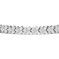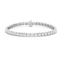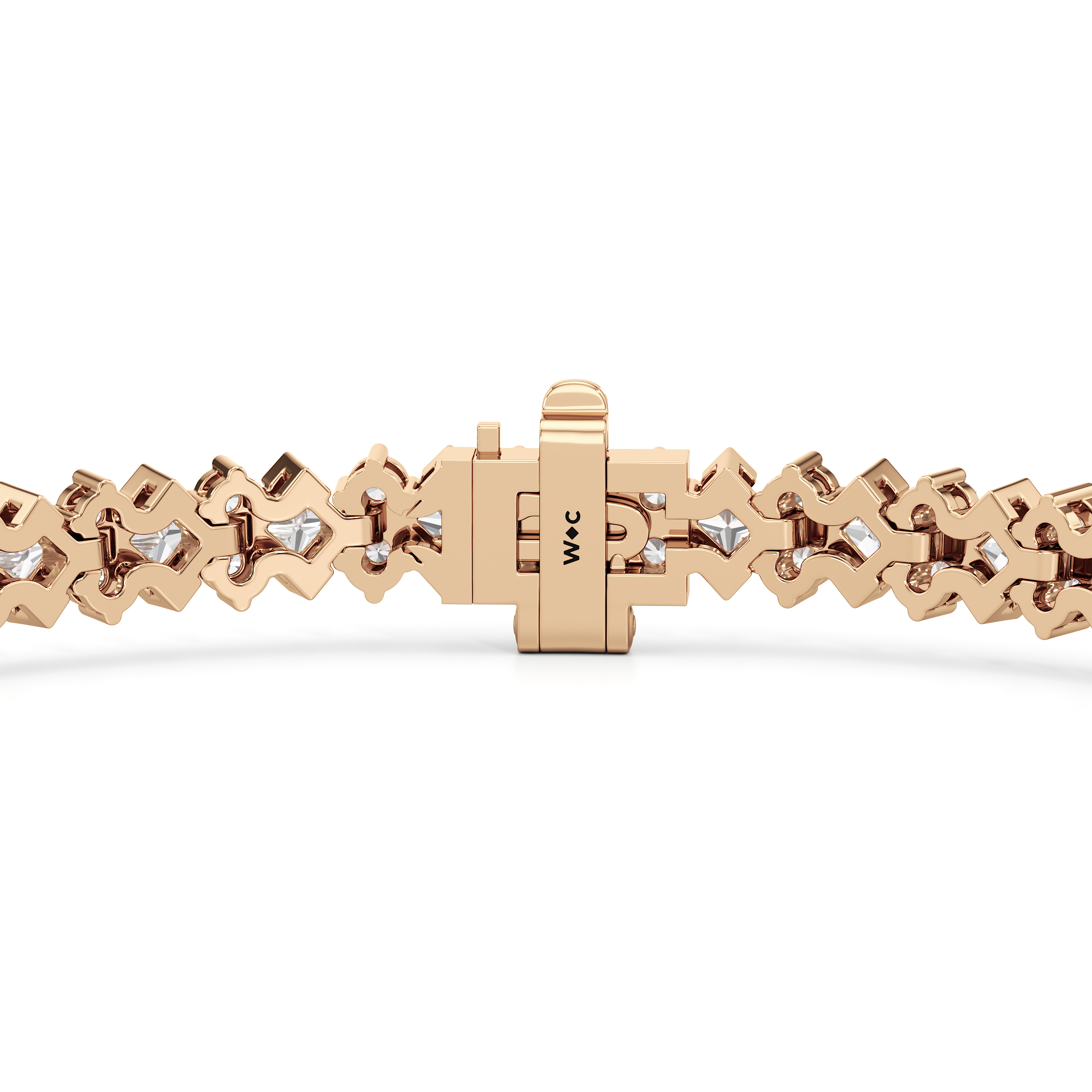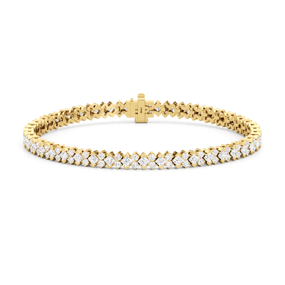 Geometry and symmetry brought another layer of charm to this stunning line bracelet. It exhibits a sophisticated play of light with its row of alternating kite-set princess diamonds on half bezels and duos of round diamonds.