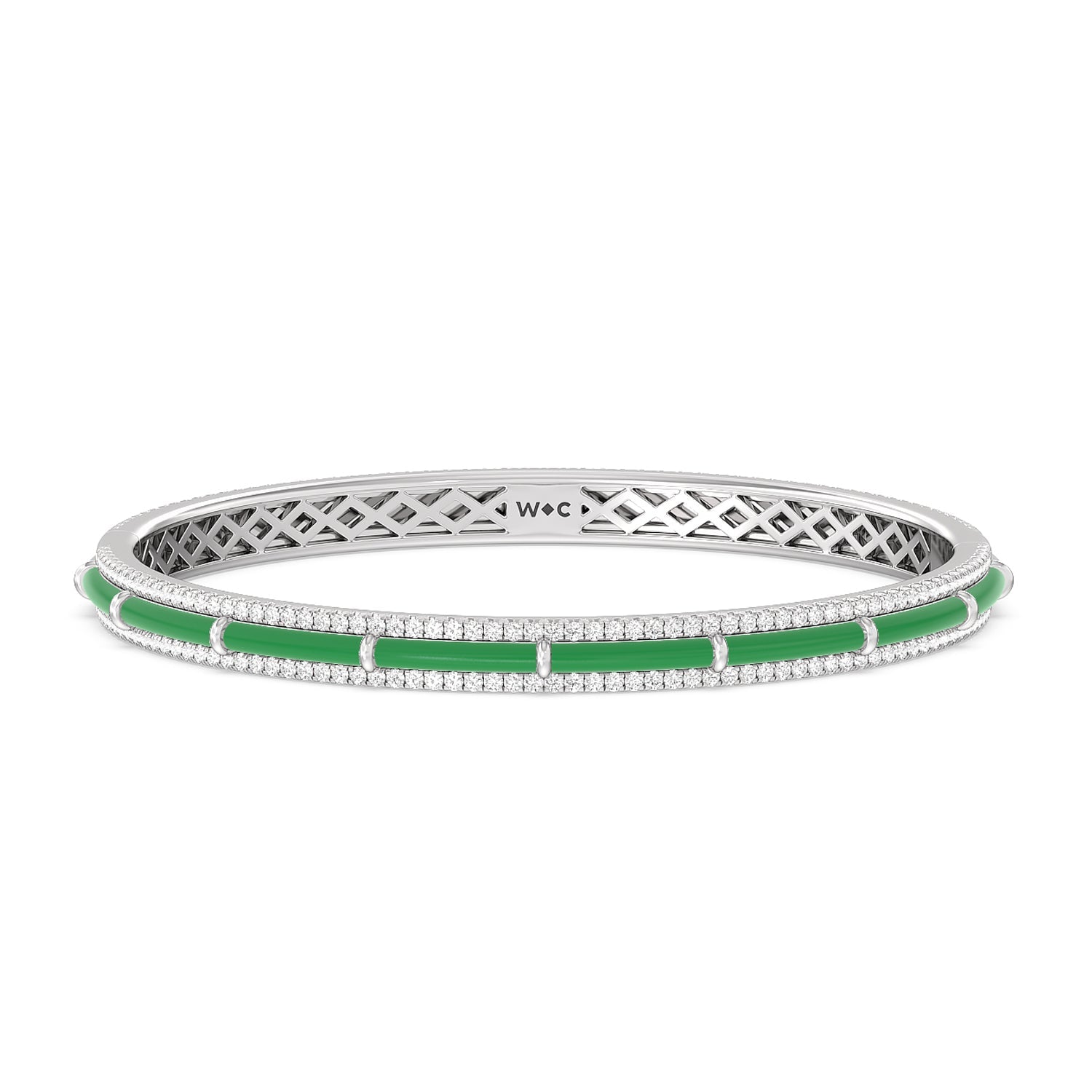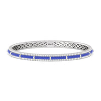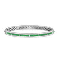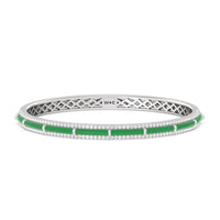 A vibrant ceramic bangle that's a classic addition to any outfit. This rigid wrist accessory has its half-circumference edges traced by petite round diamonds. In between the sparkling edges is a row of vivid color, customizable in your preferred hue.