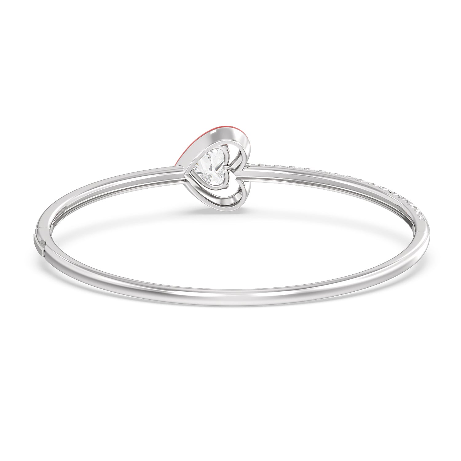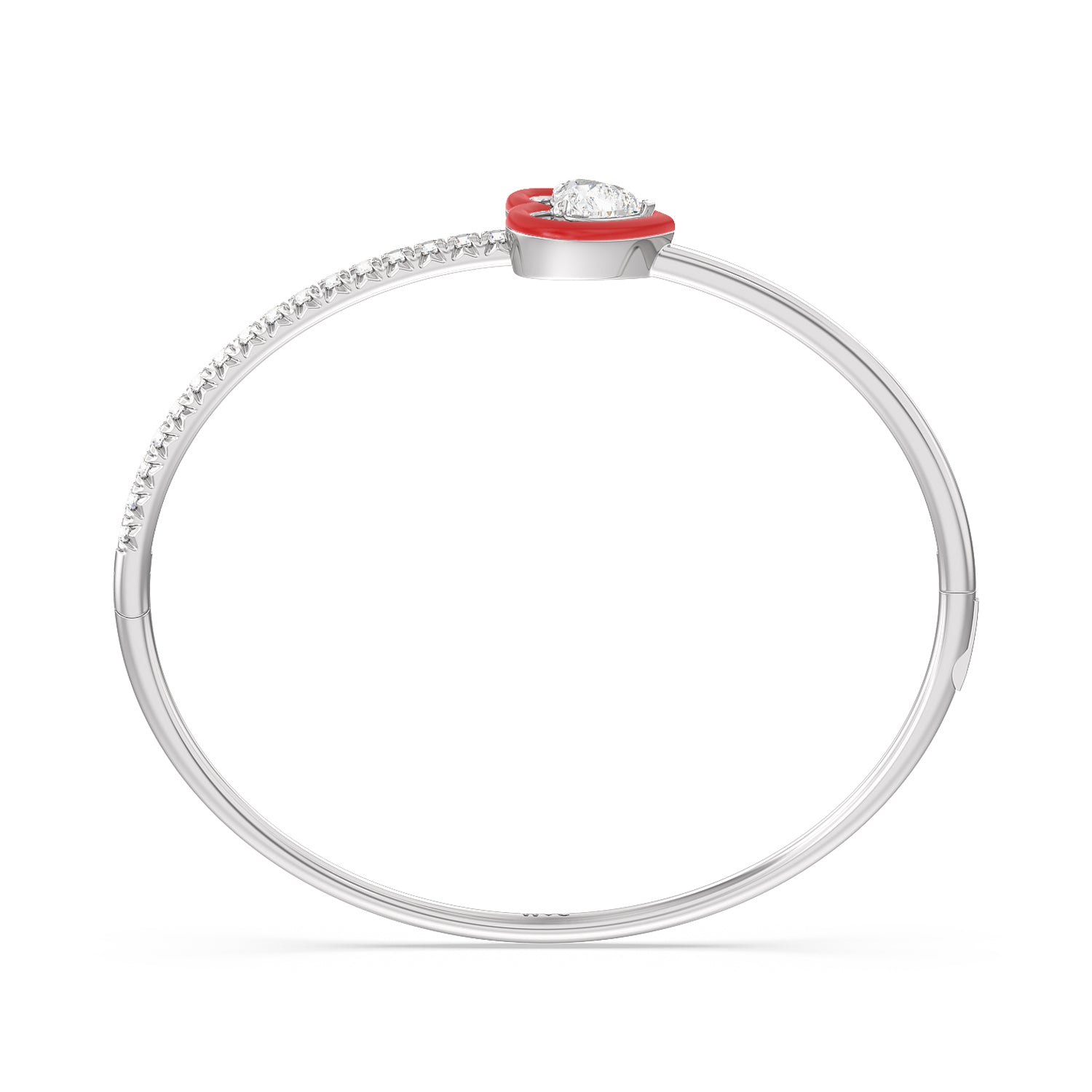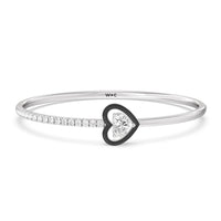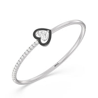 Your daily jewelry rotation called, and this piece is a must. Embrace this effortless and easy-to-wear diamond ceramic bangle. This piece features pavé-set round diamonds tracing a quarter of the bangle's circumference. Adding a pop of color and a dose of fun to the otherwise minimalistic style of the bangle is a heart diamond mounted on a heart bezel.