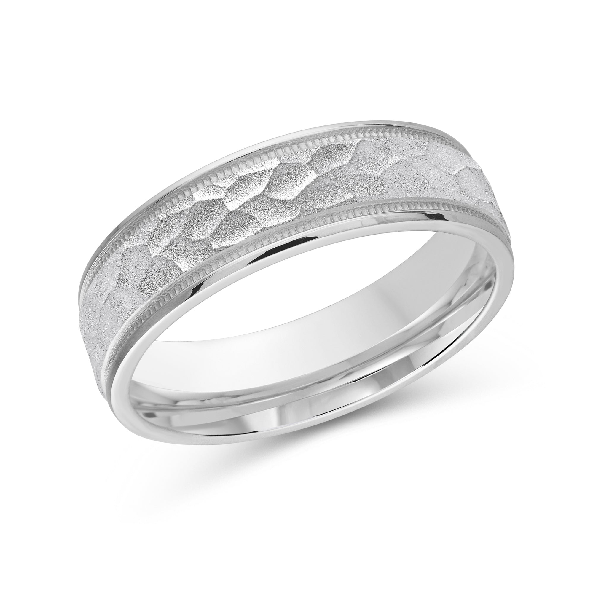 Bold yet still timeless, this ring features a distinctly textured design that presents a rustic and character-rich look. It also has a slightly domed inner wall (comfort fit) that ensures a more flexible and comfortable wearing experience.