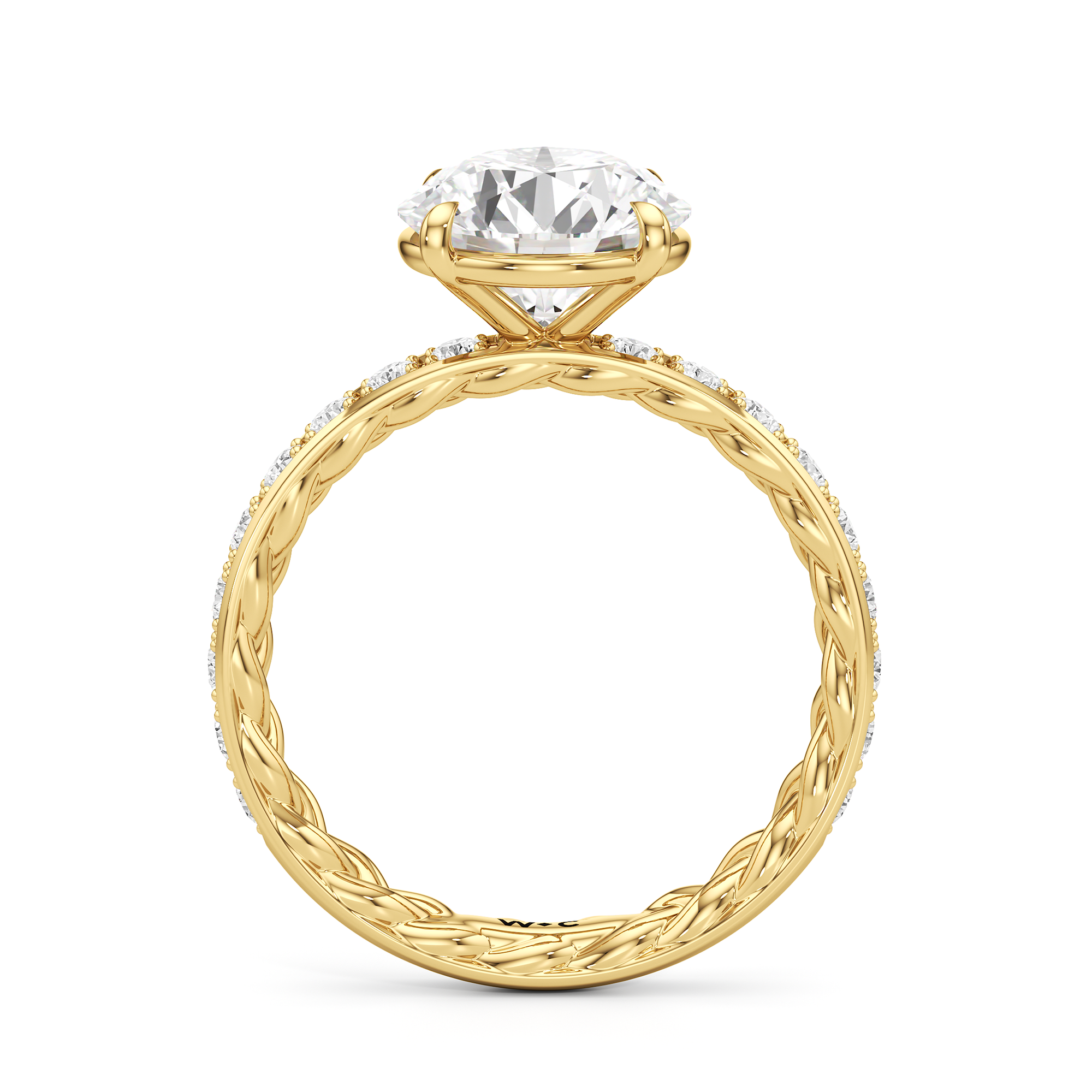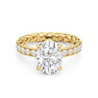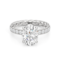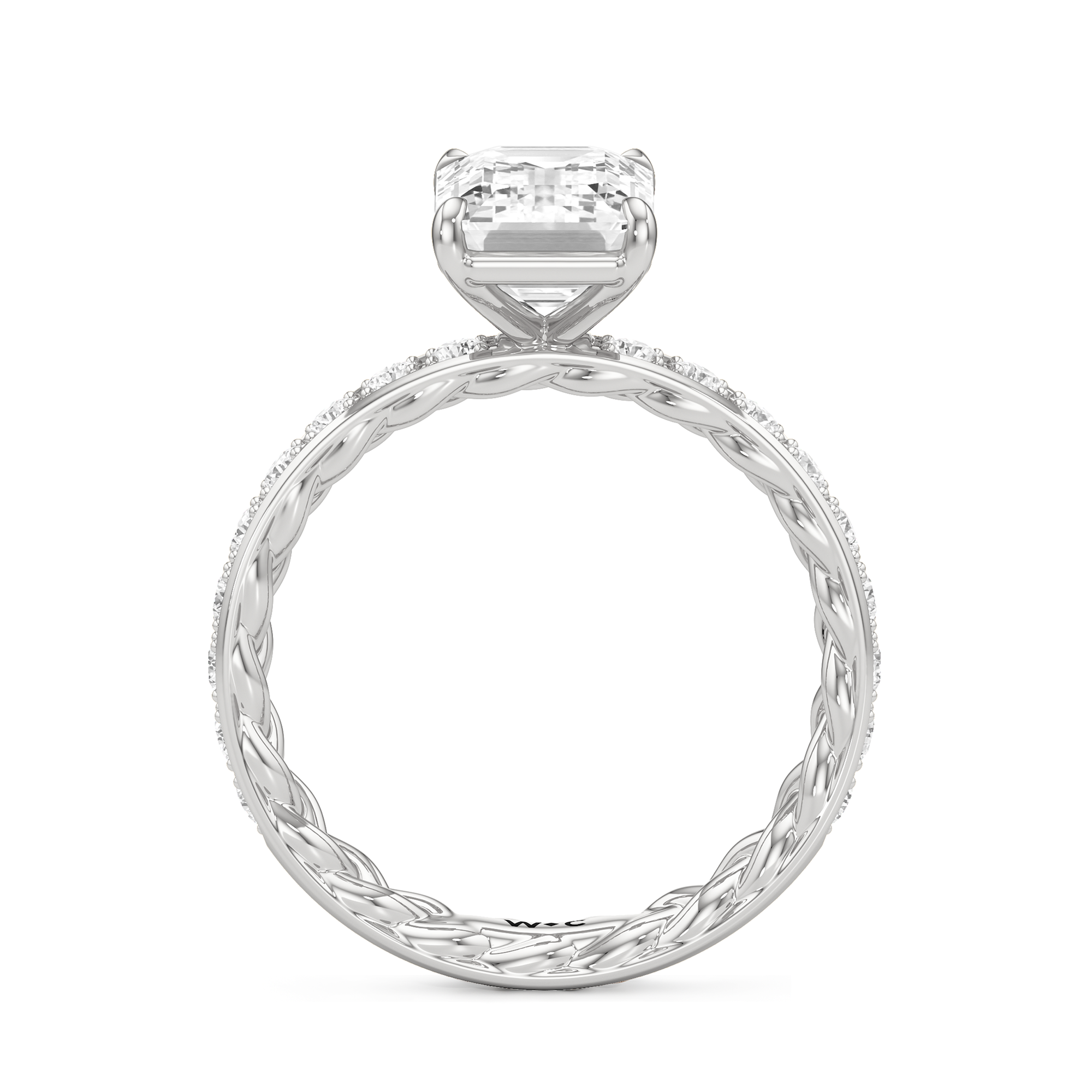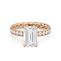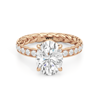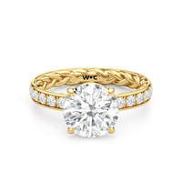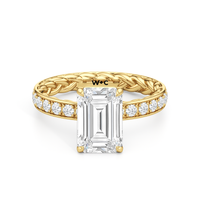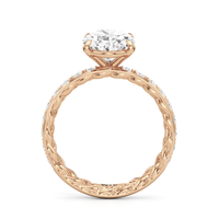 There is more beneath Isabel's surface. Inside the band, a braided texture adds an interesting detail. The polished exterior is then softly layered with more diamonds in a micropave setting. The center stone stands tall, making the ring feel just as special as it looks.