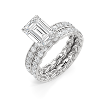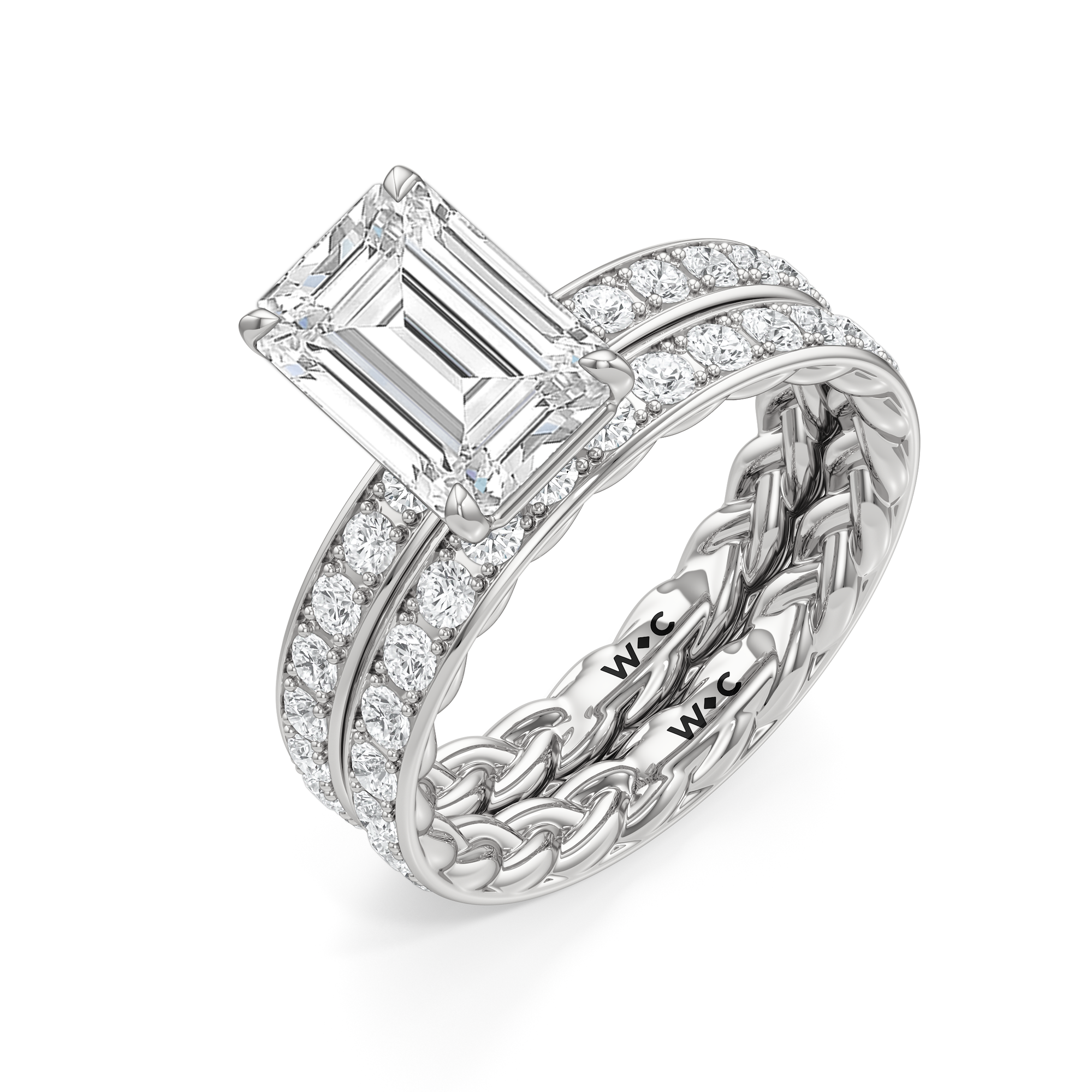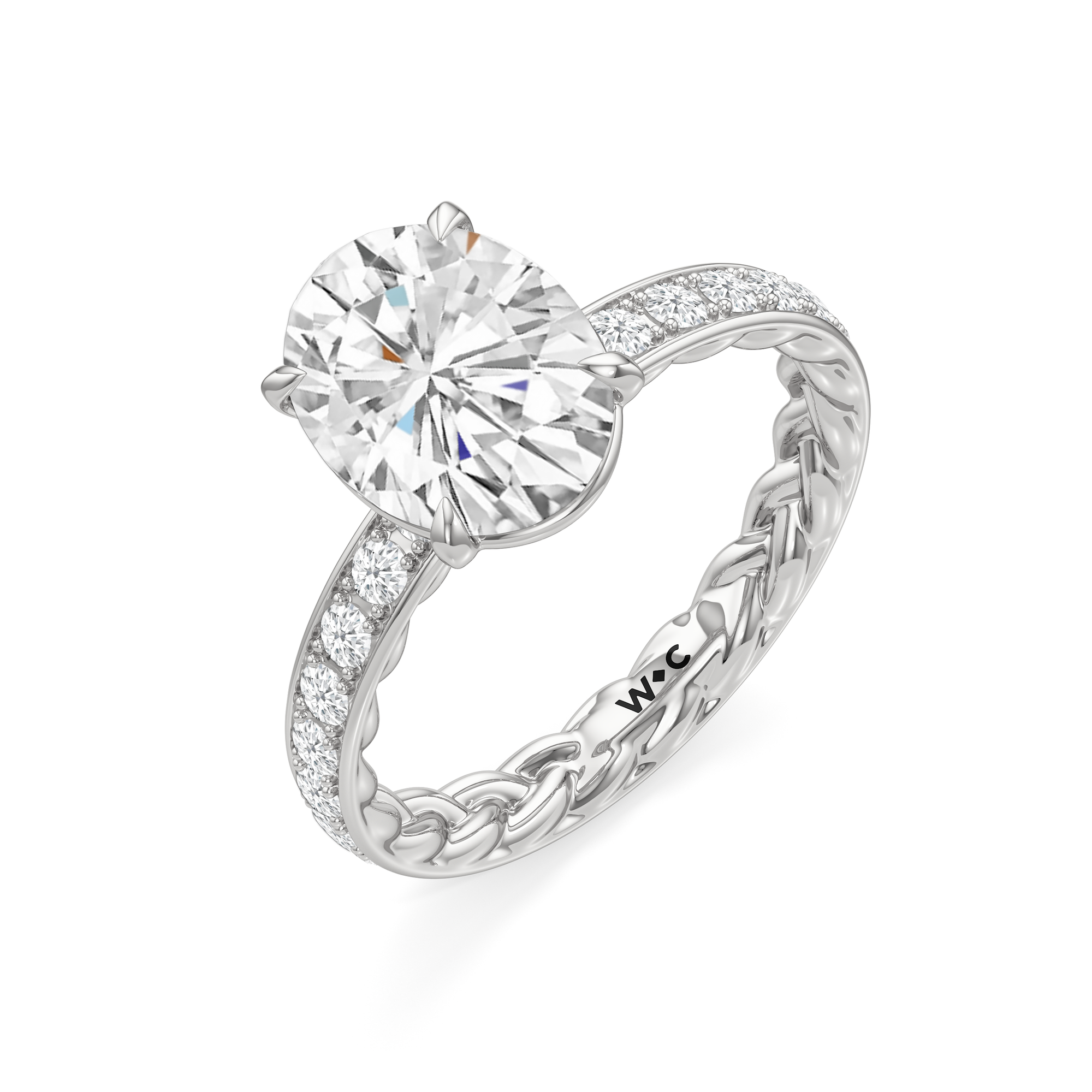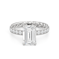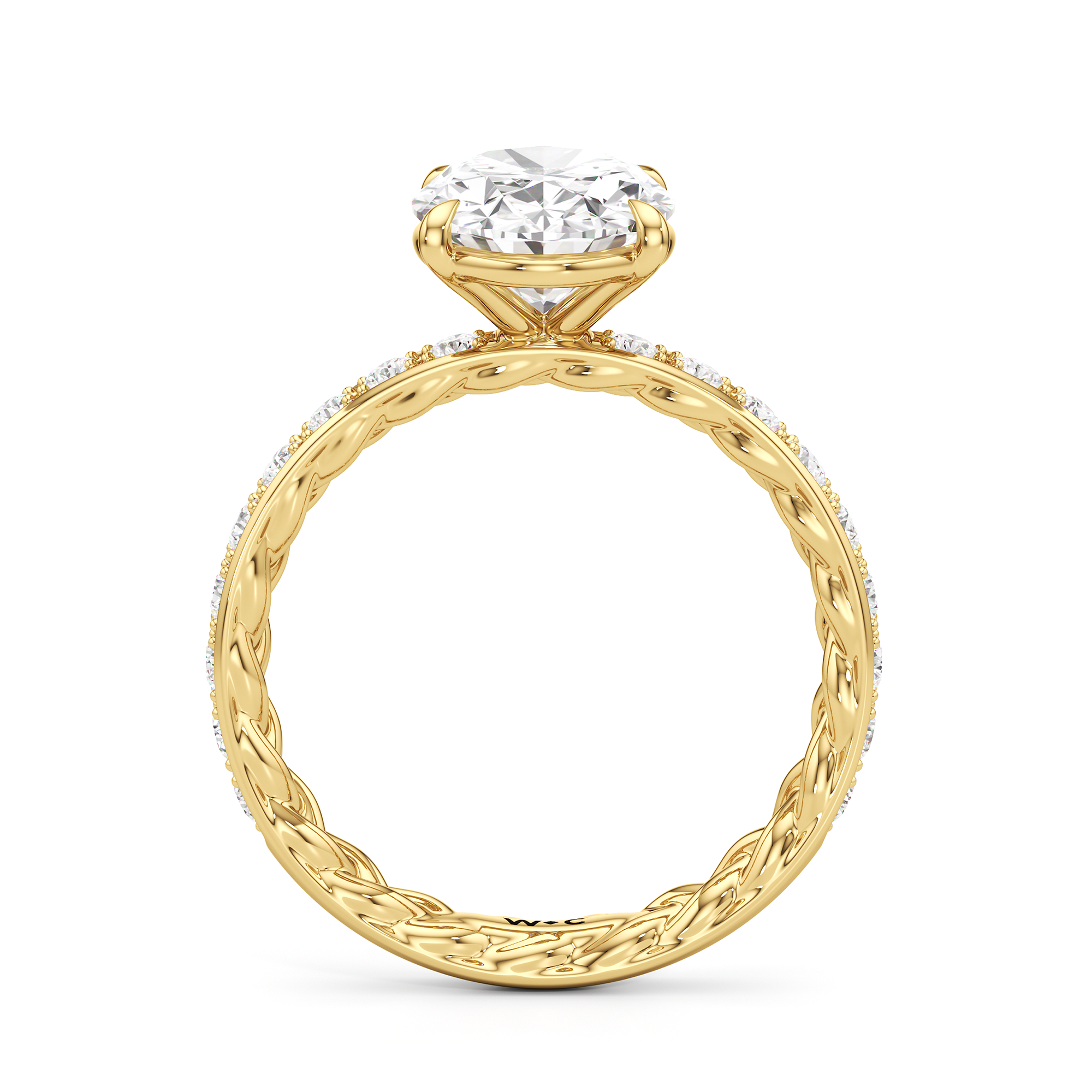 There is more beneath Isabel's surface. Inside the band, a braided texture adds an interesting detail. The polished exterior is then softly layered with more diamonds in a micropave setting. The center stone stands tall, making the ring feel just as special as it looks.