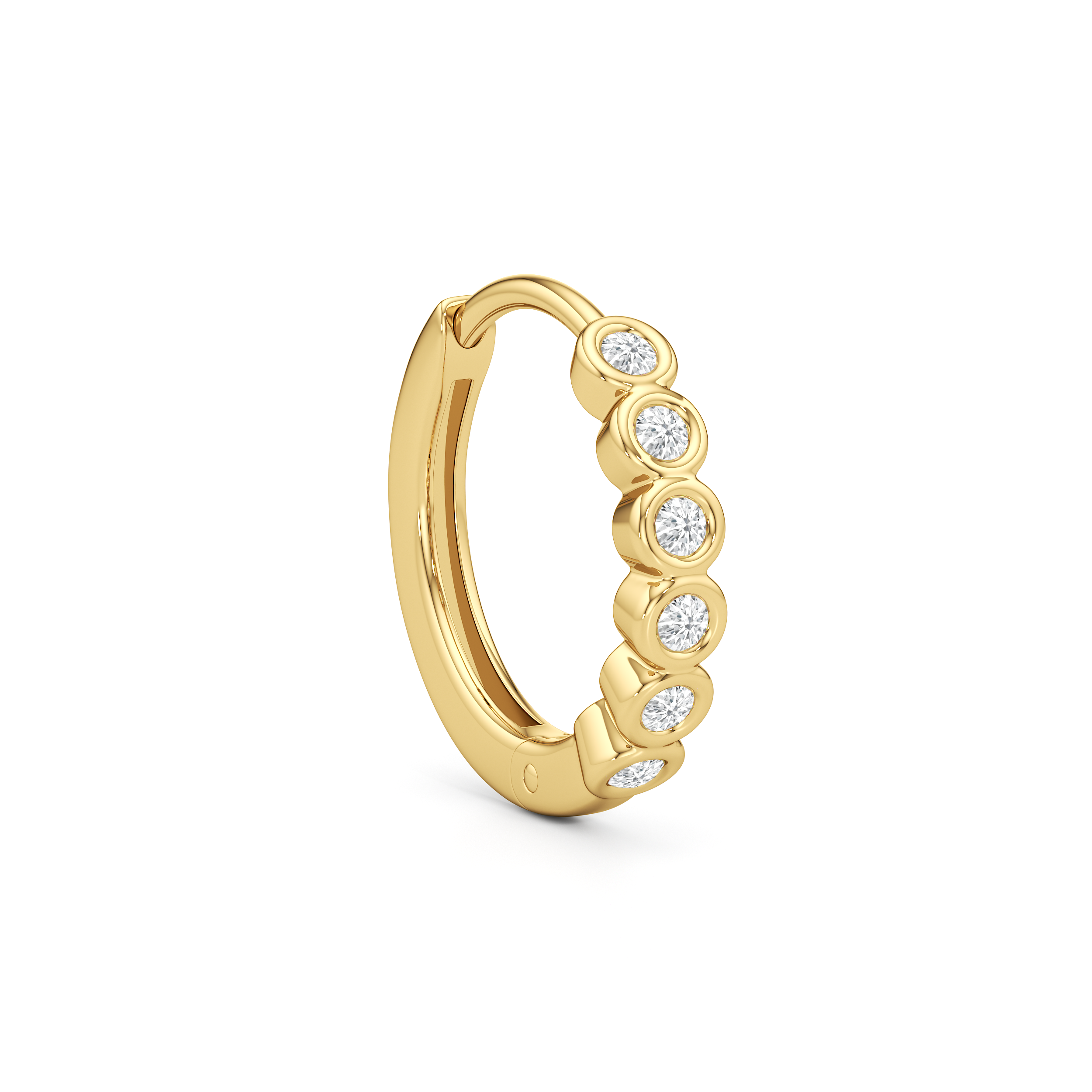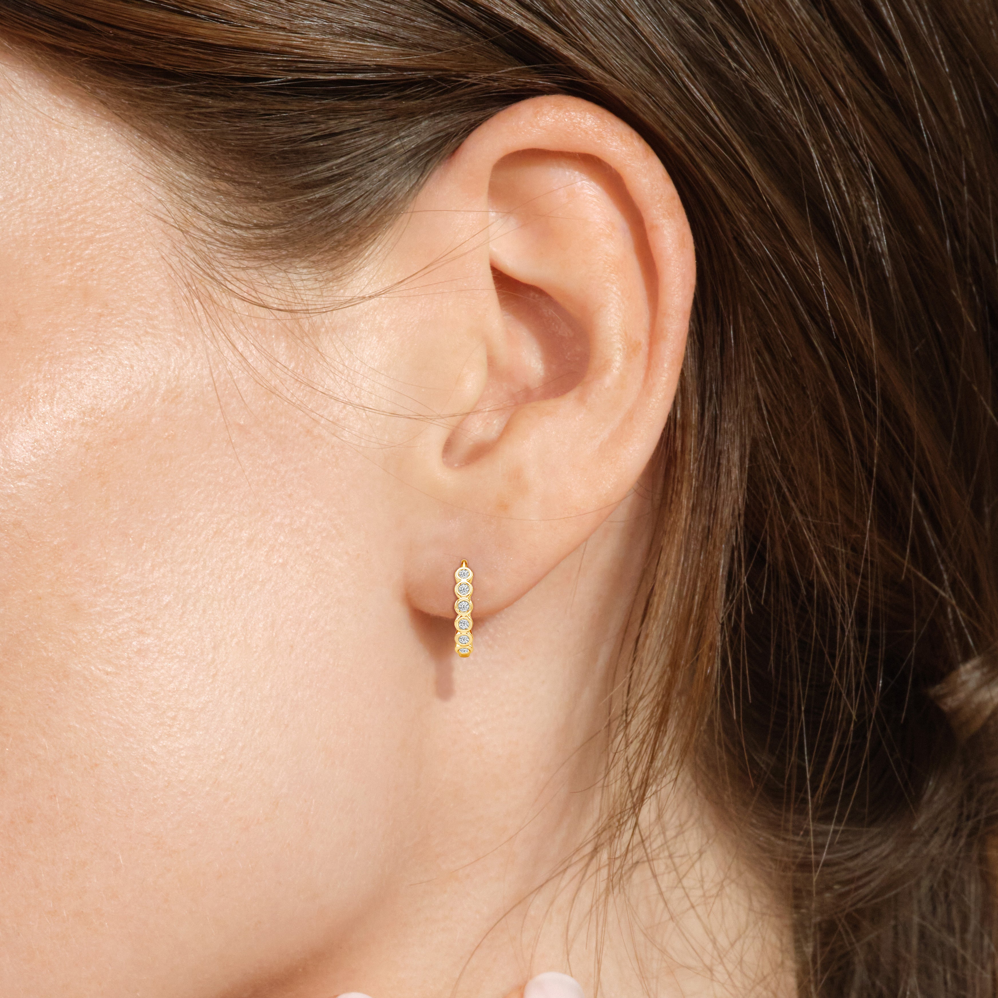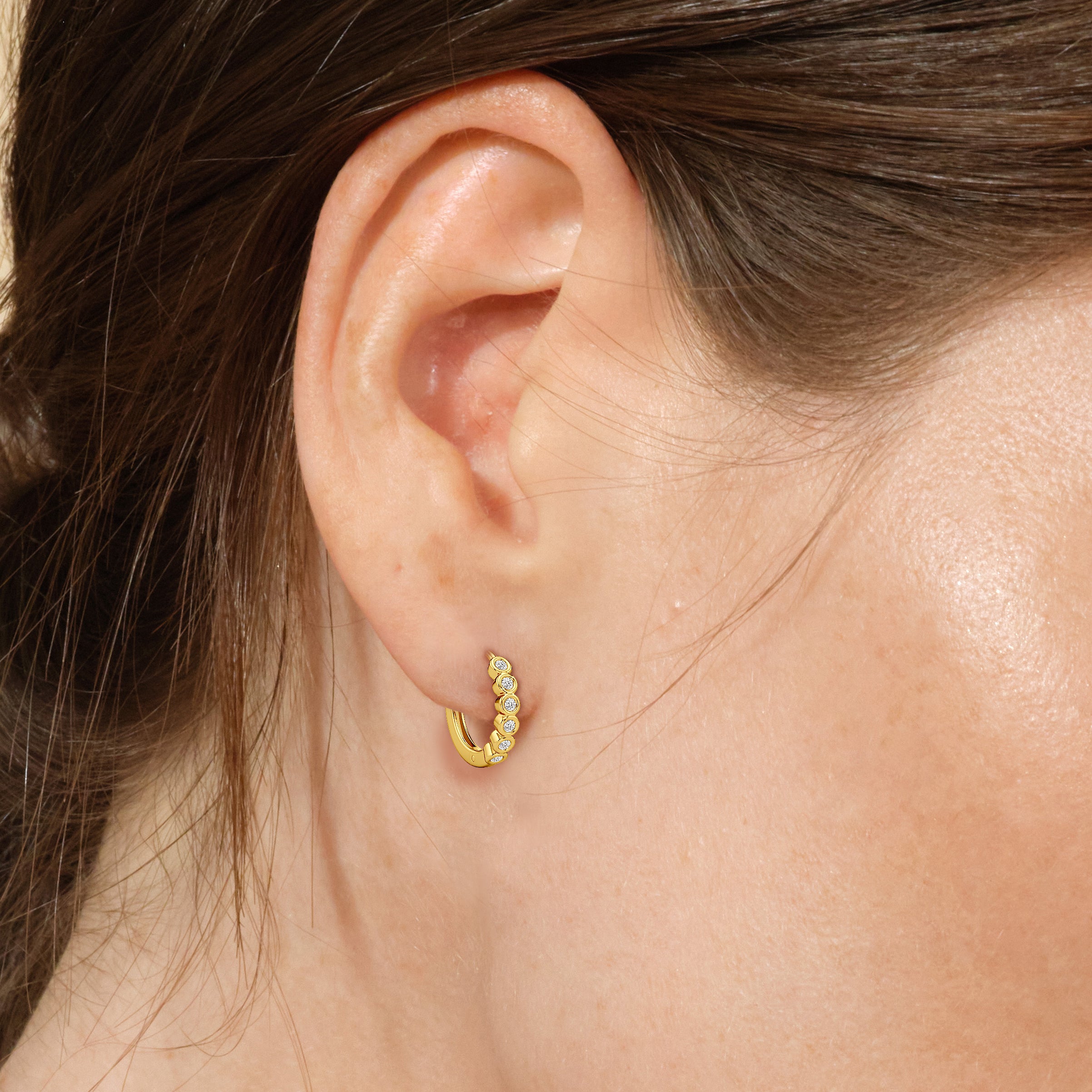 Graceful in form, these Lina huggie hoops feel as natural as your favorite tee. Diamonds held in secure bezels line the front curve of each petite hoop. They're designed to move with you, not weigh you down.
