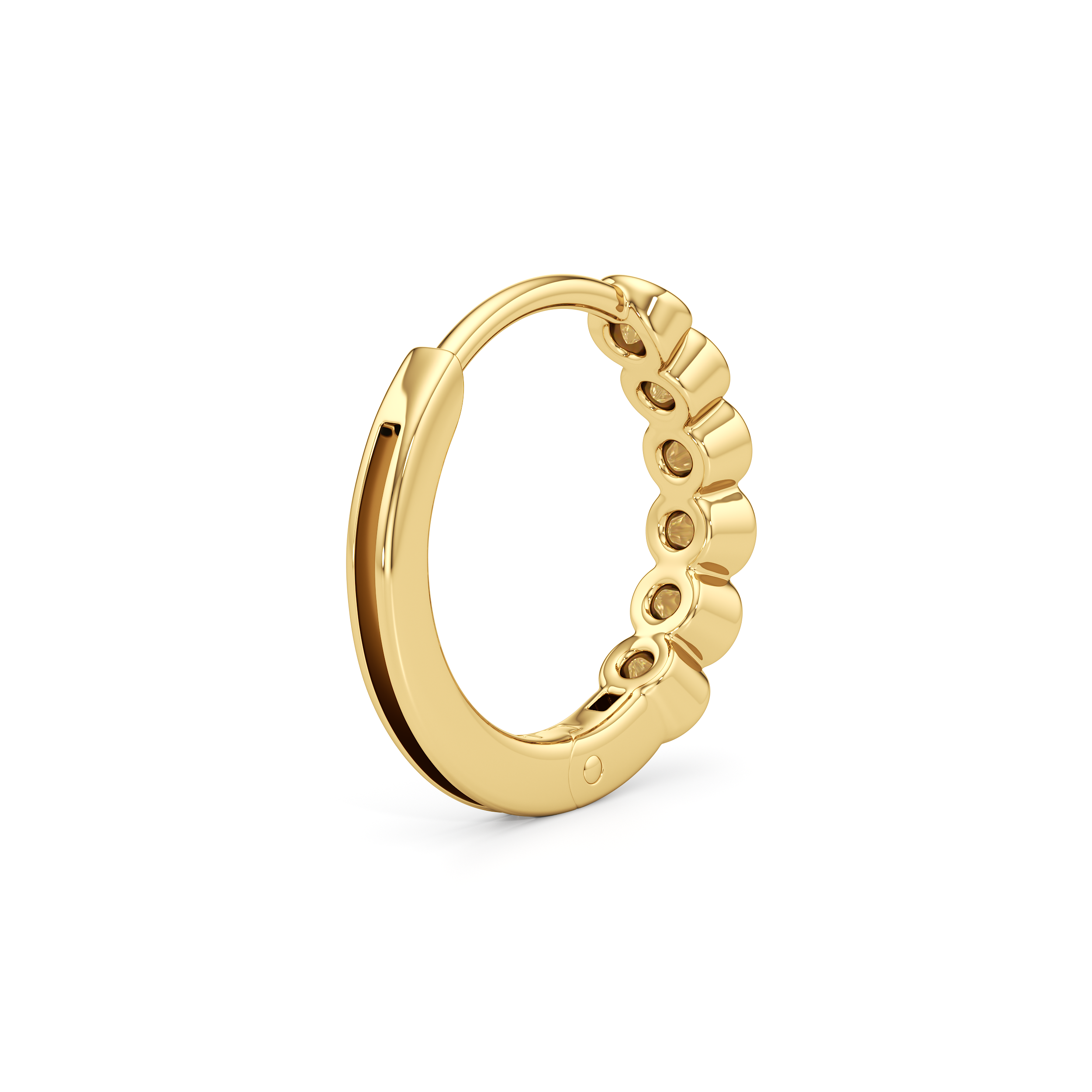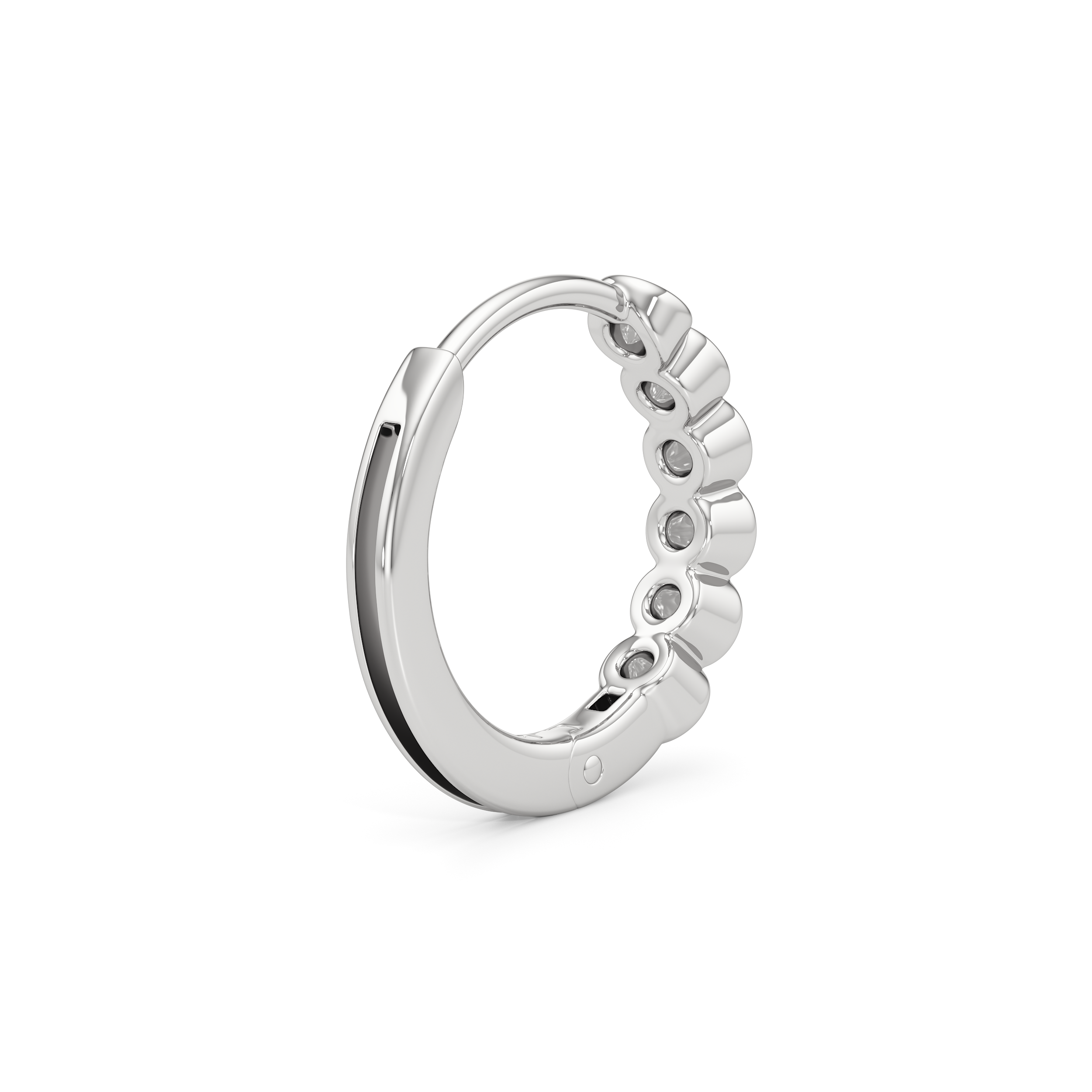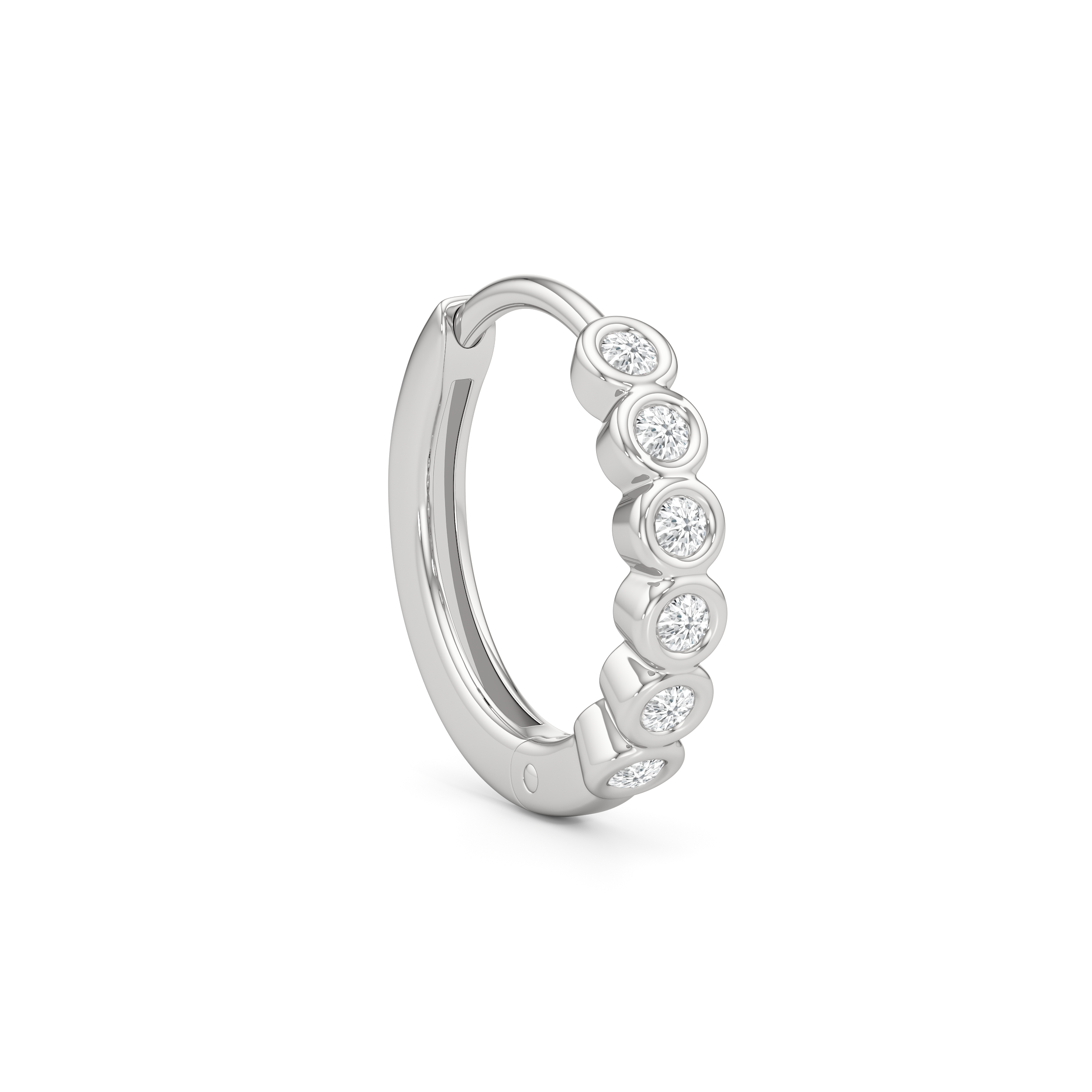 Graceful in form, these Lina huggie hoops feel as natural as your favorite tee. Diamonds held in secure bezels line the front curve of each petite hoop. They're designed to move with you, not weigh you down.