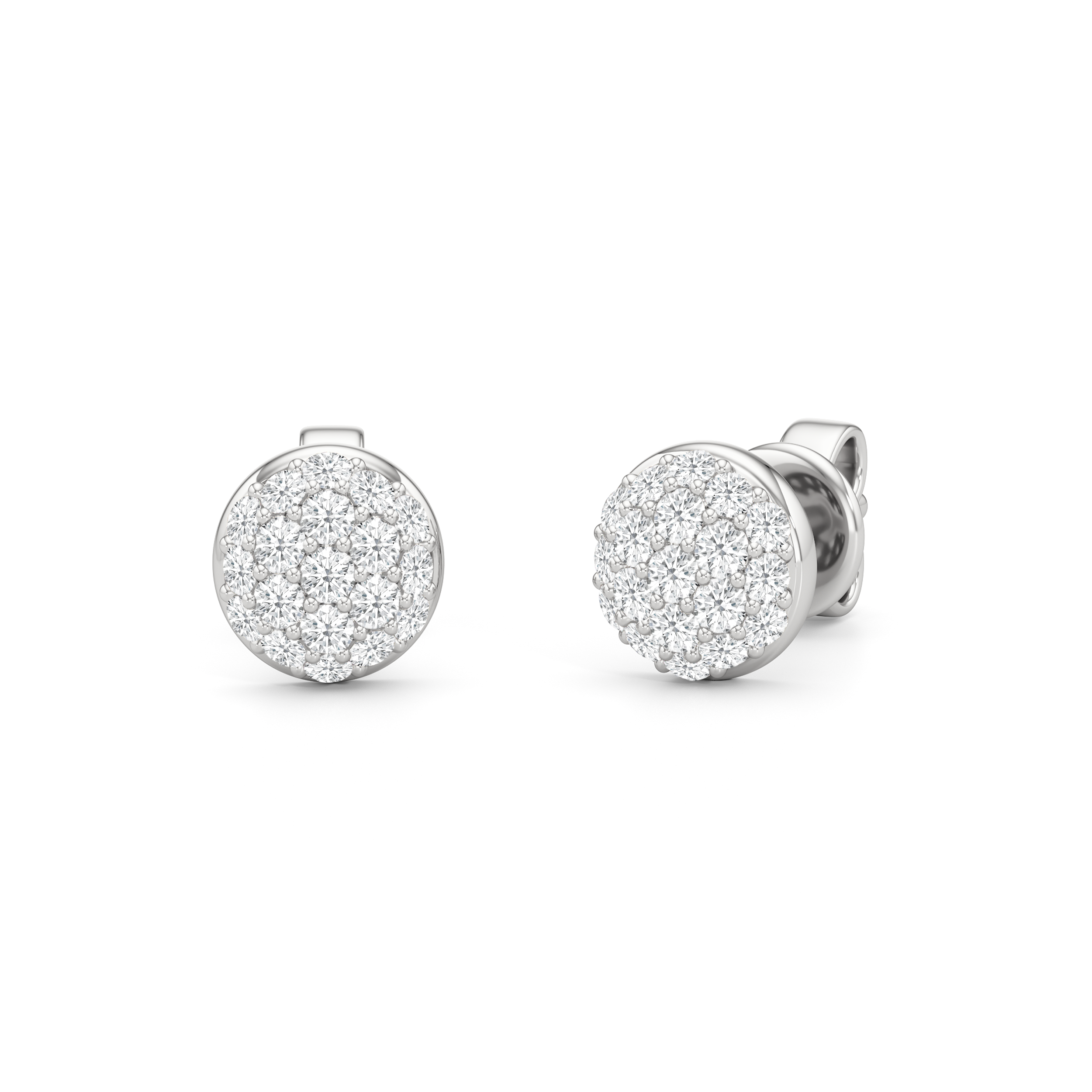 Small but full of light, Lumen stays easy on your ears, no matter how long your day runs. They feature a round base with a clustered arrangement of petite round diamonds, always ready to bring a gentle brilliance to your everyday.