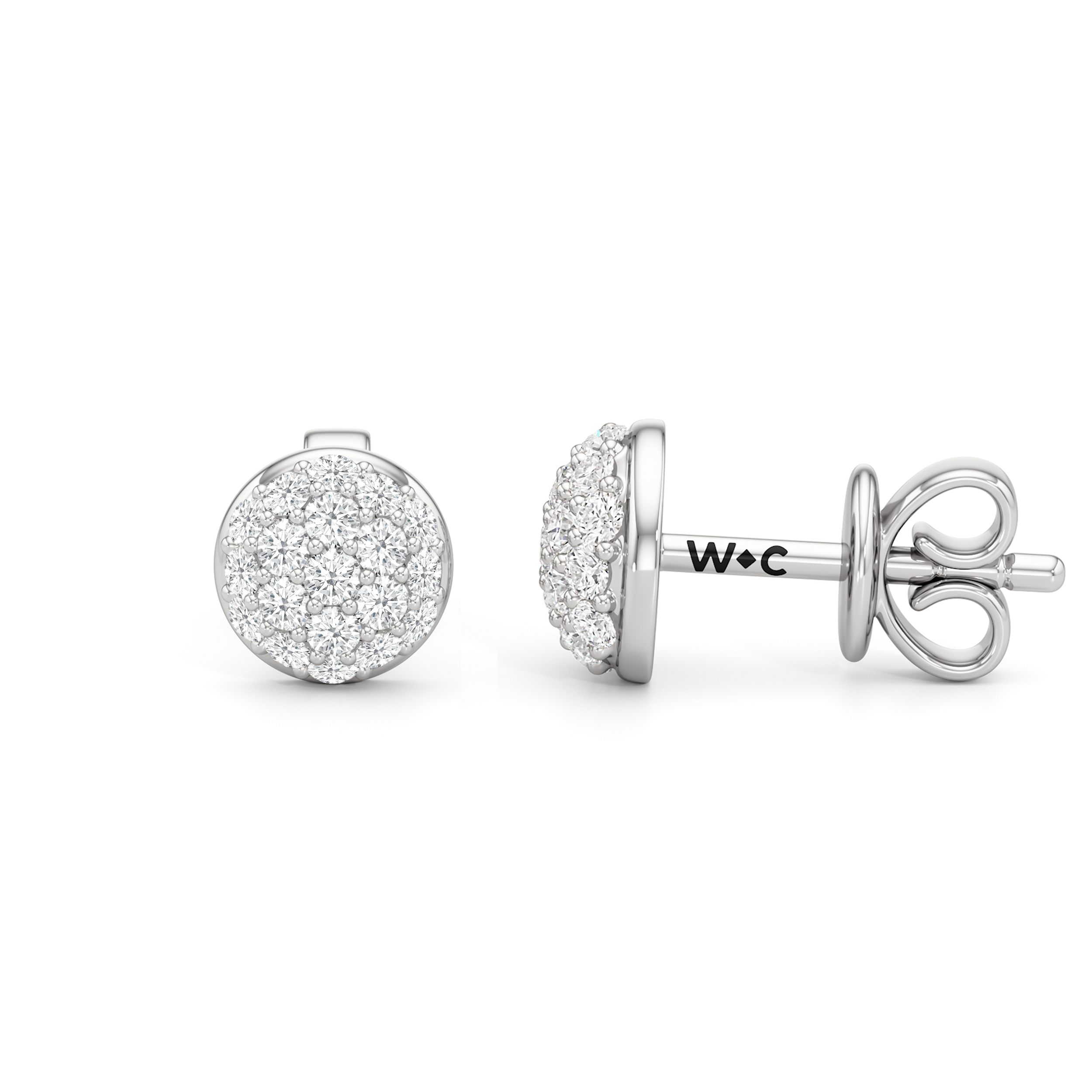Small but full of light, Lumen stays easy on your ears, no matter how long your day runs. They feature a round base with a clustered arrangement of petite round diamonds, always ready to bring a gentle brilliance to your everyday.