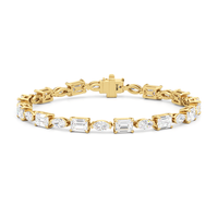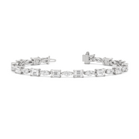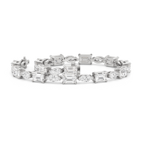 This 13-carat diamond bracelet is the result of the flawless fusion of edgy elegance and traditional sensibility. Designed with 13 emerald-cut diamonds and 13 marquise diamonds, arranged alternately into a single line and all in an east-west setting, this tennis bracelet offers versatility that suits any occasion.