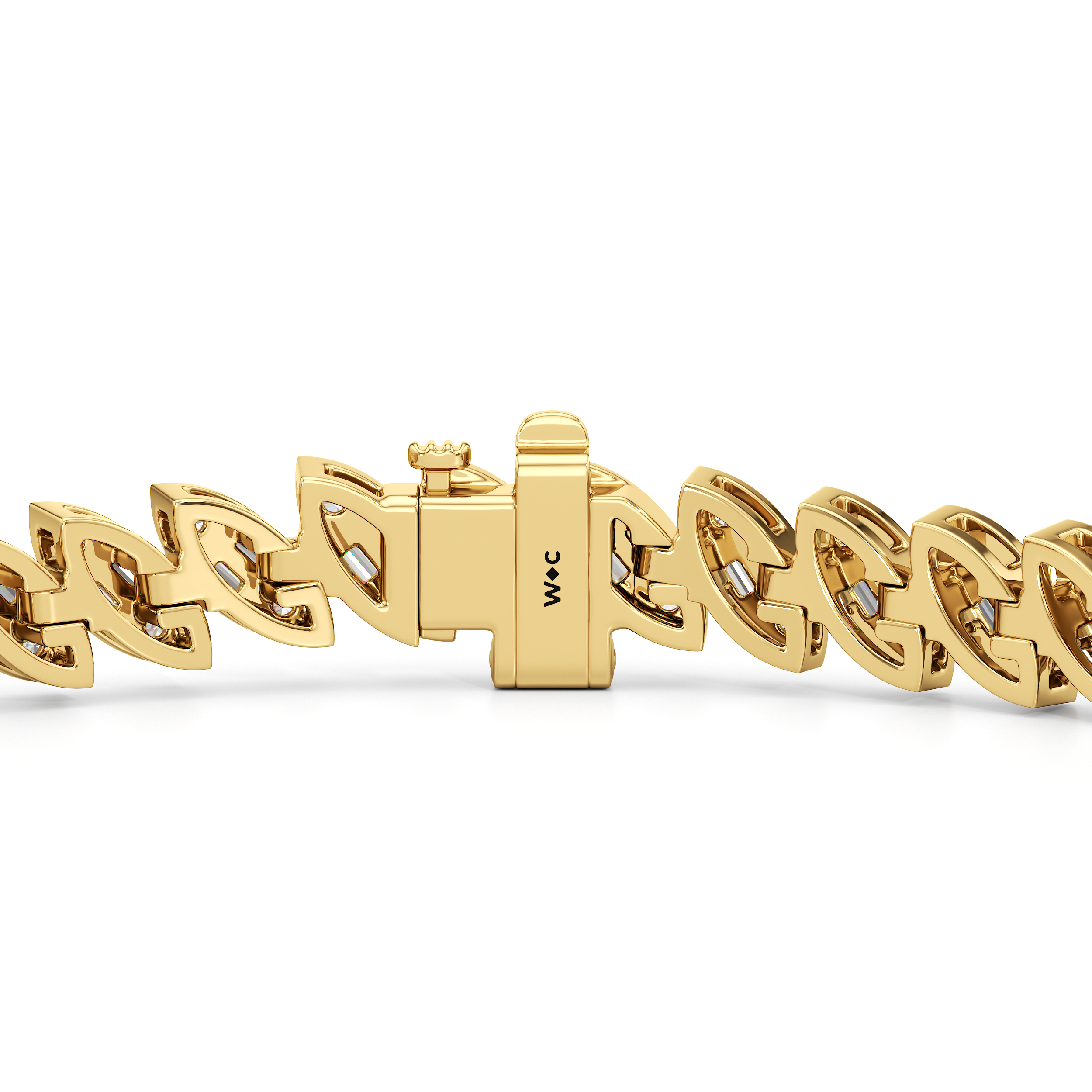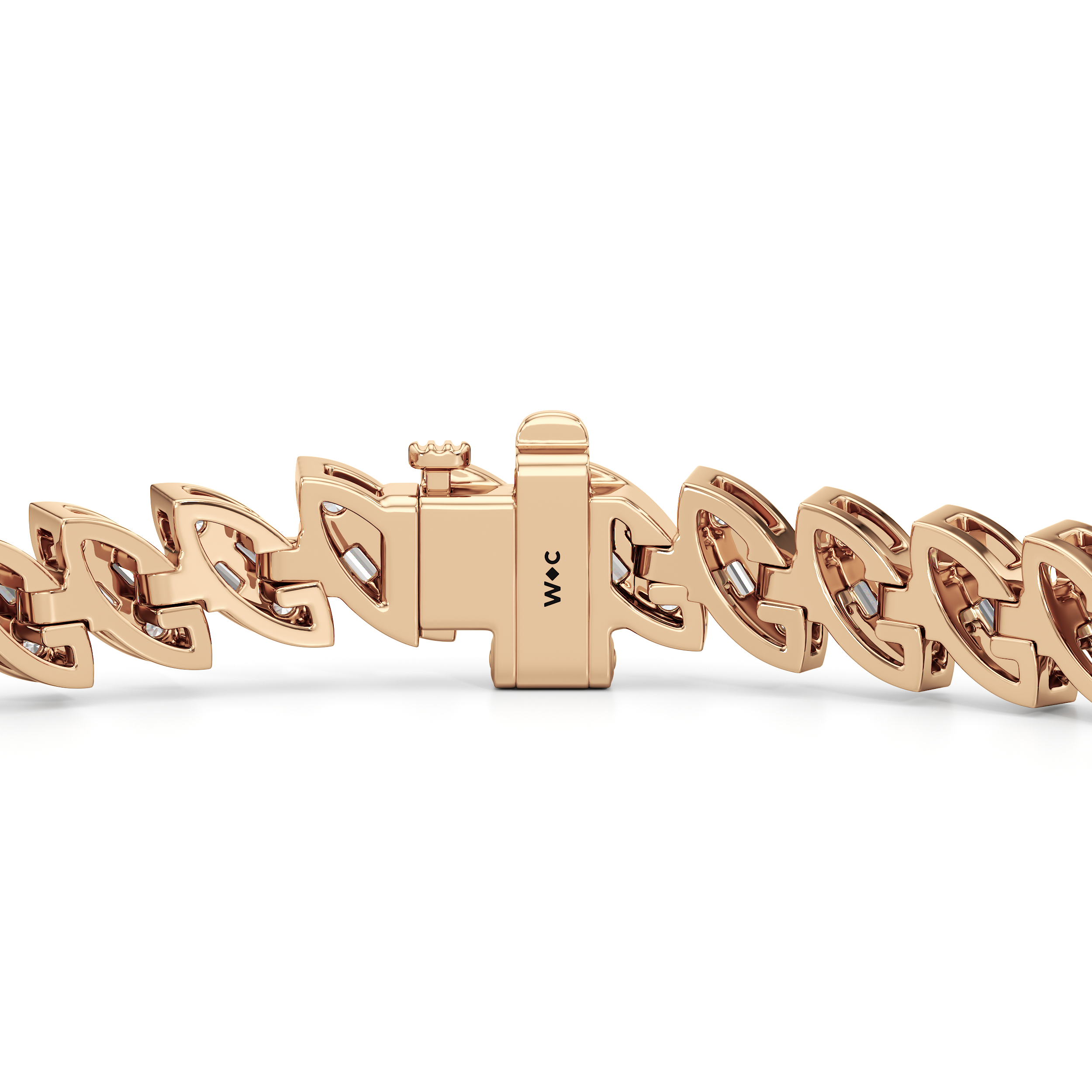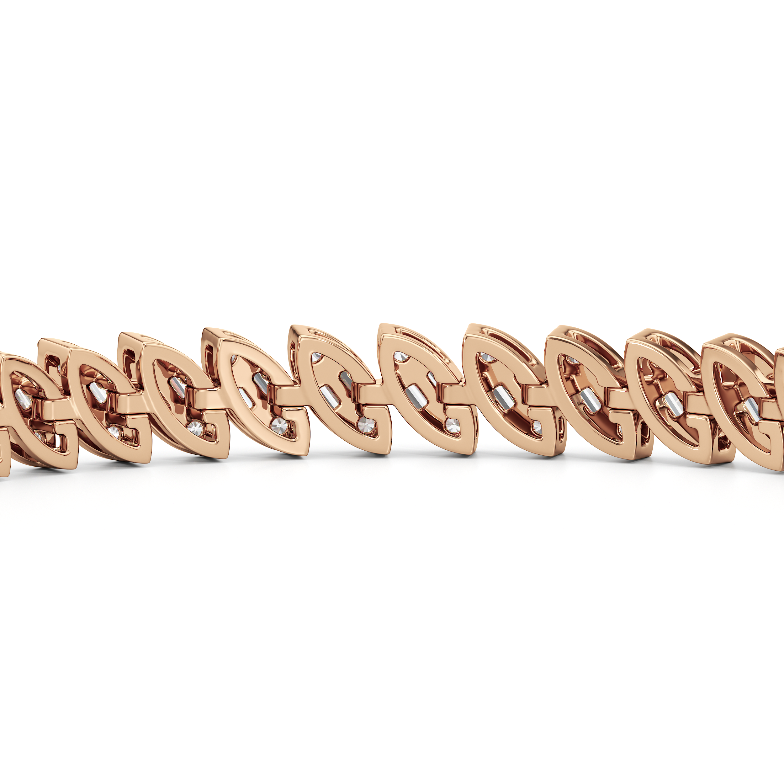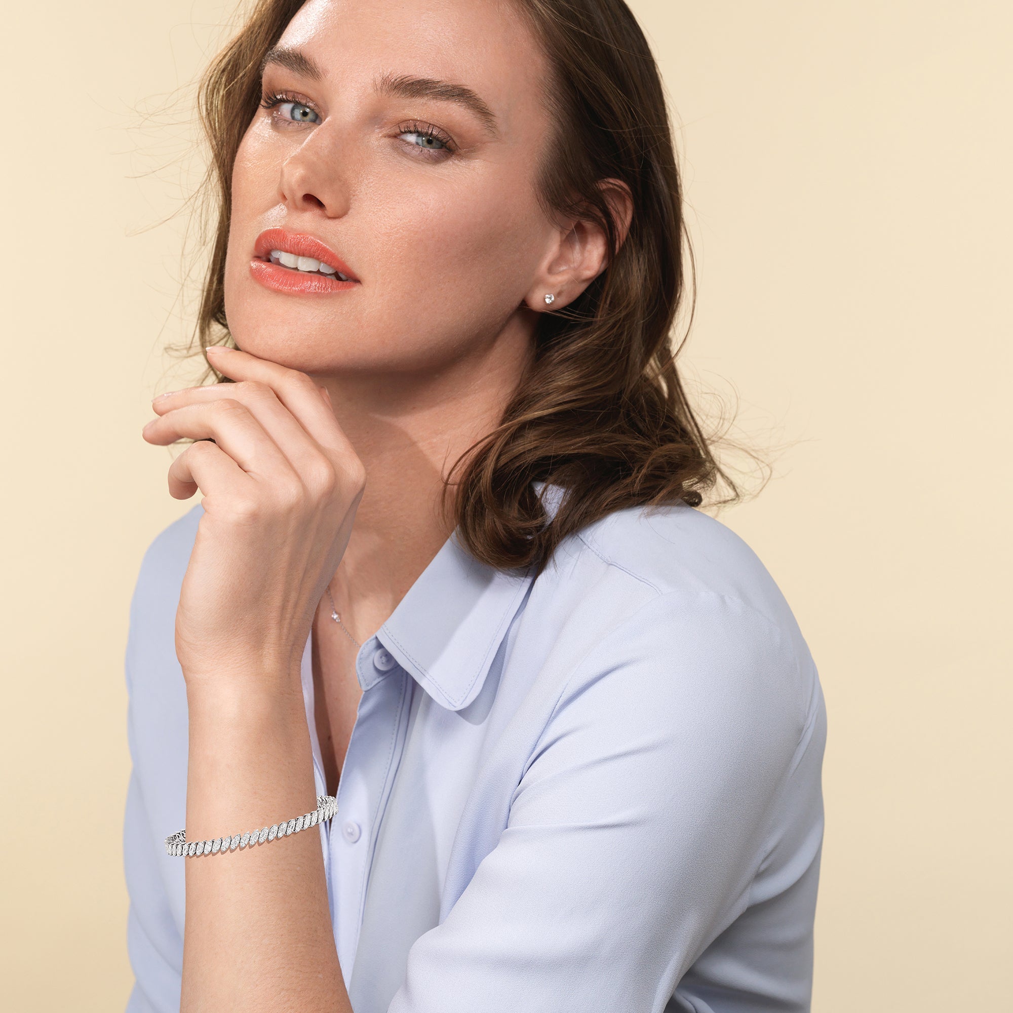 Your new fashion-daring all-rounder, ready to elegantly wrap your wrist in brilliance. This line bracelet features a continuous row of diagonally set marquise-shaped baskets, each cradling round and baguette diamonds.