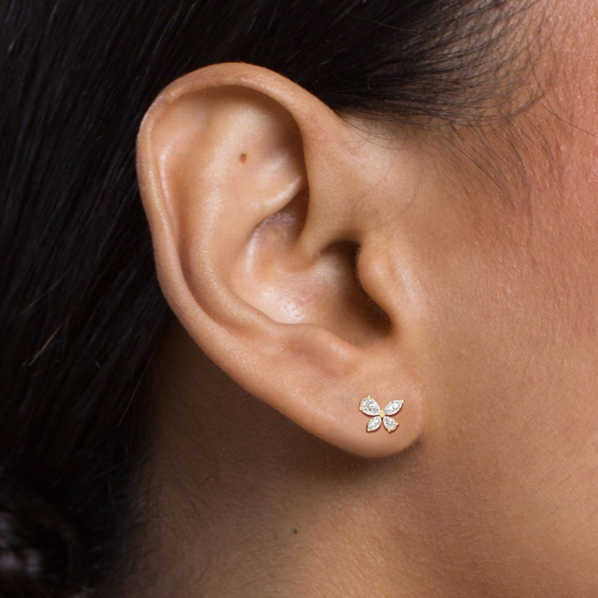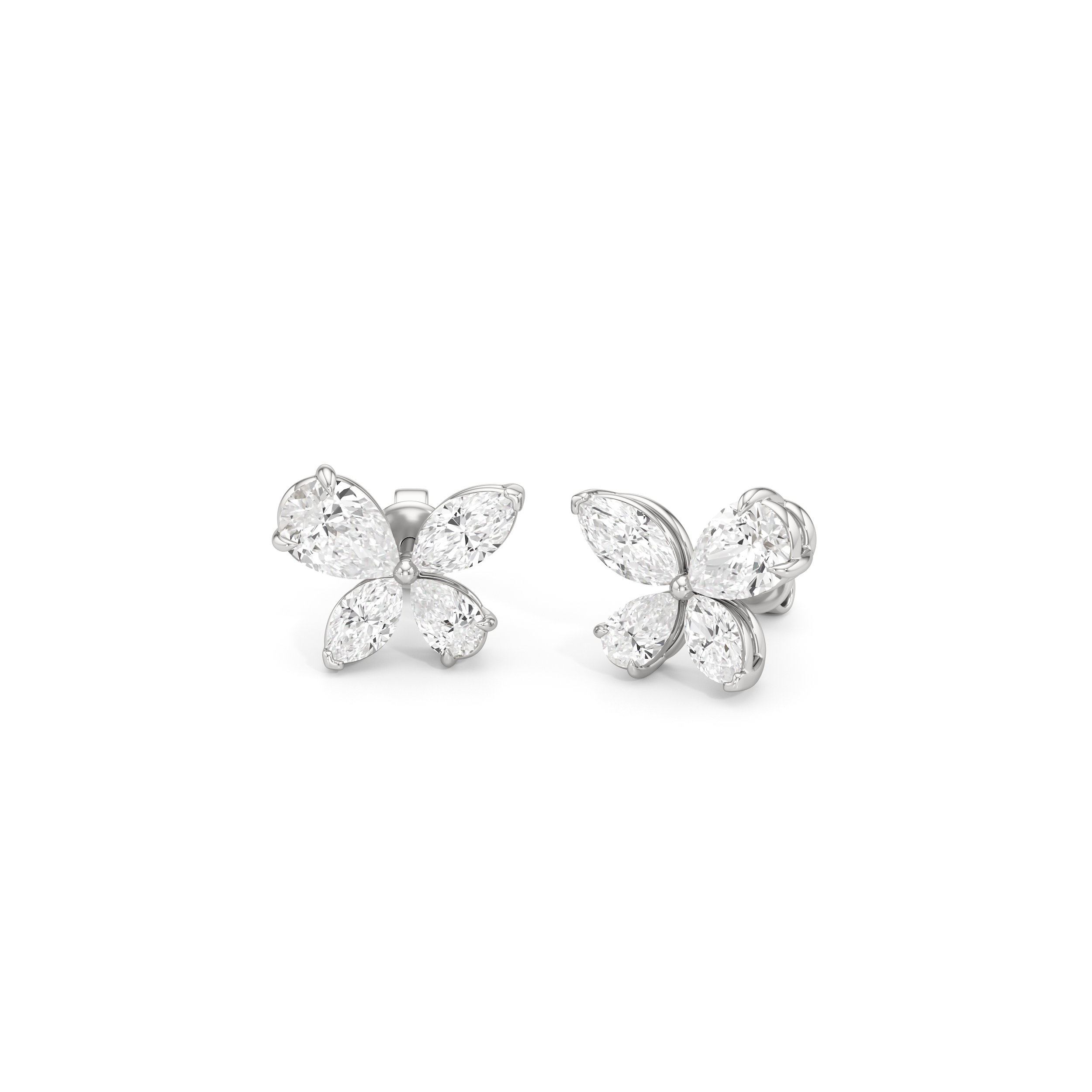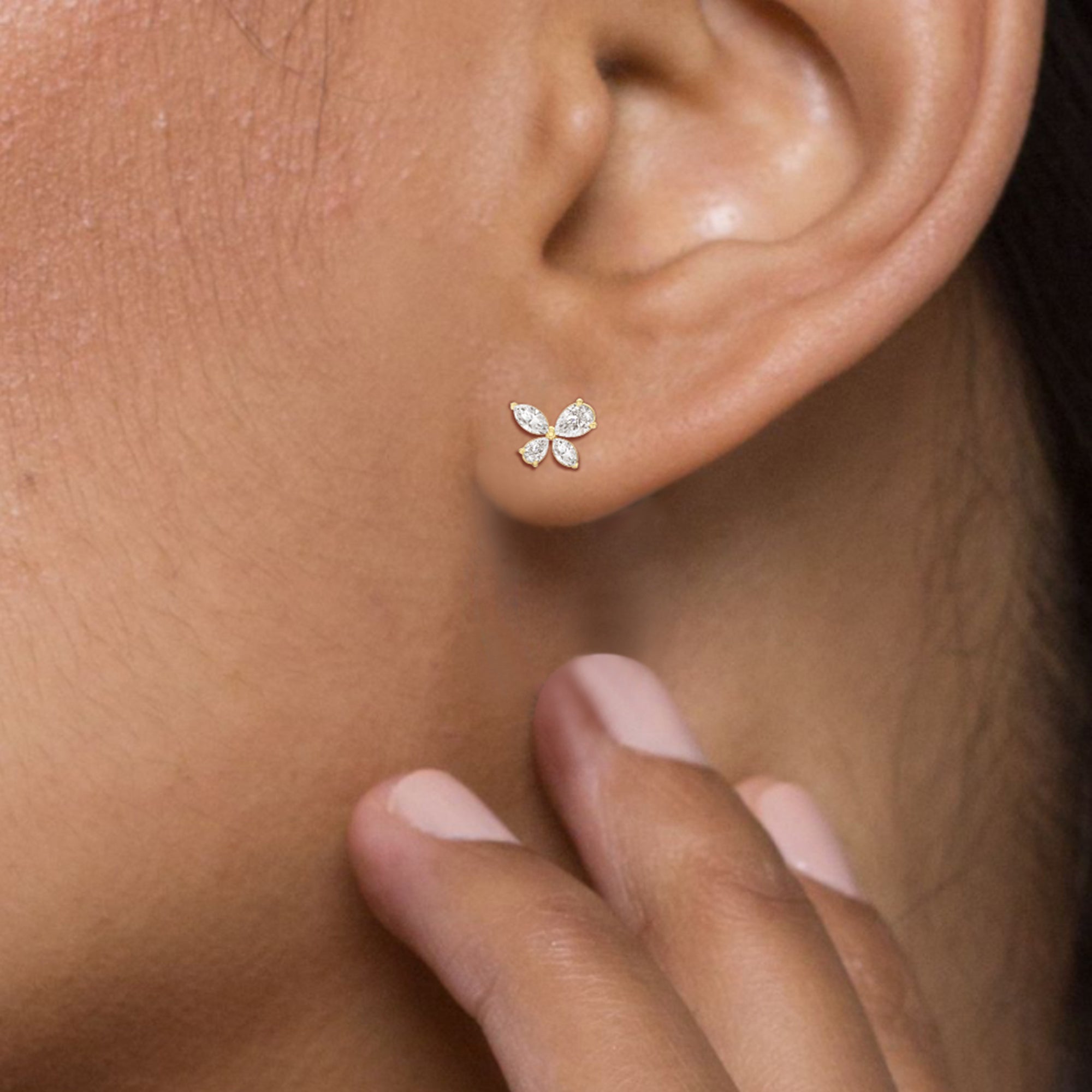 The Marsilea Studs are a delicate fusion of nature and elegance, inspired by the graceful form of the Marsilea flower. Each stud features a shimmering diamond-studded bloom, suspended from a fine chain that adds movement and modern sophistication. Designed with a secure push-post closure, these earrings offer a refined balance of sparkle and fluidity. Perfect for adding a touch of organic beauty to any look, the Marsilea Bloom Studs bring effortless charm and brilliance to every occasion.
