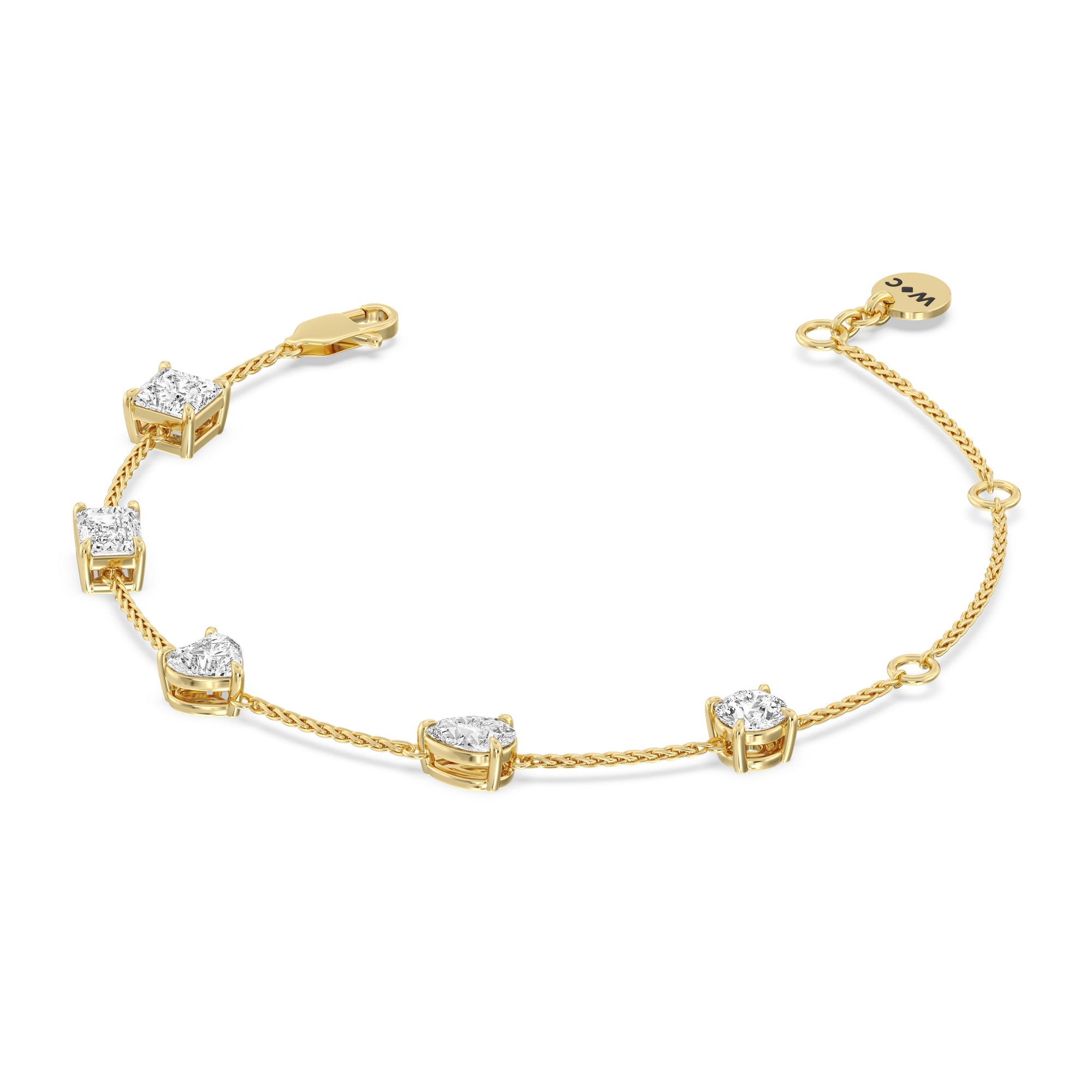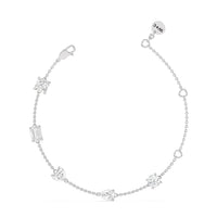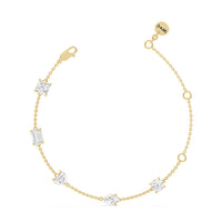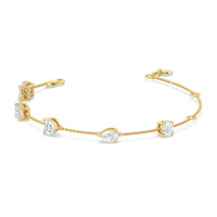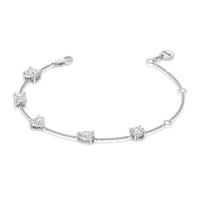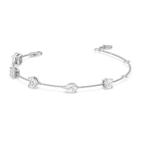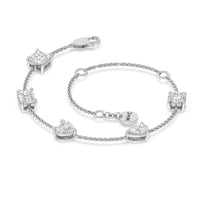 Can't decide which diamond cut to pick? Wear them all through this fashionable diamond bracelet. The bracelet chain bears five diamonds - a princess, emerald, heart, pear, and round cut - on prong basket settings. The sparkly yet unassuming look of this diamond bracelet allows it to work as an everyday or special occasion accessory.