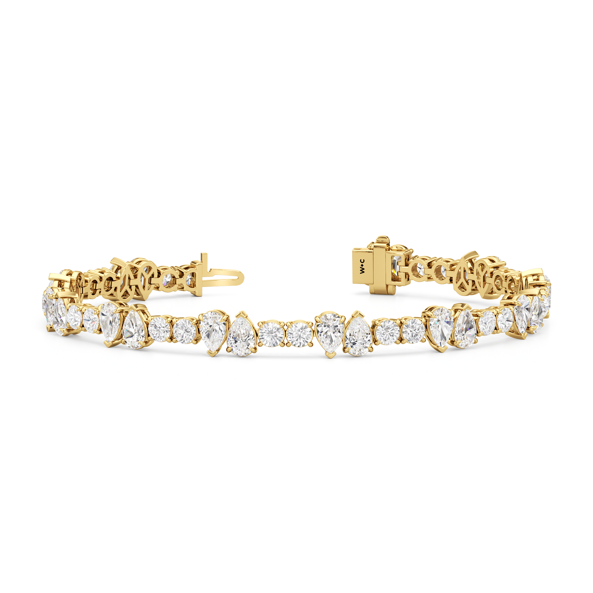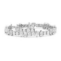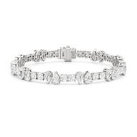 This tennis bracelet offers the most striking contrast. It features duos of pear diamonds in edgy east-west setting breaking the classic chain of round diamonds. With ethically sourced diamonds that radiate luxury, this diamond bracelet is worthy of the attention it will surely draw.