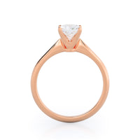 A sleek and defined ring with a smooth finish. This ring style curves gracefully up to meet the center diamond with a smooth finish. The look is seamless and flowing.