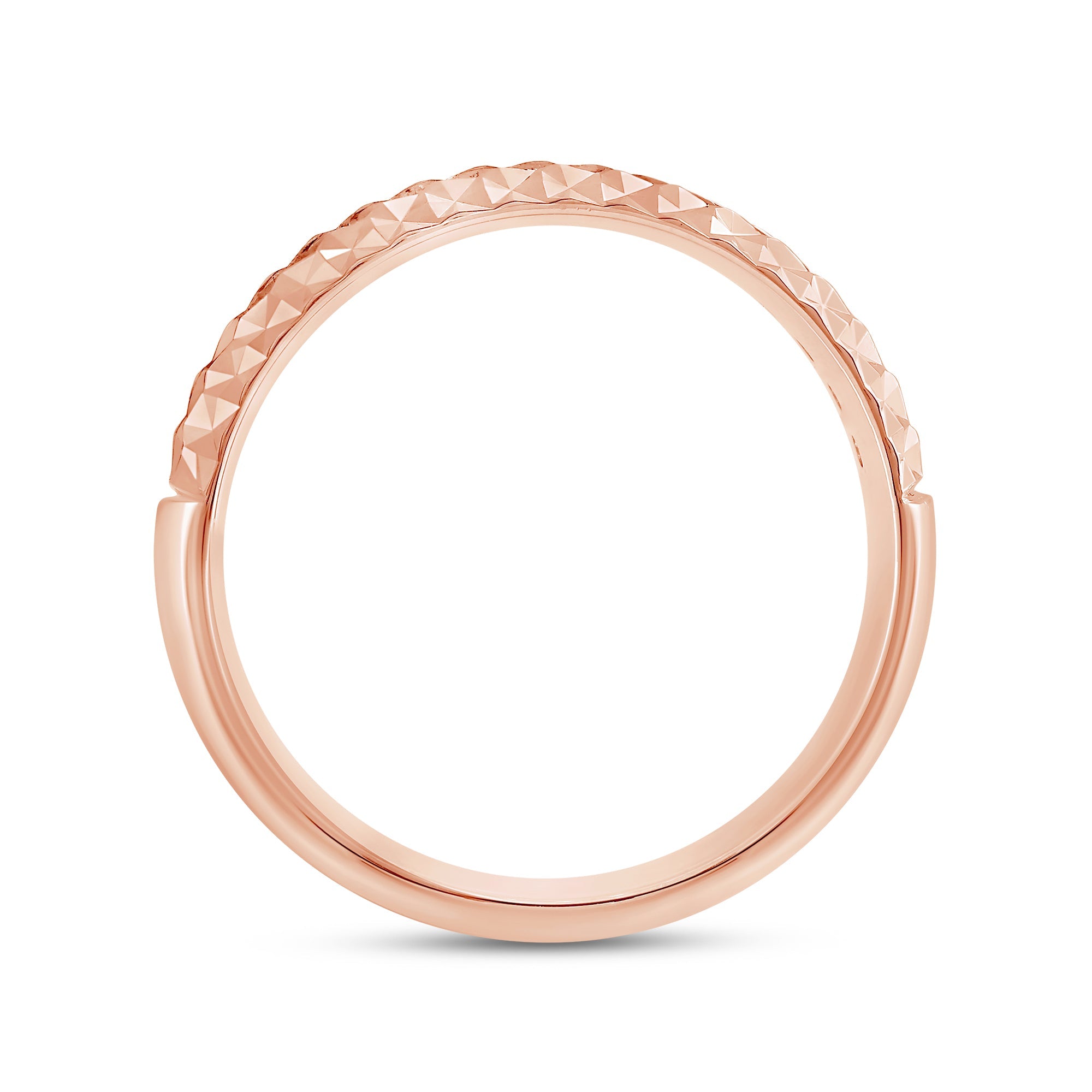 A man with a bold taste will love the edgy and unconventional yet refined look of this band. The ring features a tiered design with a circle of diamonds positioned below a pattern of light-reflecting pyramidal notches.