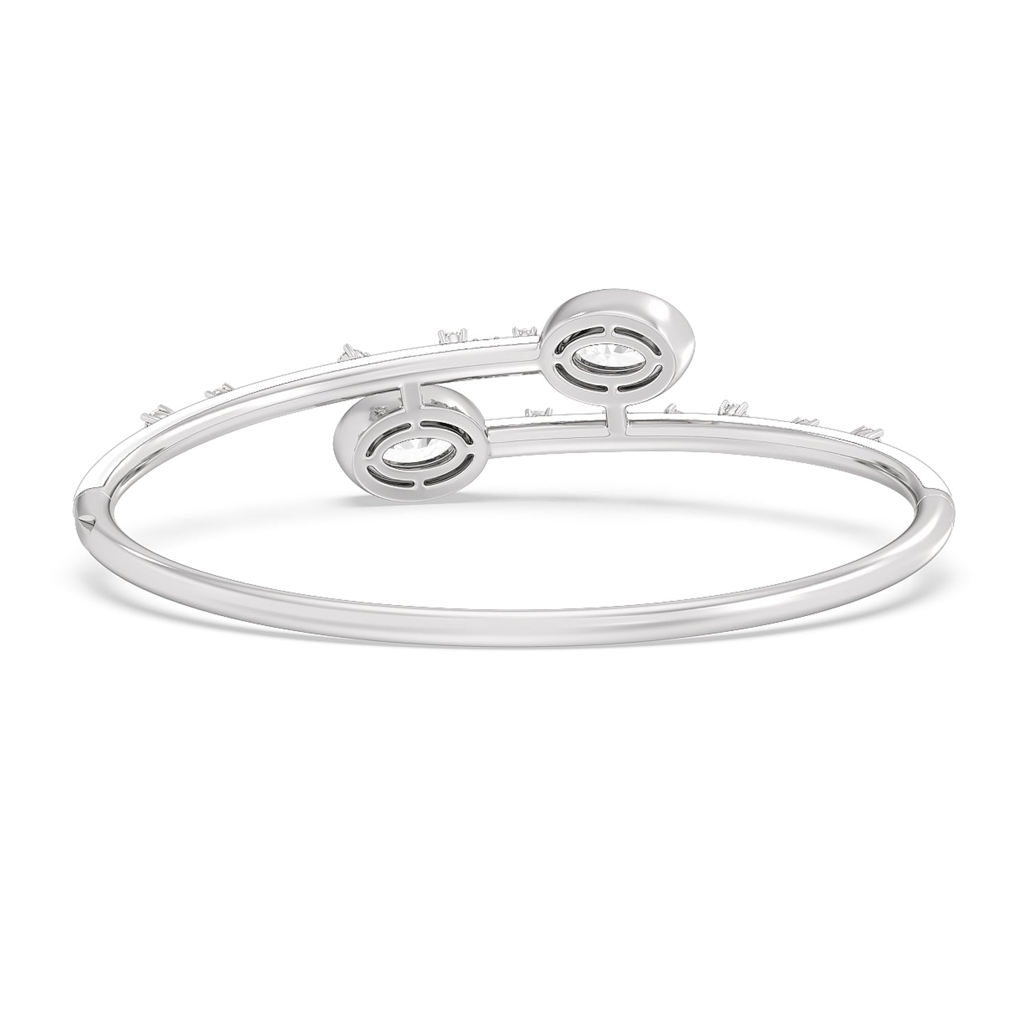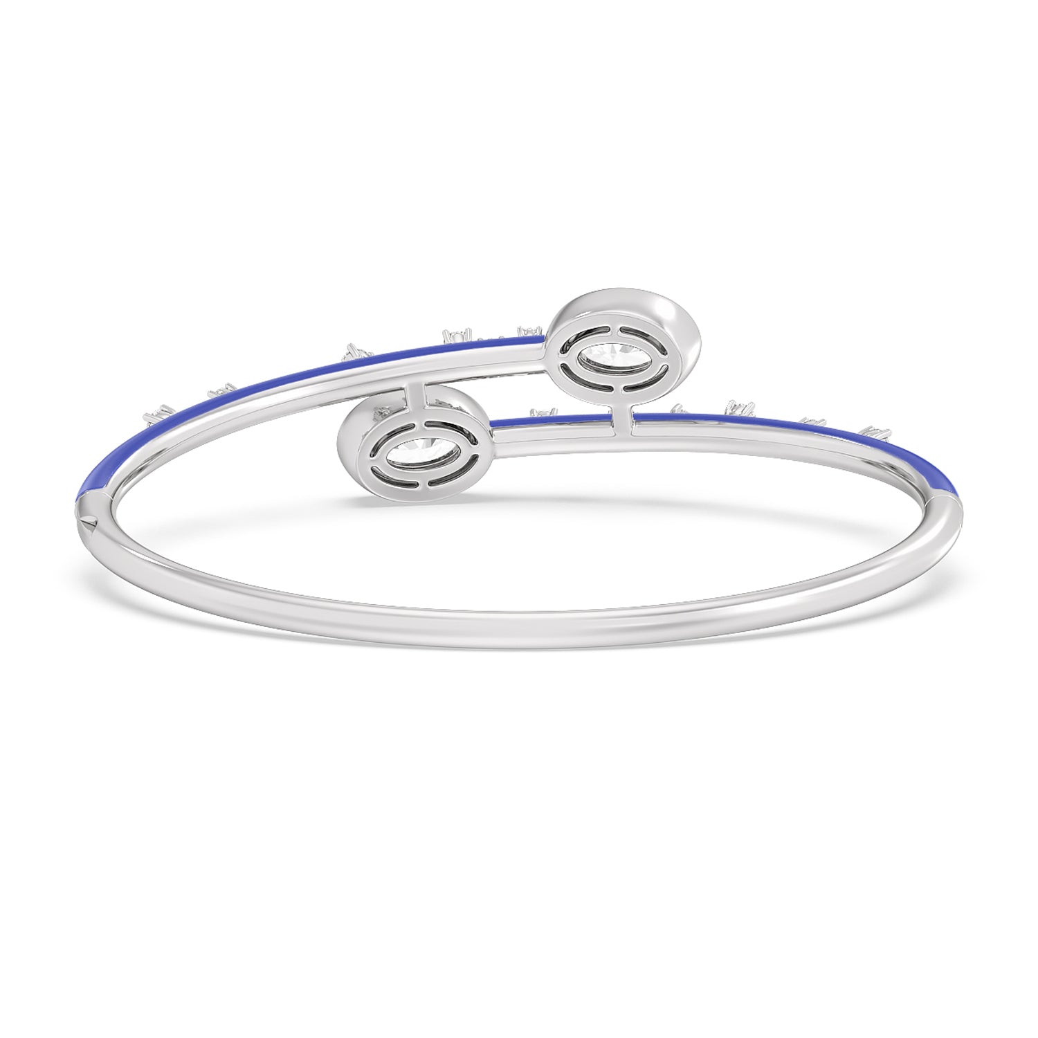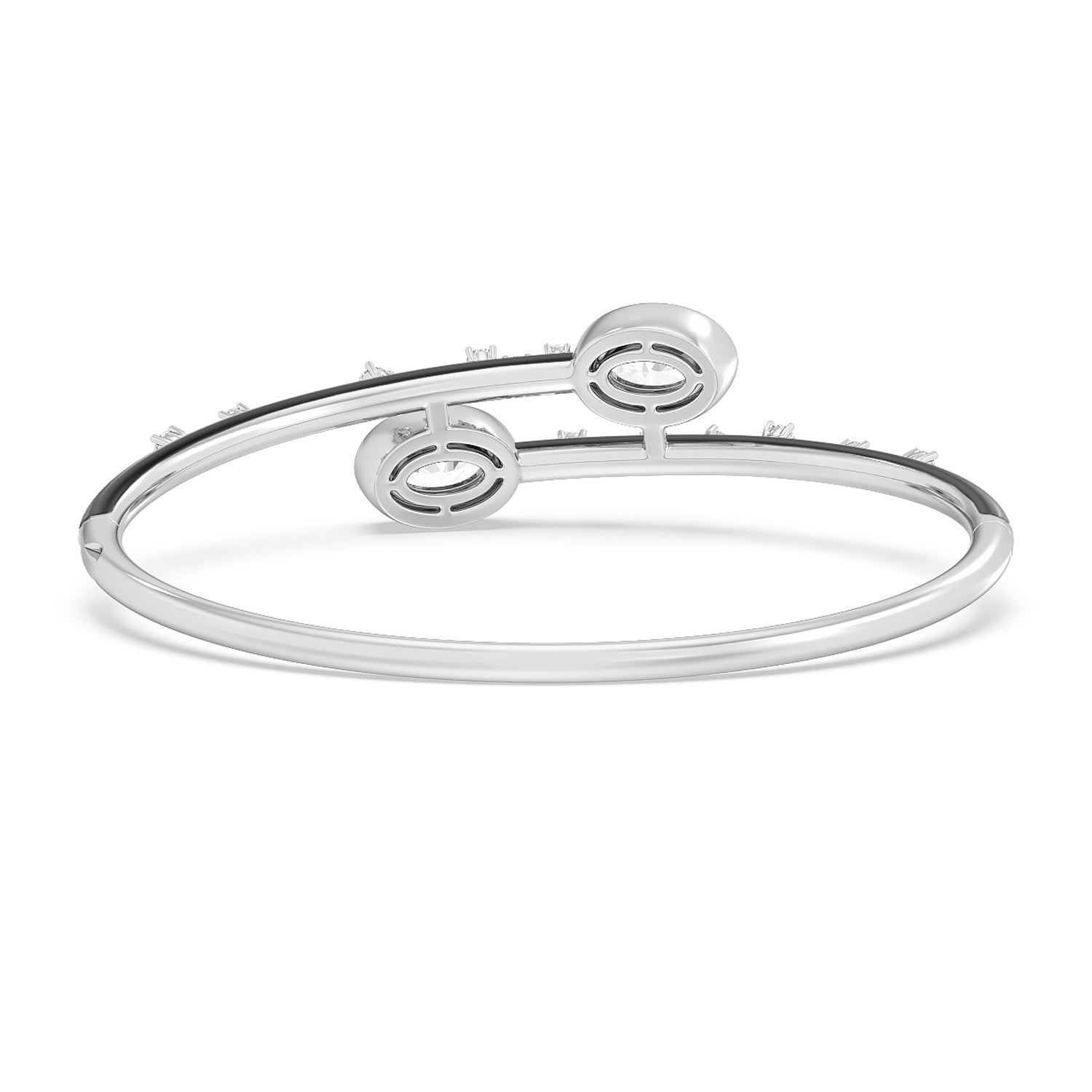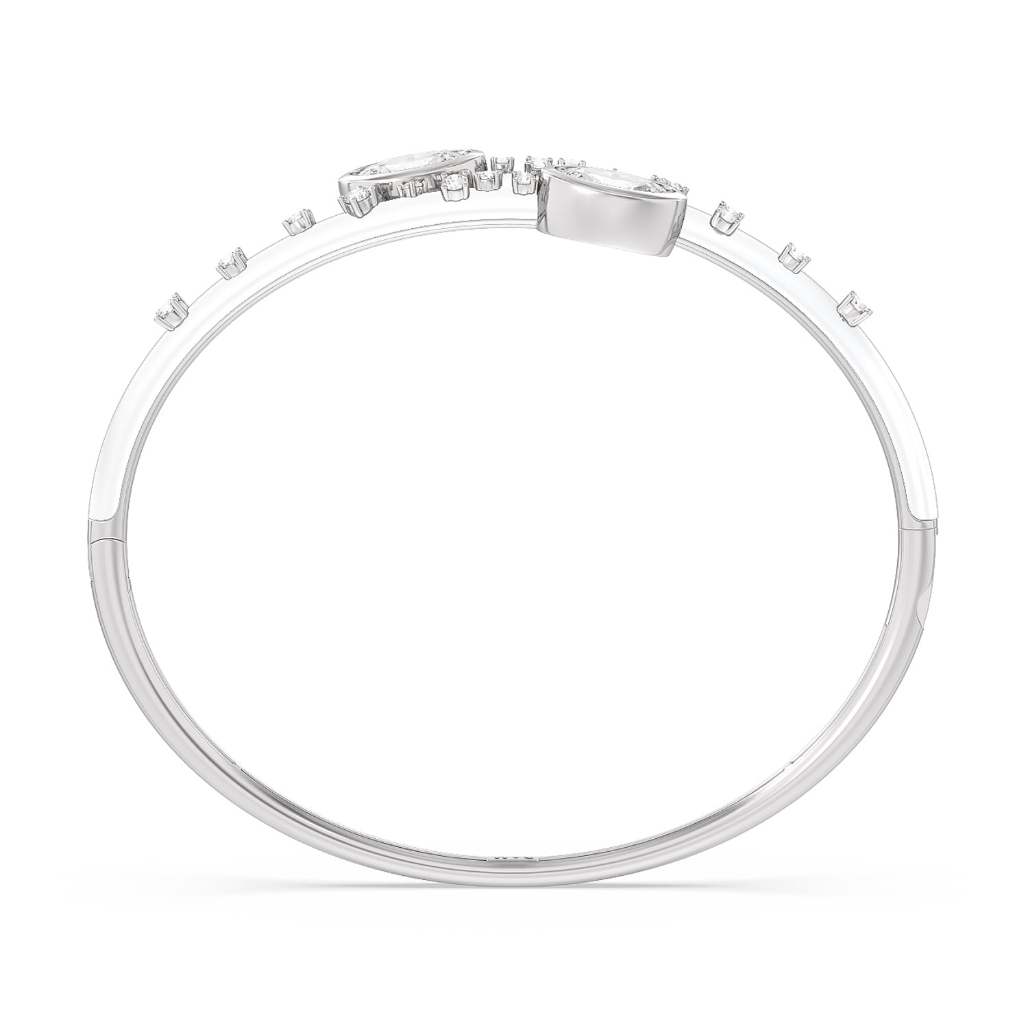 A mood boosting bracelet that elevates any look. It features an open bypass design with ceramic coating and diamond embellishment on the bangle's top half circumference. Two oval diamonds sit at each tip of the bangle's opening.
