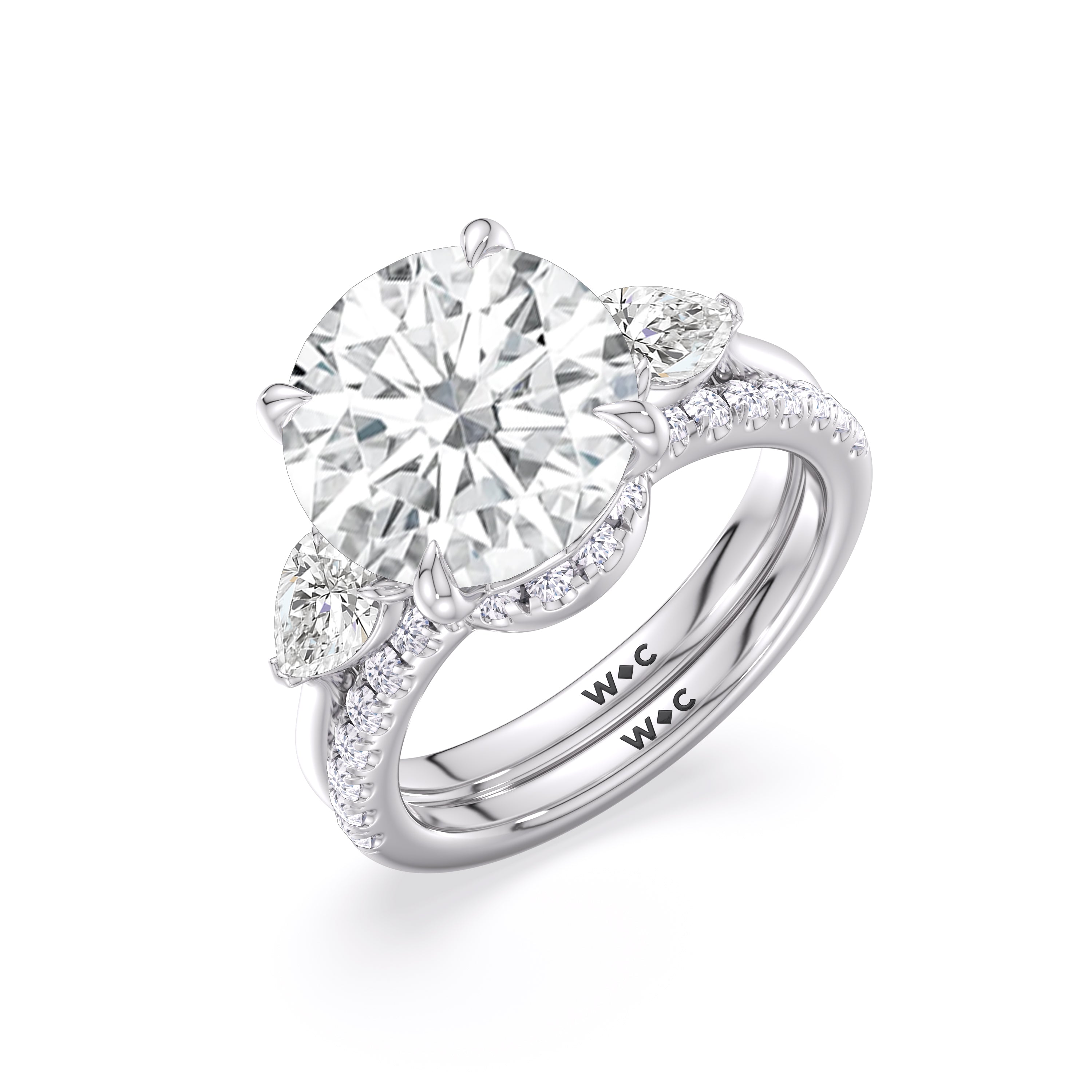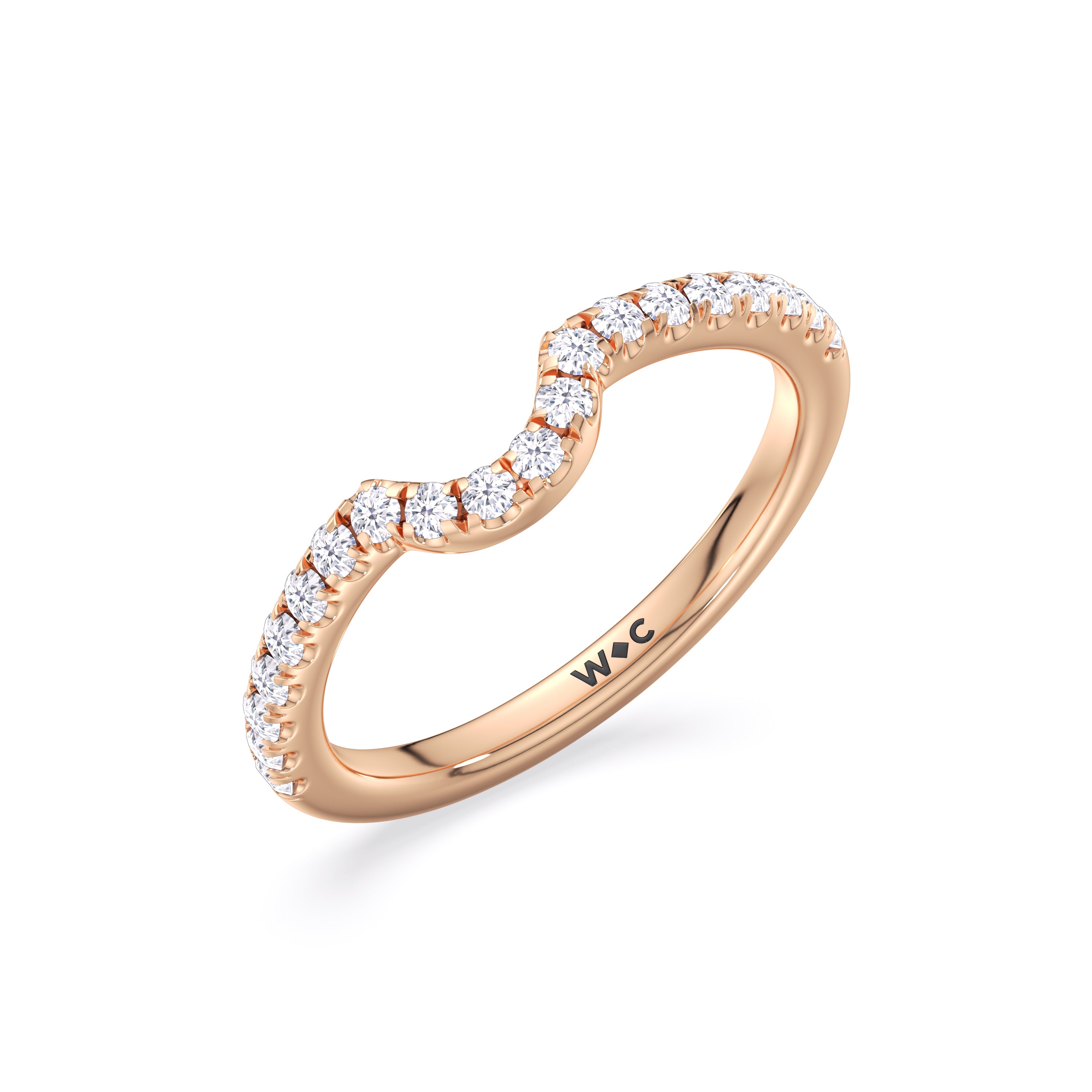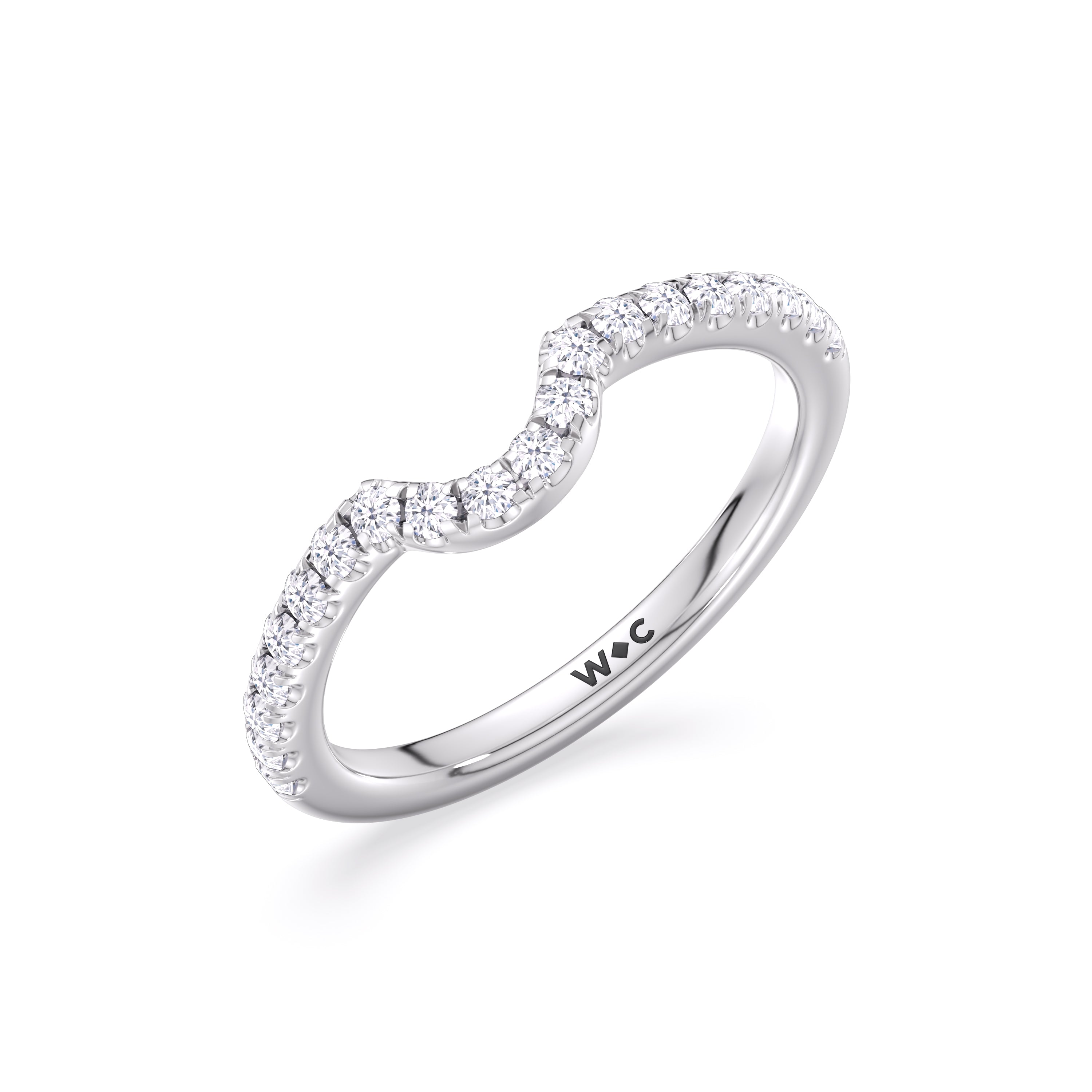 This curved diamond set wedding band is perfectly contoured to complement our opulent classic pear trio ring for a simple and sophisticated look.