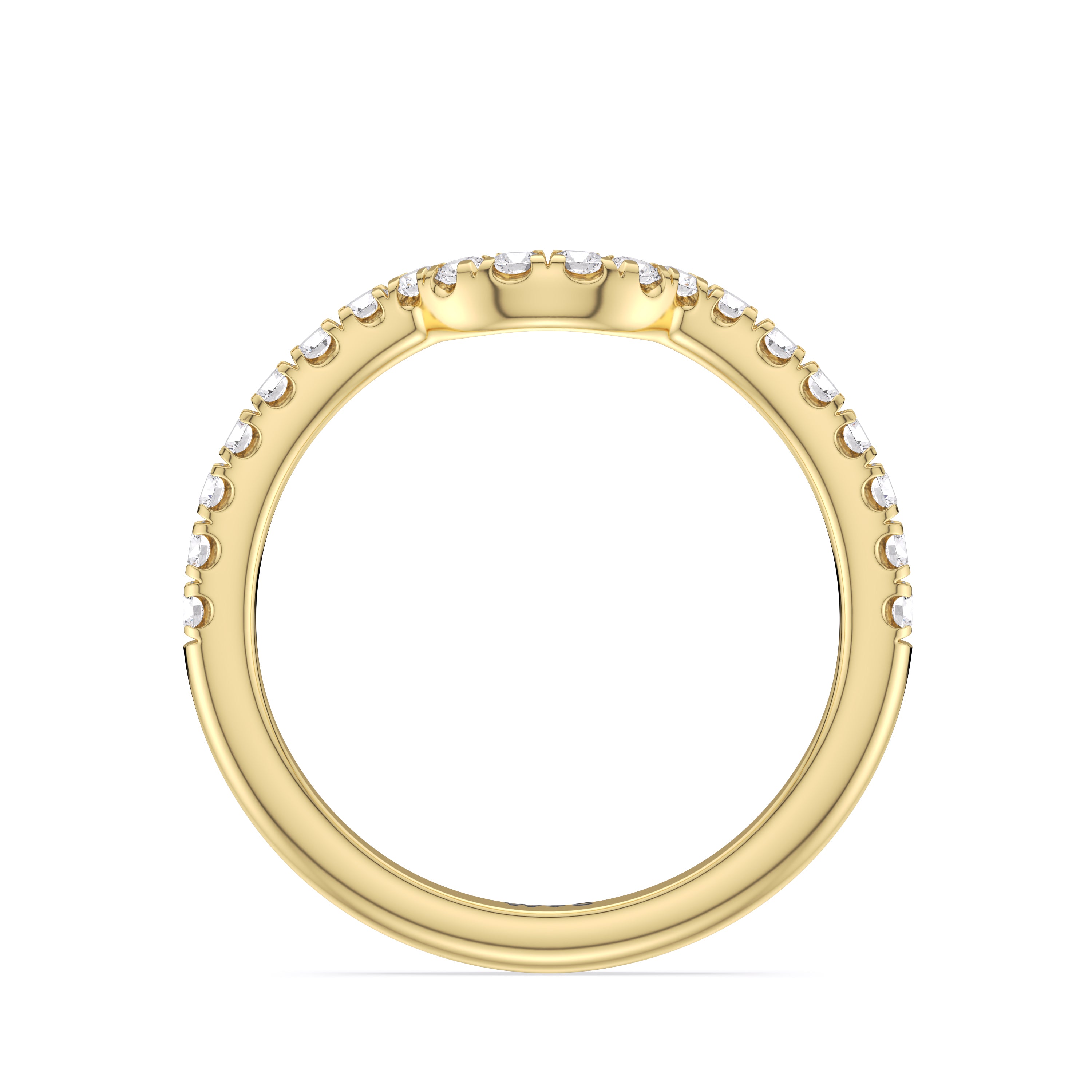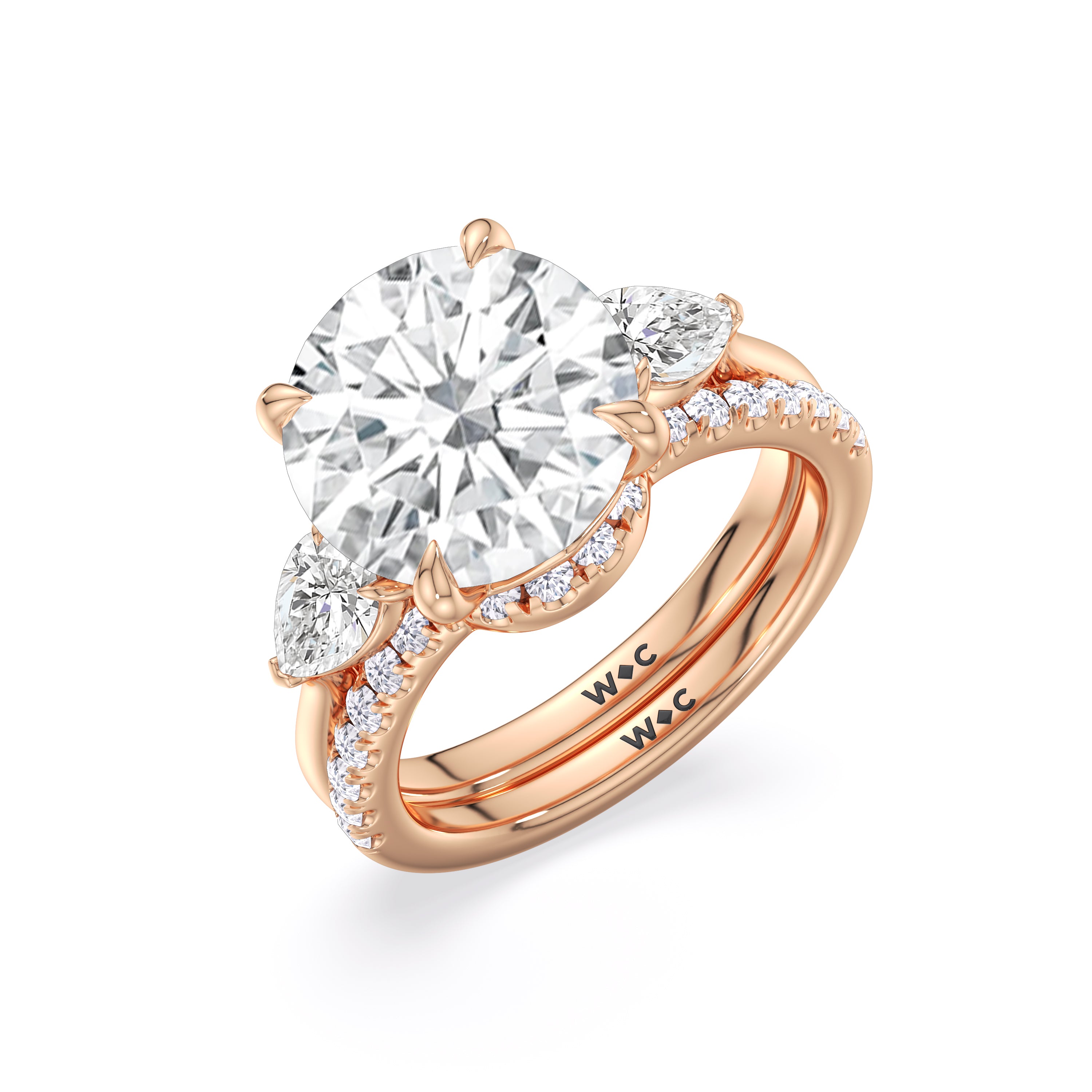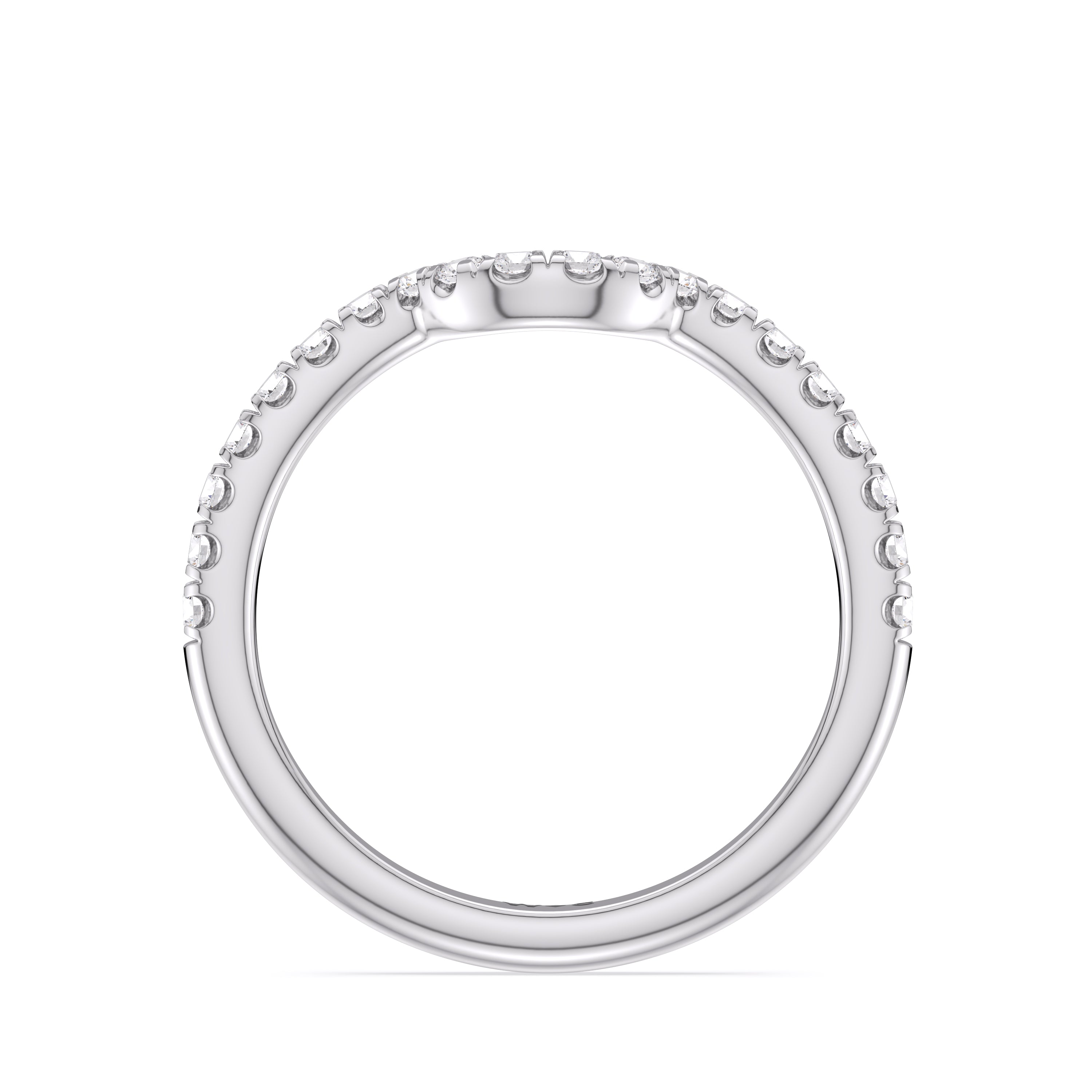 This curved diamond set wedding band is perfectly contoured to complement our opulent classic pear trio ring for a simple and sophisticated look.