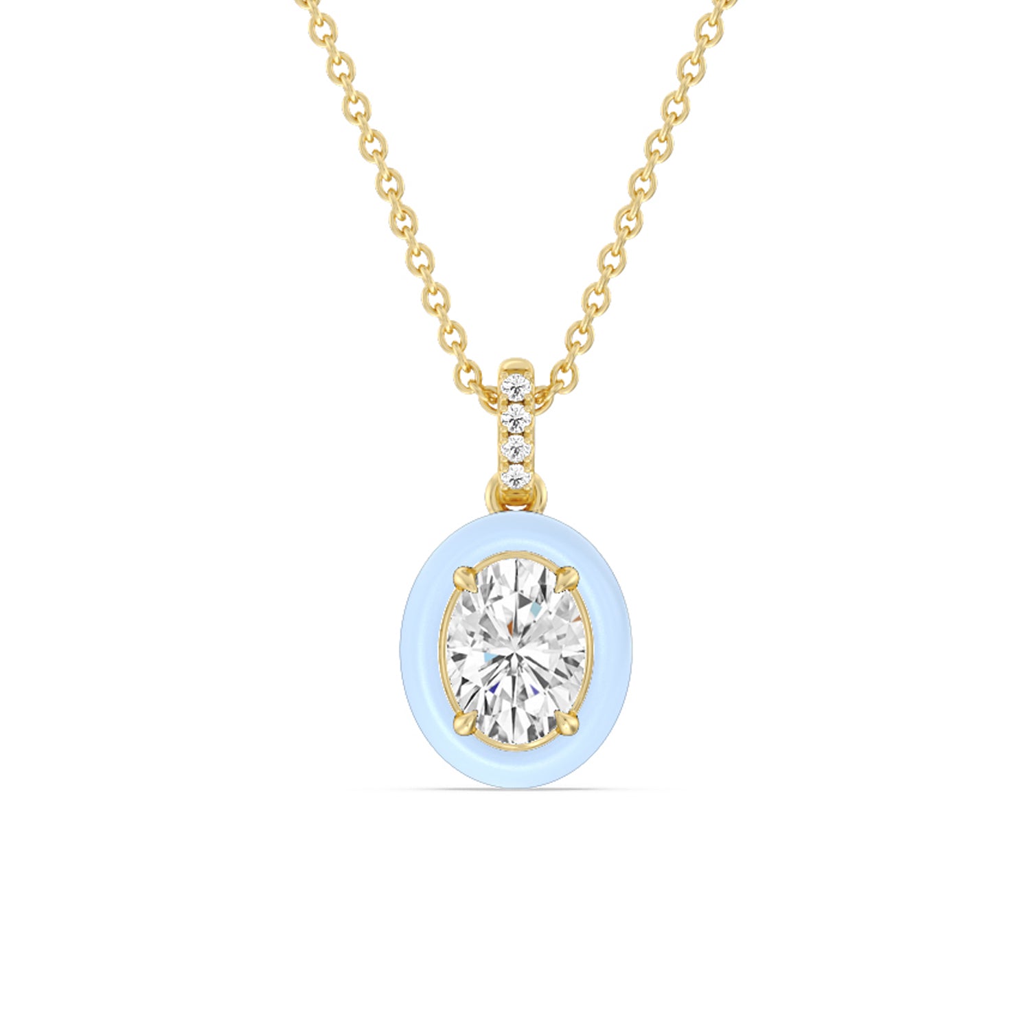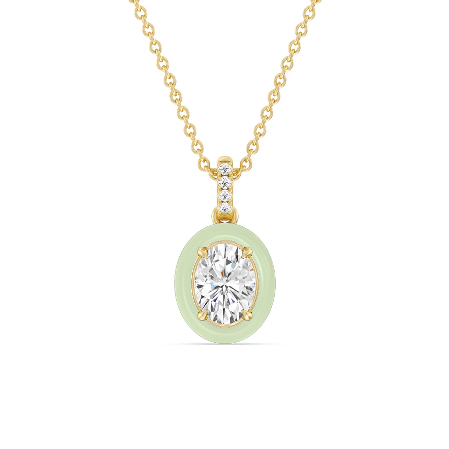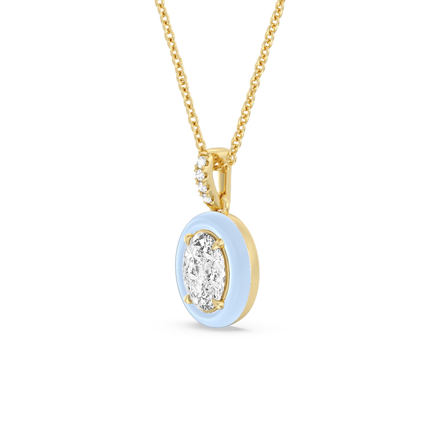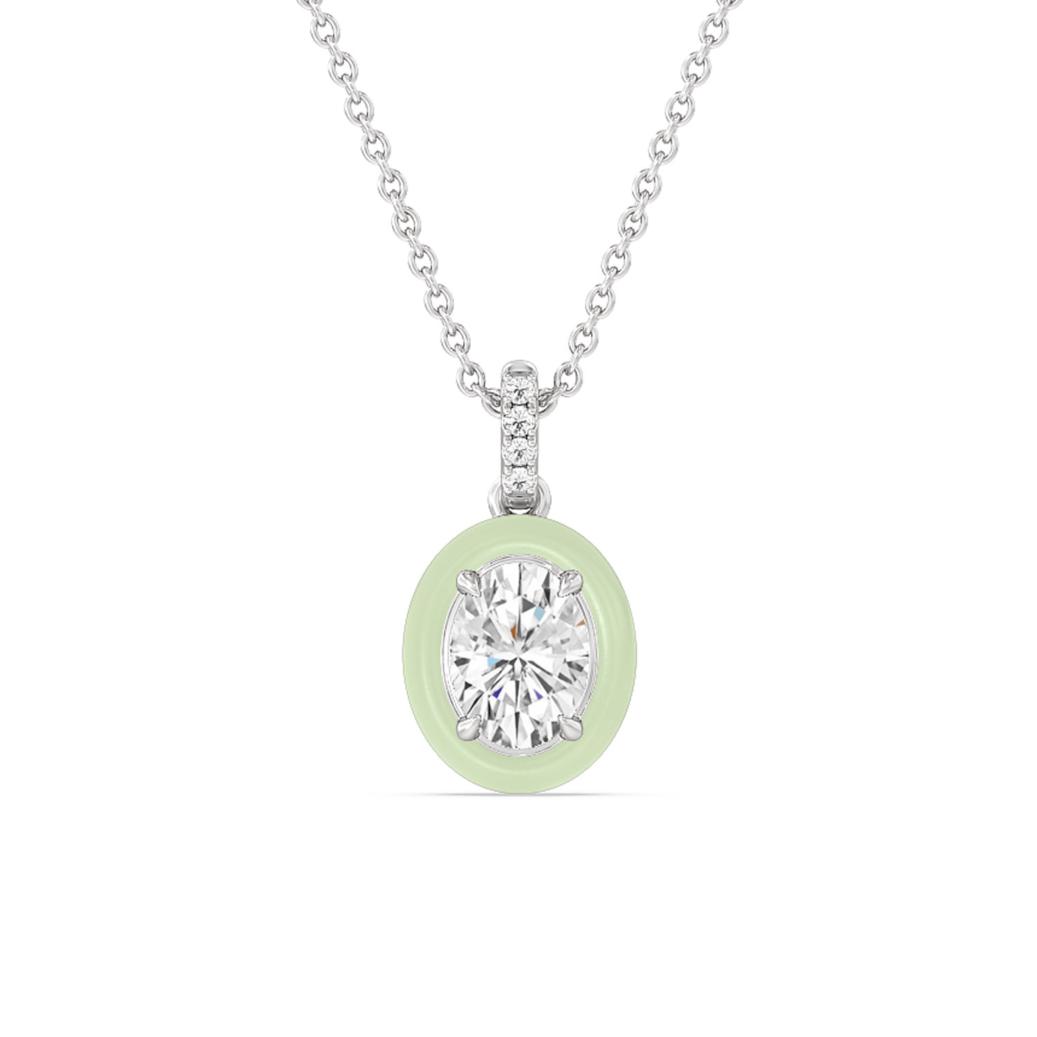 A destination-worthy accessory to complement your vacation outfits. This necklace features an oval diamond confined in a ceramic frame that can be personalized in your preferred color. Four petite round diamonds trace the bail and enhance the necklace's out-of-the-ordinary appeal.