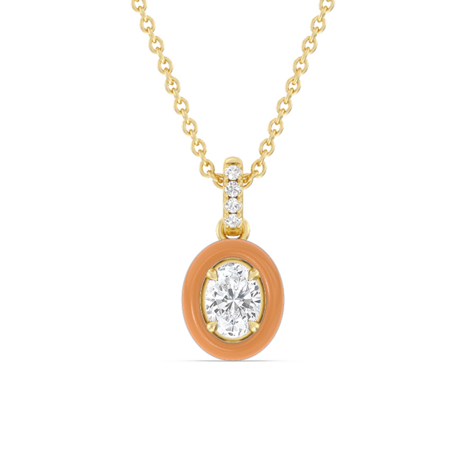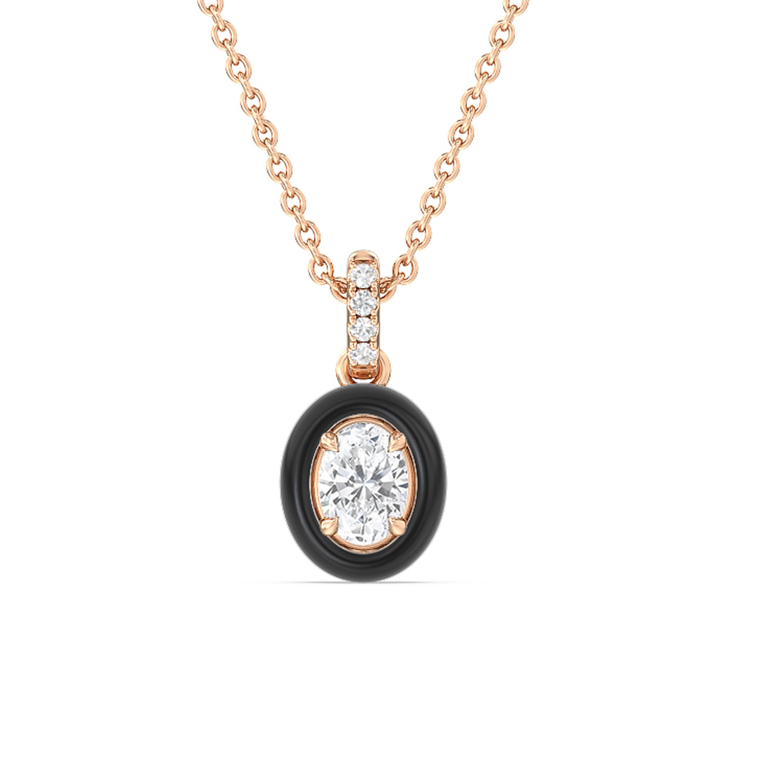 This oval necklace's graceful bounce and charm make it an effortless choice. The diamond's contrast against the plush bezel frame creates an eye-catching look that you won't want to leave the house without.