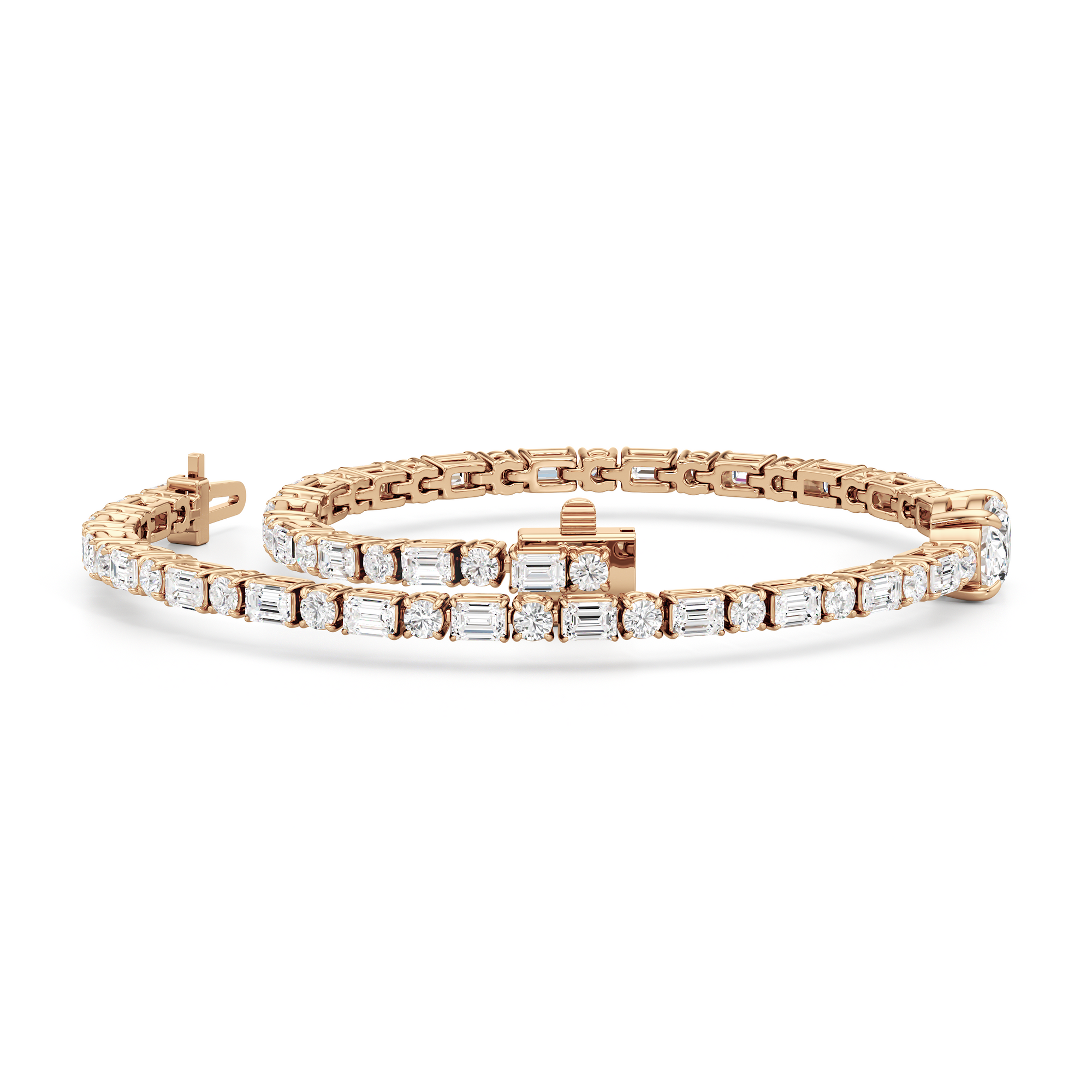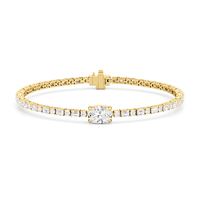 Sleek, sinuous, and subtle - everything you look for in a staple accessory. This 5.29-carat diamond bracelet is made up of 30 emerald-cut diamonds and 31 round diamonds arranged in a single row, in an alternating pattern. One 1-ct oval diamond in east-west setting marks the center and breaks the line for a stylish finish.