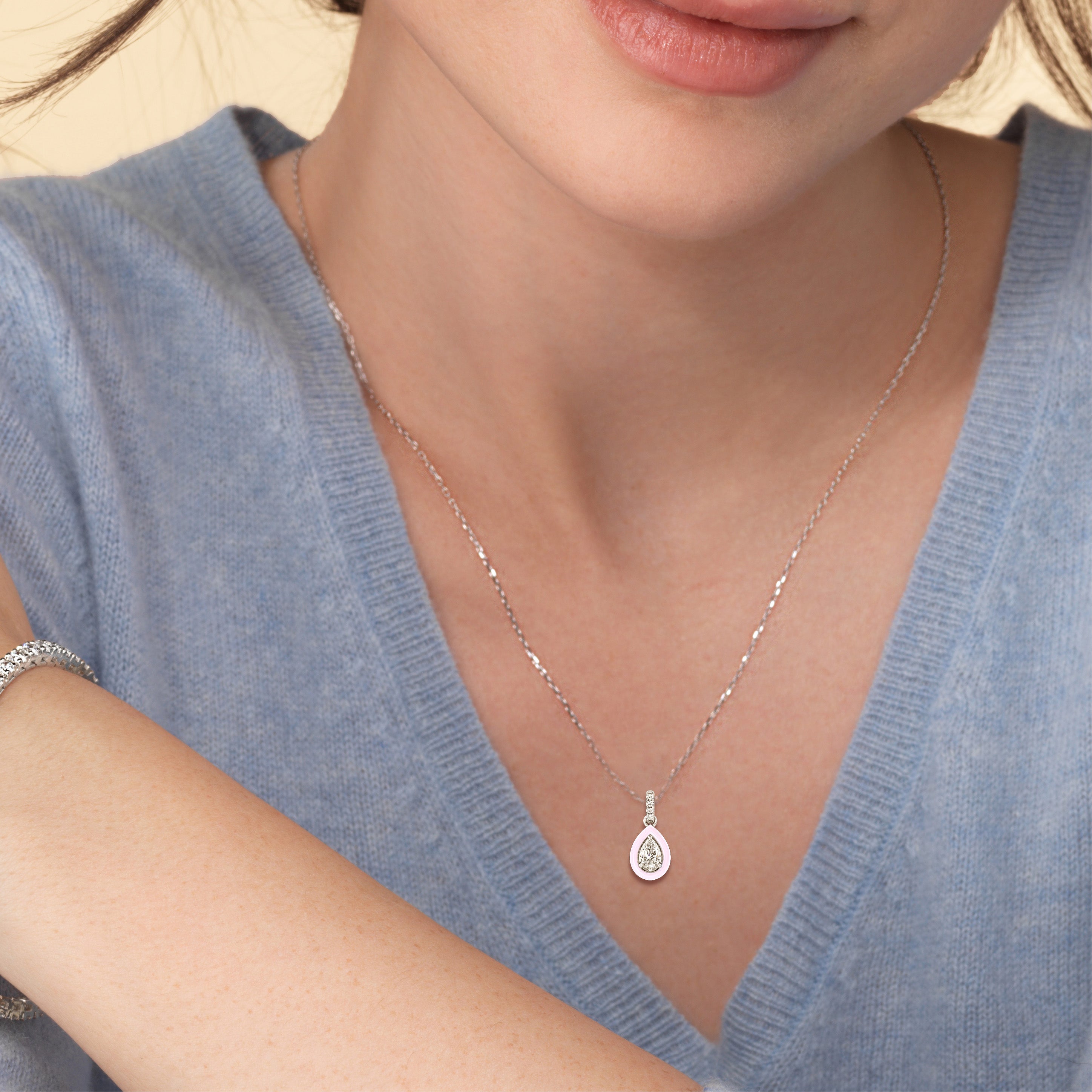 This diamond necklace makes for a perfect layering piece in your jewelry collection. Its smooth, sleek texture not only makes it a comfortable and lightweight choice, but it also adds a vibrant touch.