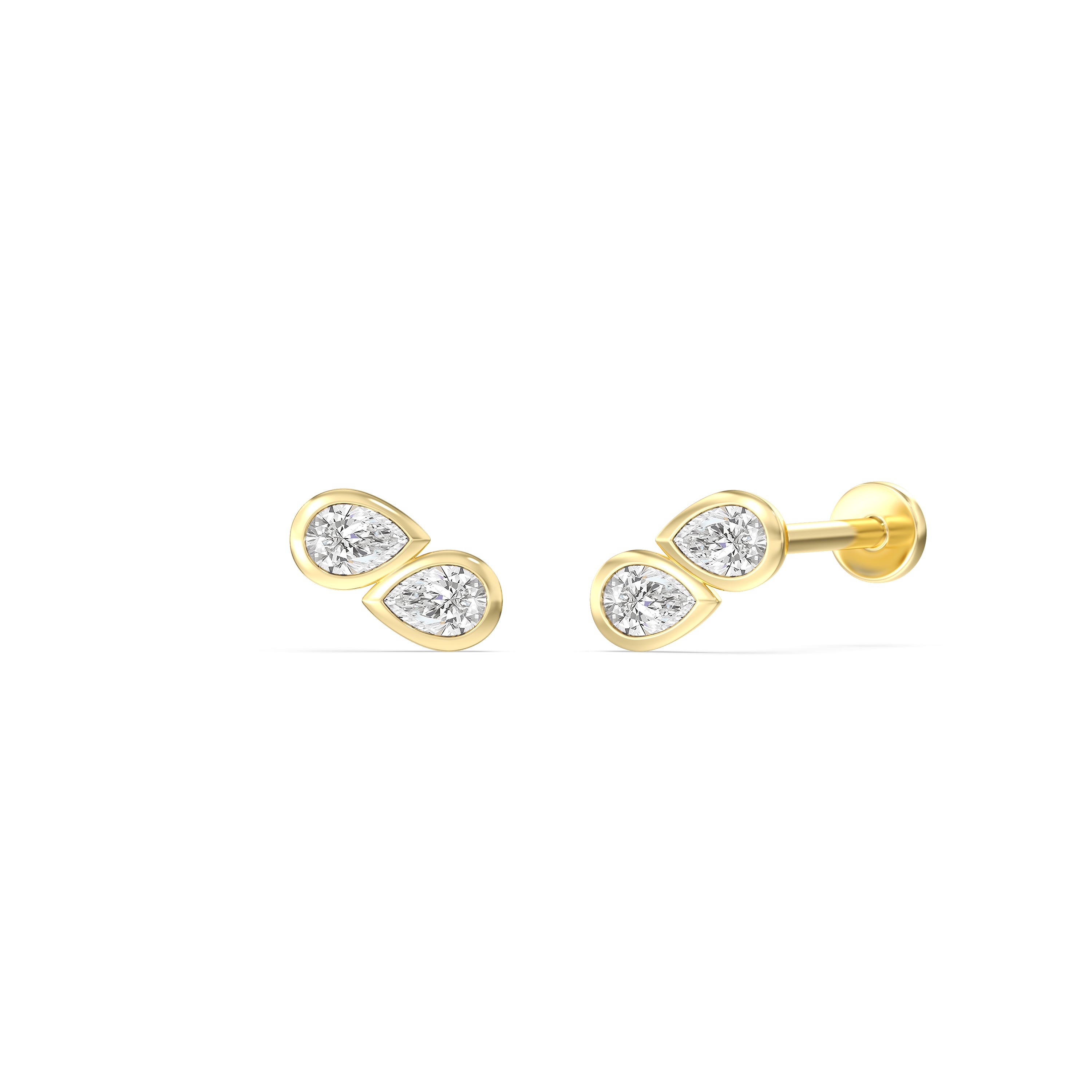 These flatback studs are detailed with a duo of diamonds on pear-shaped bezels. You won't ever have to take them off. The flat backing, where a smooth disc sits flush behind the earlobe, offers no-poke comfort 24/7.