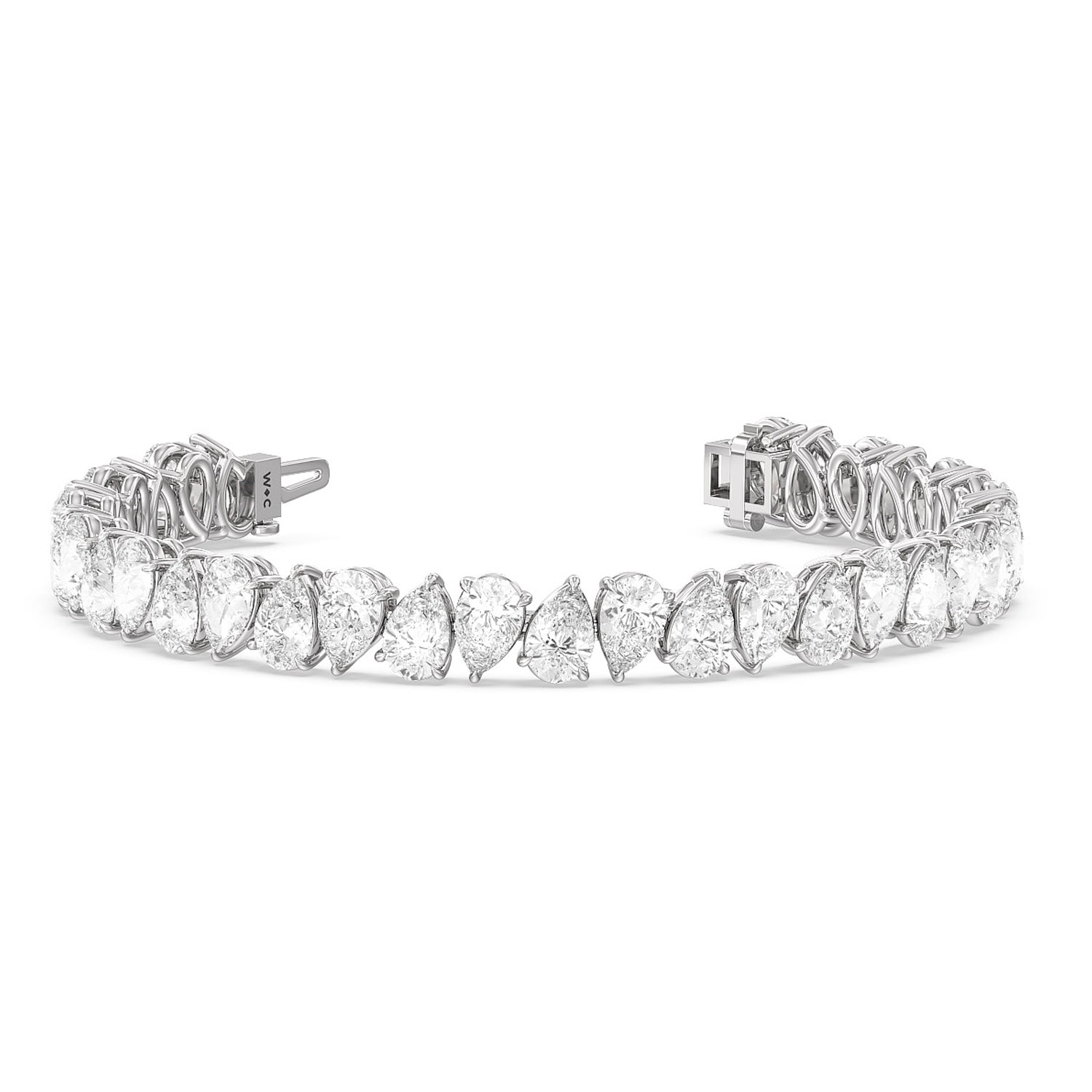 For those who seek a break from the ordinary, we've reimagined the classic tennis bracelet into a more playful and uniquely captivating form. Our Slanted north south Pear Bracelet is designed to add a refreshing twist to your jewelry collection. With its whimsical arrangement of slanted pear-shaped diamonds in a flip flop pattern, this bracelet is the embodiment of creativity and sophistication.