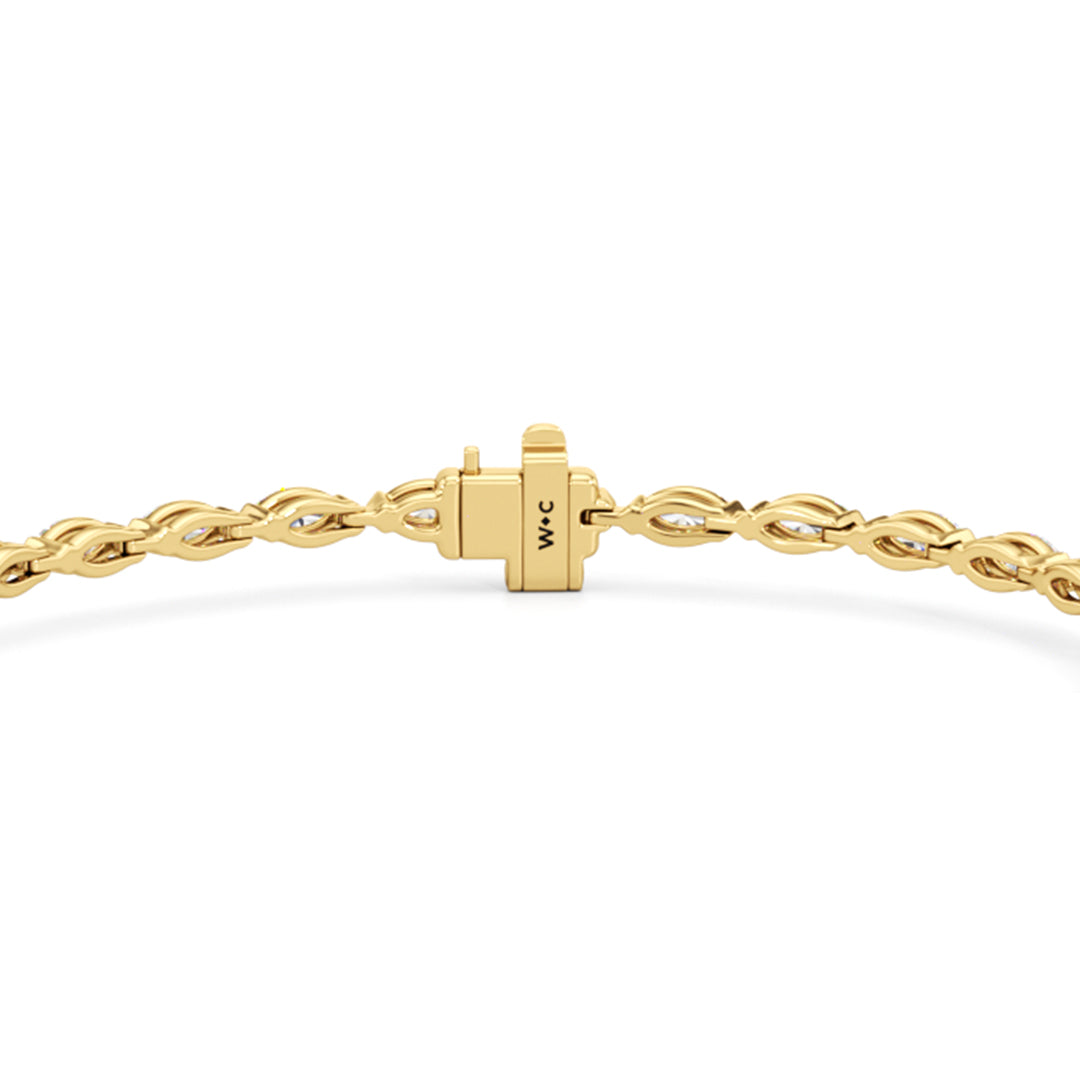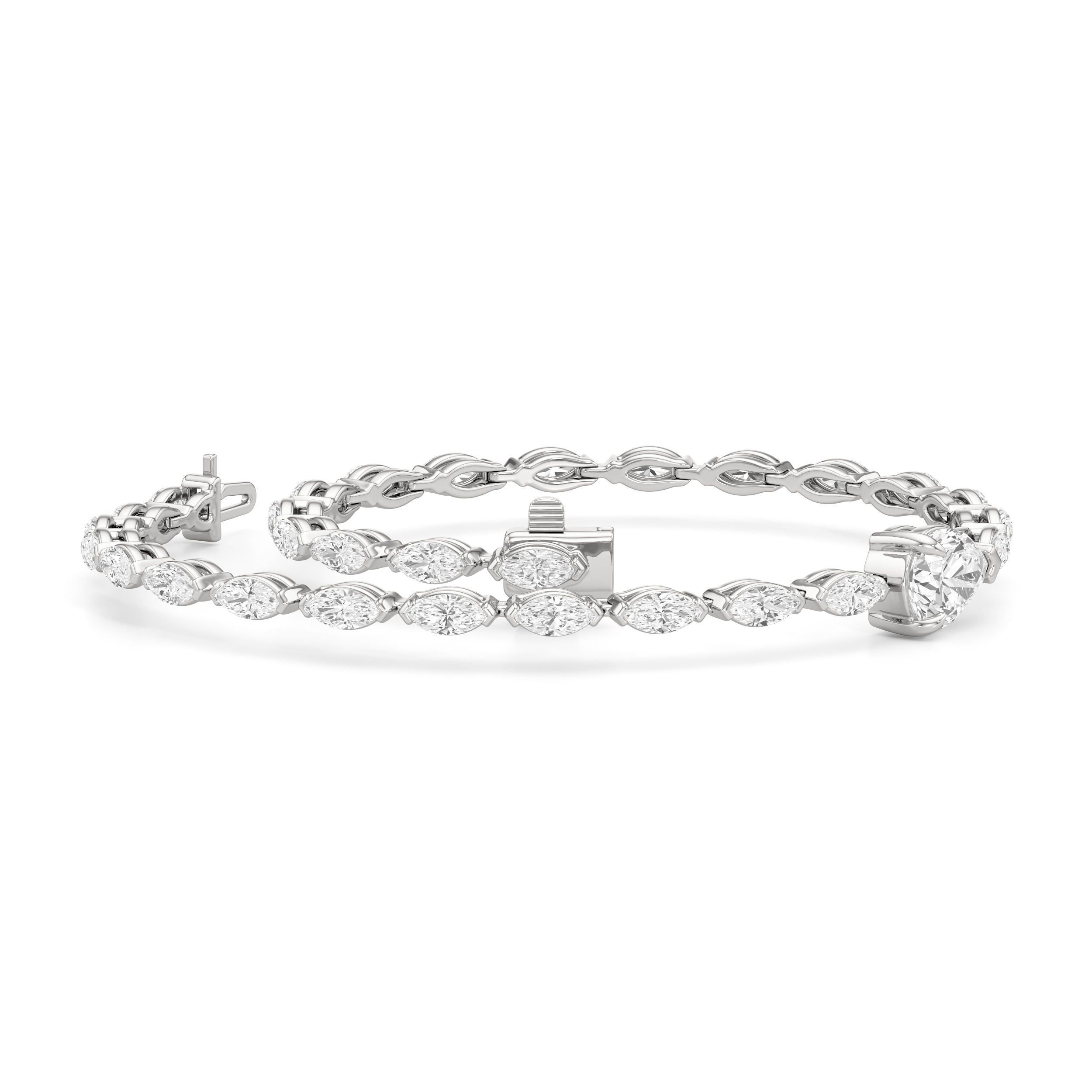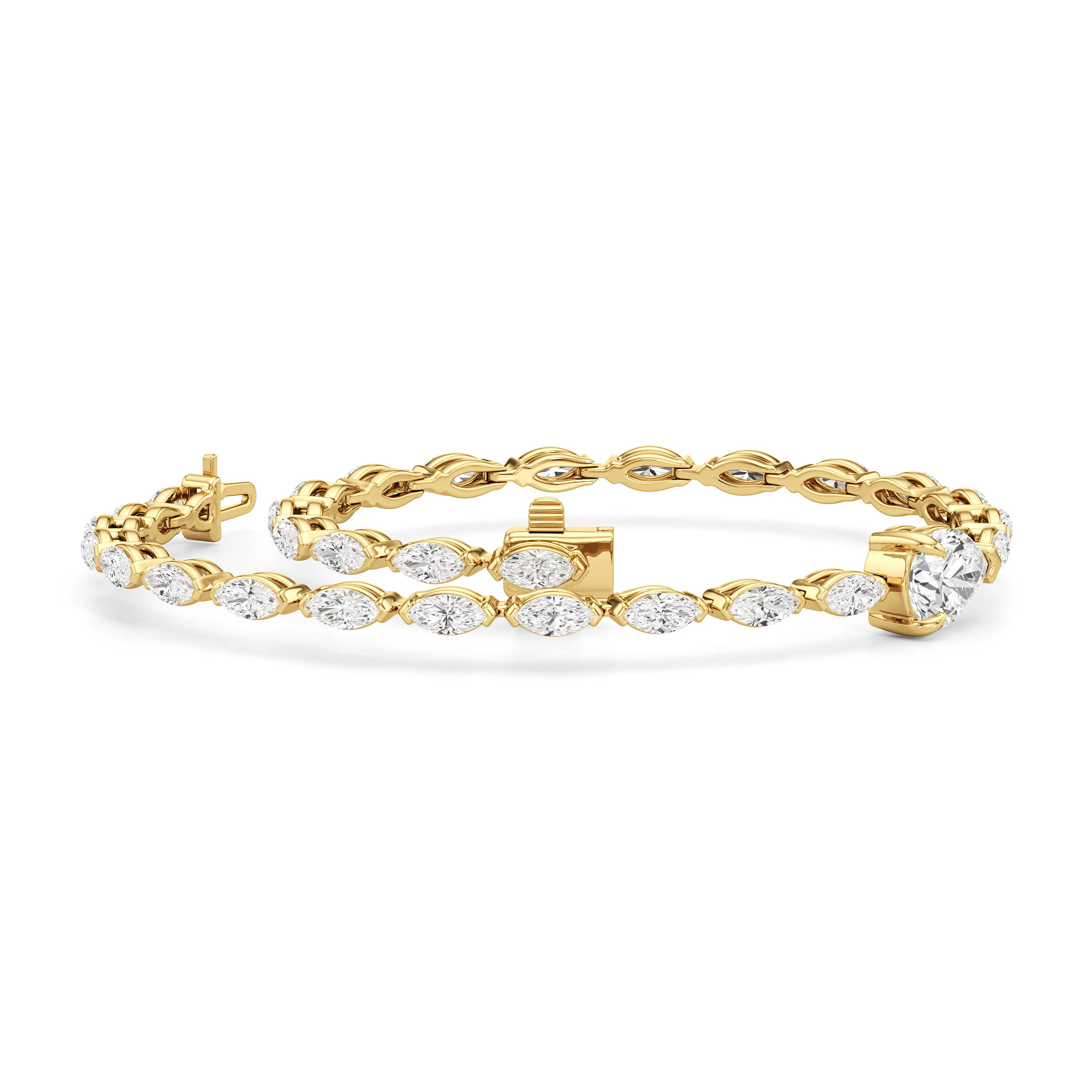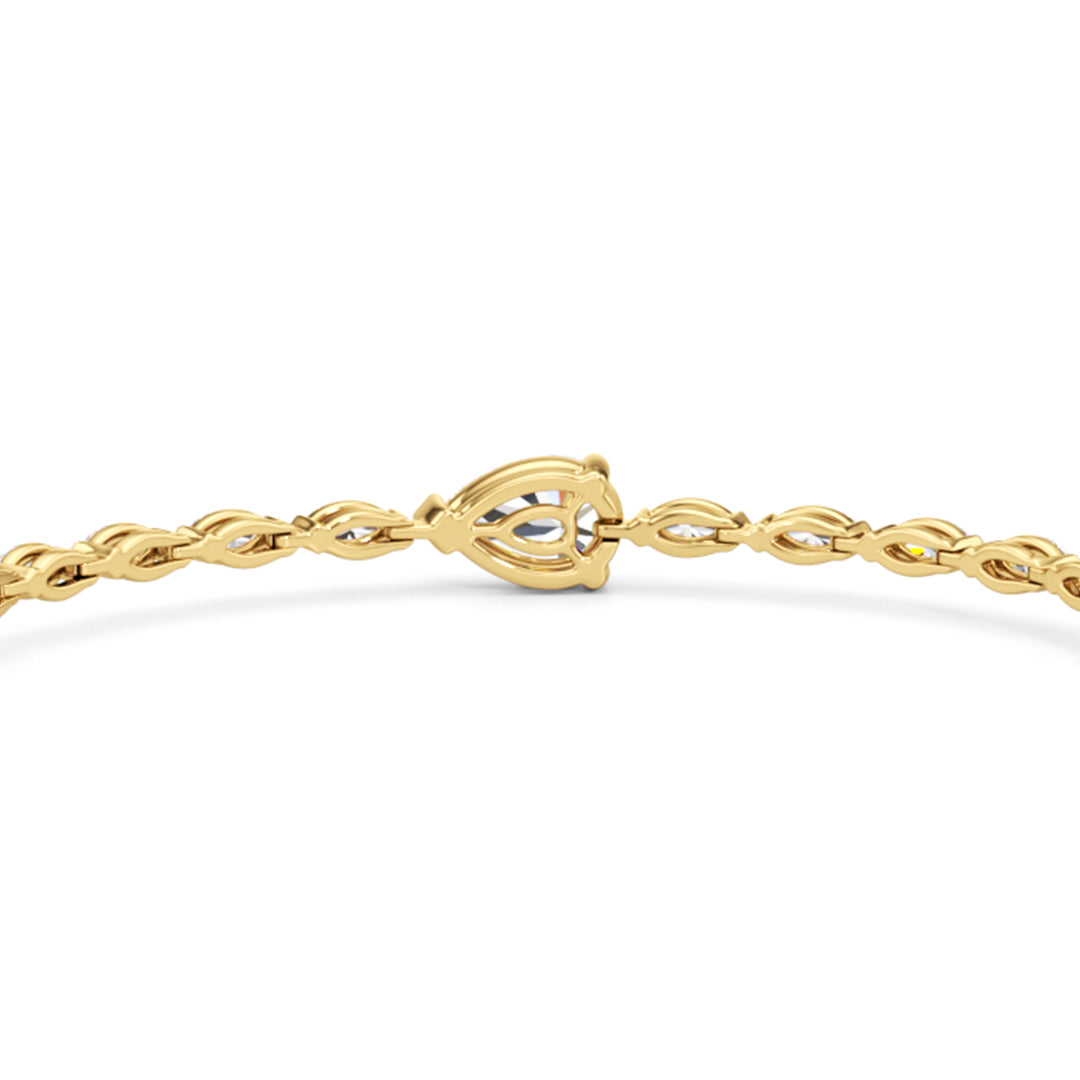 Composed of diamonds steeped in historical romance, this tennis bracelet is enchanting. The bracelet features marquise diamonds arranged in a single row. For a subtle yet striking contrast, a pear diamond marks the center of the diamond line.