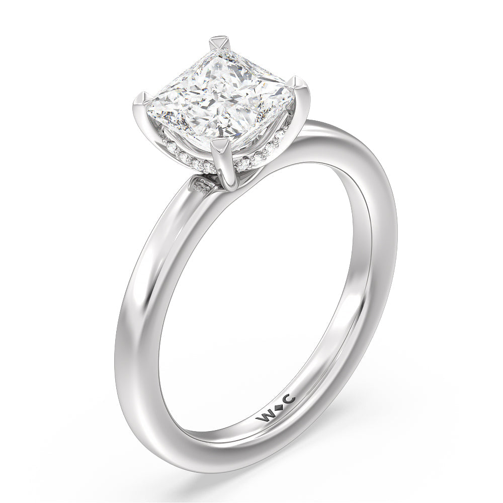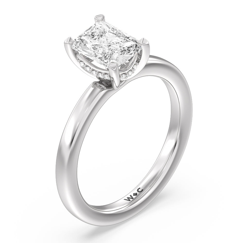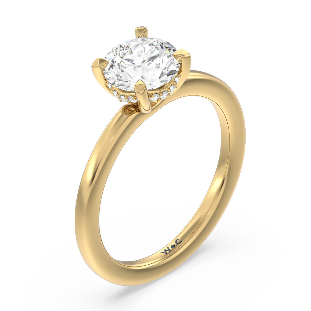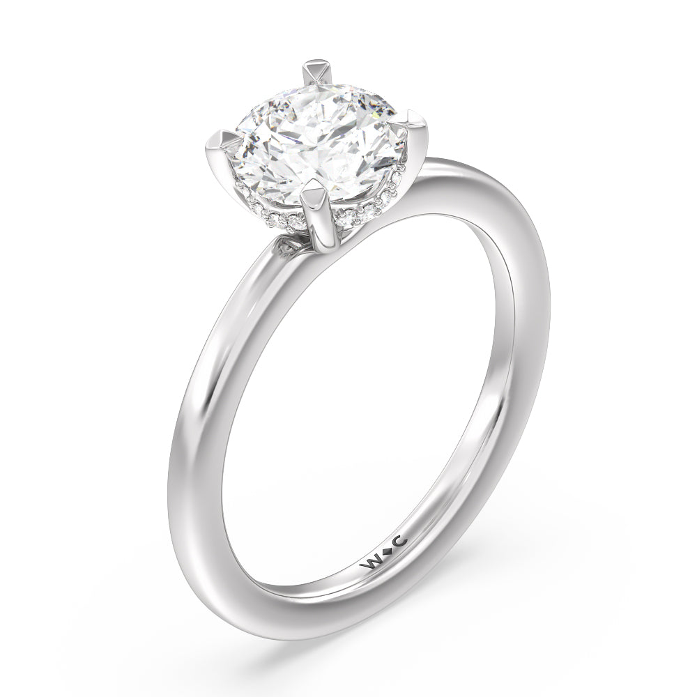 A simple classic solitaire, modernized with a slim line band featuring a subtle hidden halo and signature claw details.