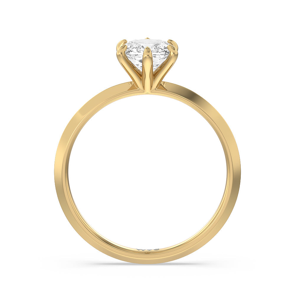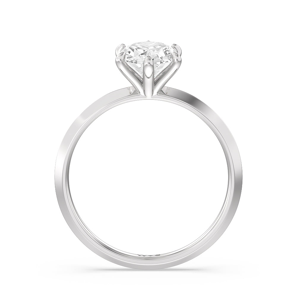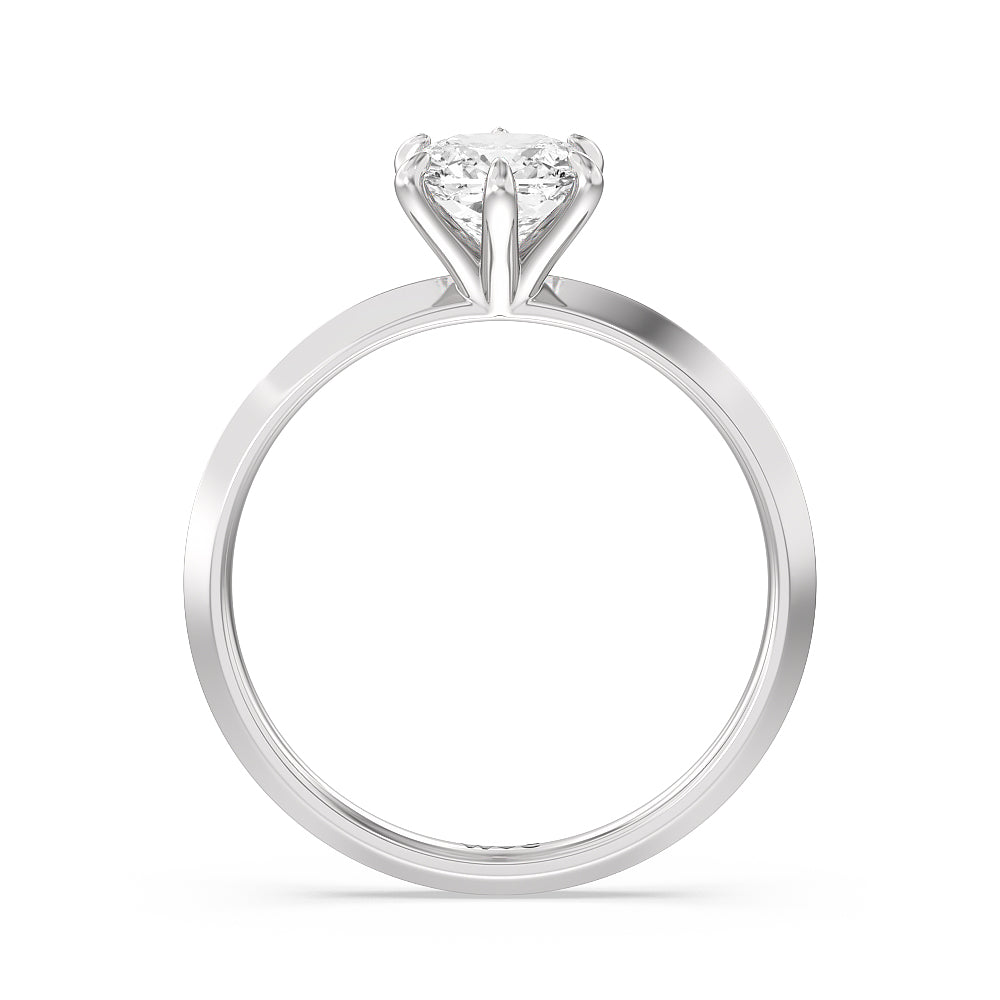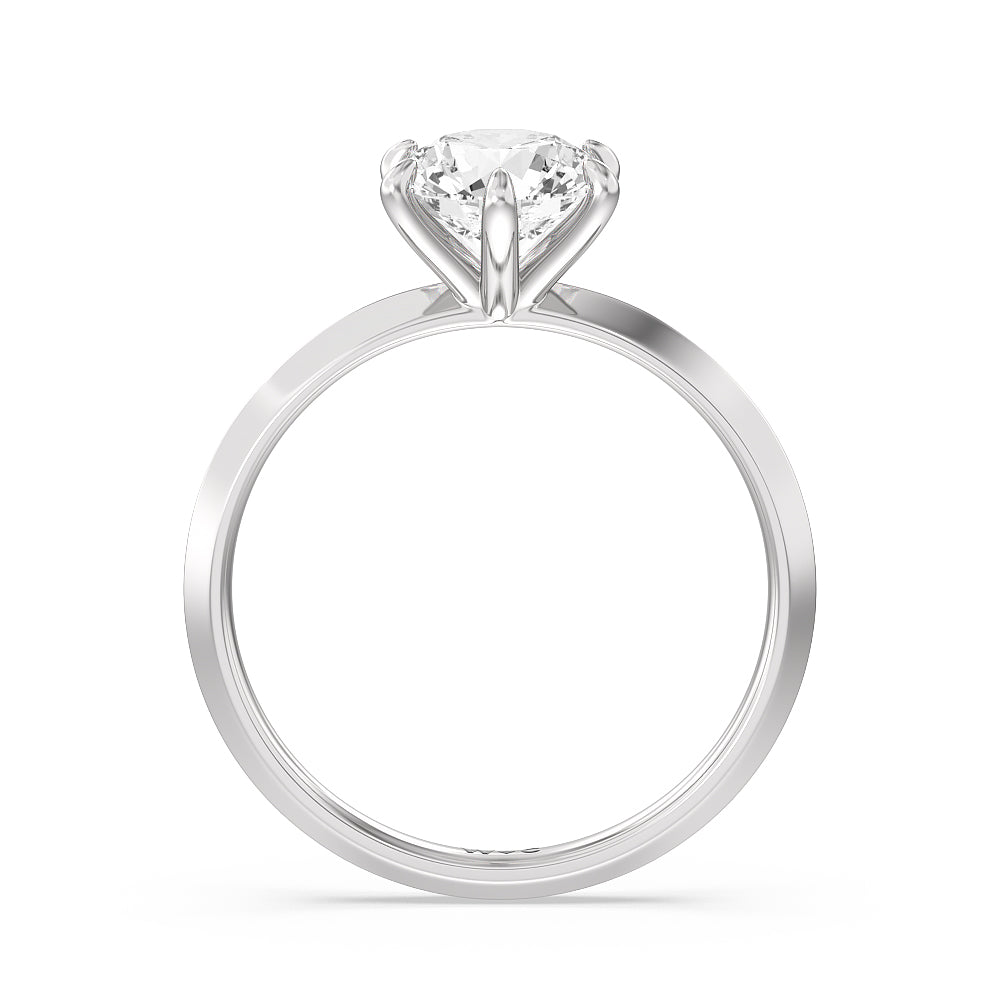 A contemporary yet classic choice for an engagement ring. This sparkling symbol of love and commitment features a delicate yet edgy band with a raised center evoking a knife's edge. The fresh and modern look of the shank is complemented by a stunning lab-grown diamond secured by six prongs. Perfectly simple, this knife-edge solitaire engagement ring is an excellent choice for ladies who seek a bolder ring style while not straying too far away from tradition.