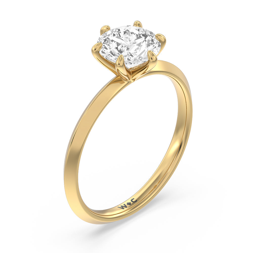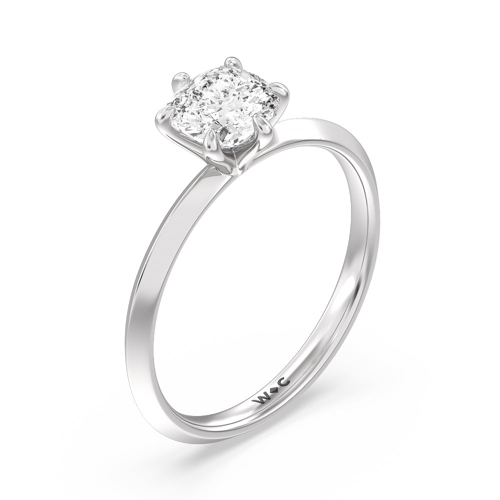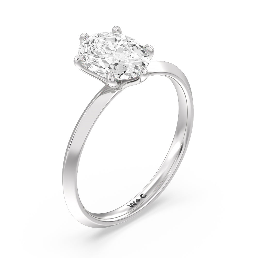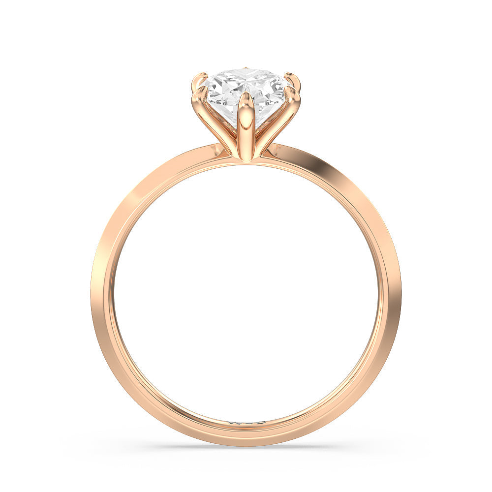 A contemporary yet classic choice for an engagement ring. This sparkling symbol of love and commitment features a delicate yet edgy band with a raised center evoking a knife's edge. The fresh and modern look of the shank is complemented by a stunning lab-grown diamond secured by six prongs. Perfectly simple, this knife-edge solitaire engagement ring is an excellent choice for ladies who seek a bolder ring style while not straying too far away from tradition.