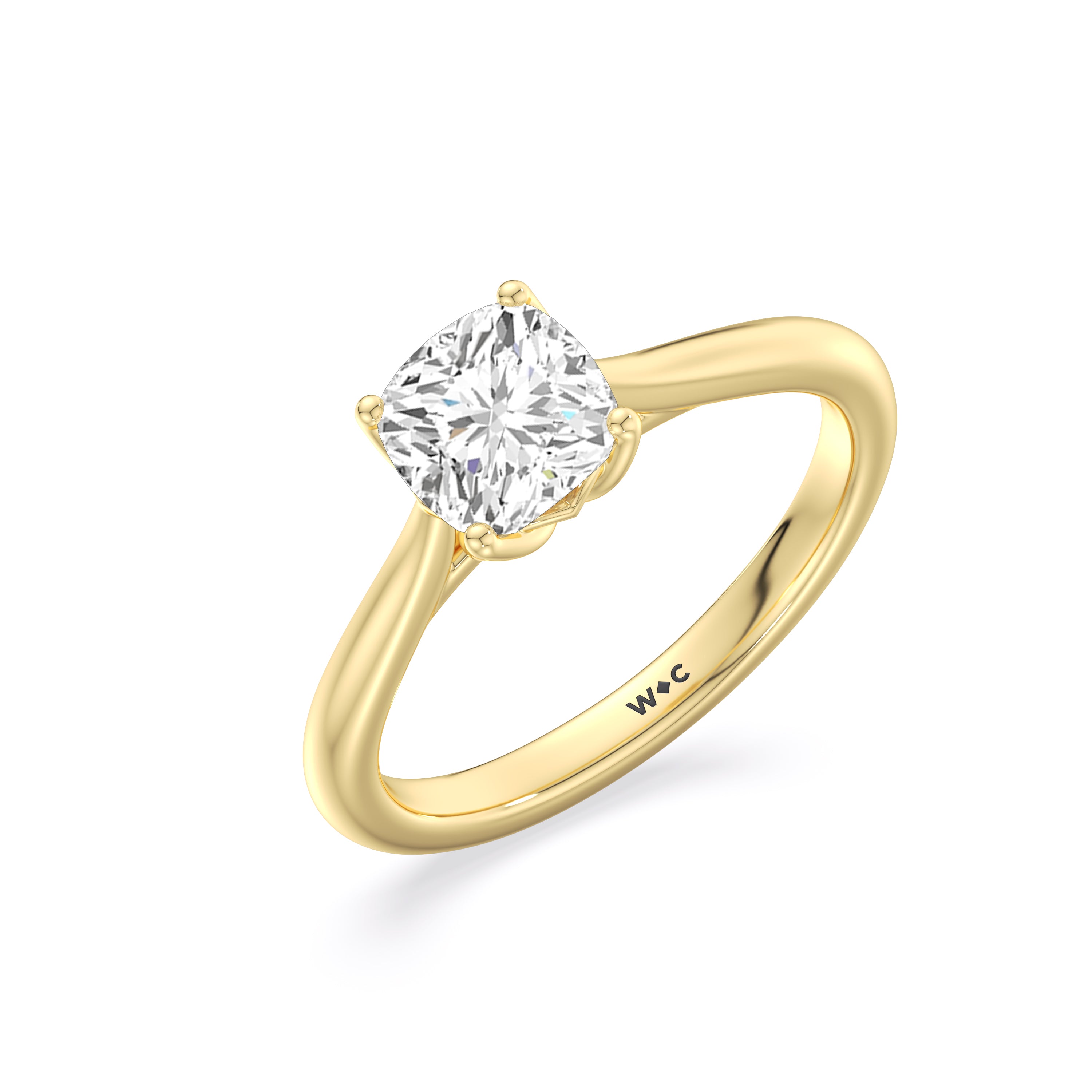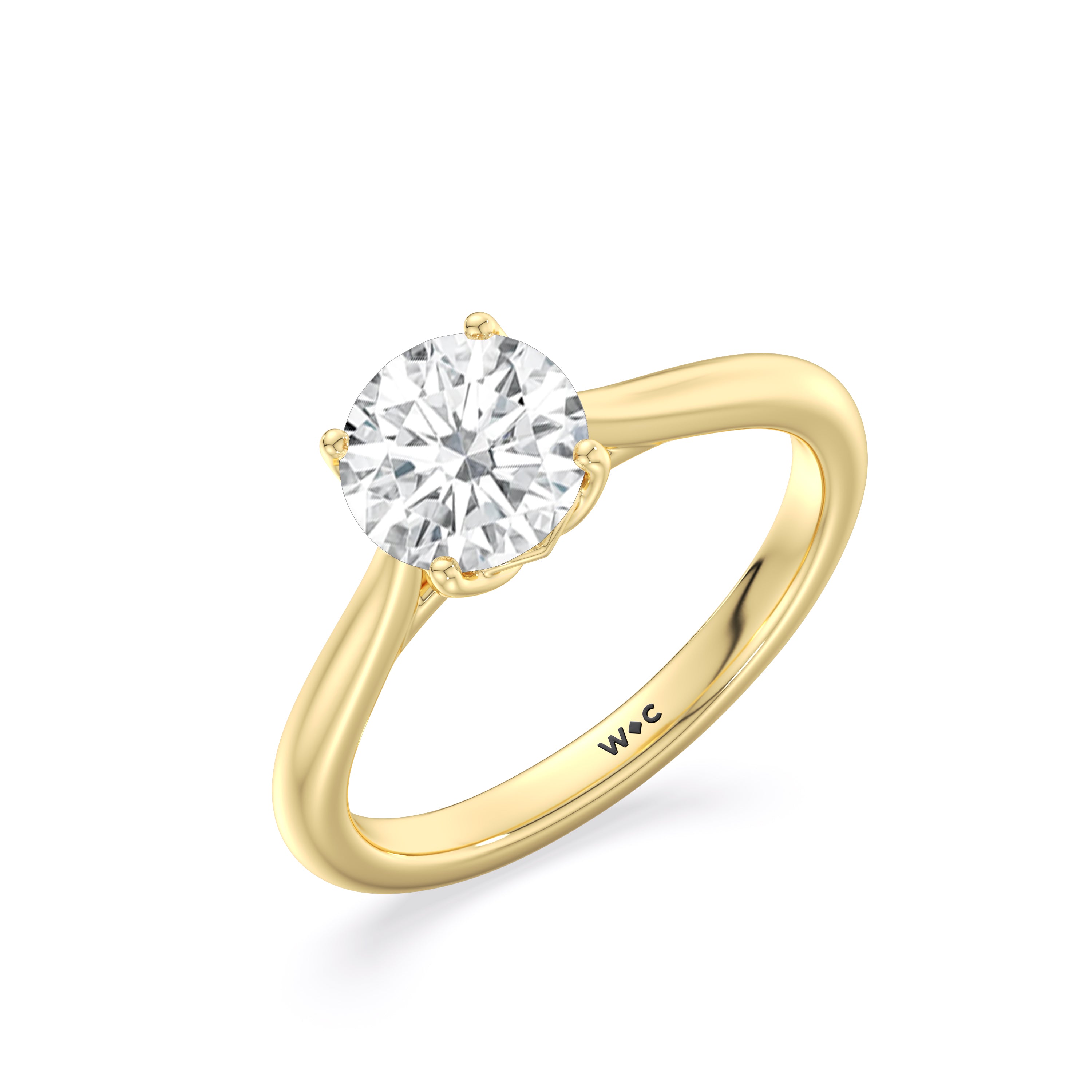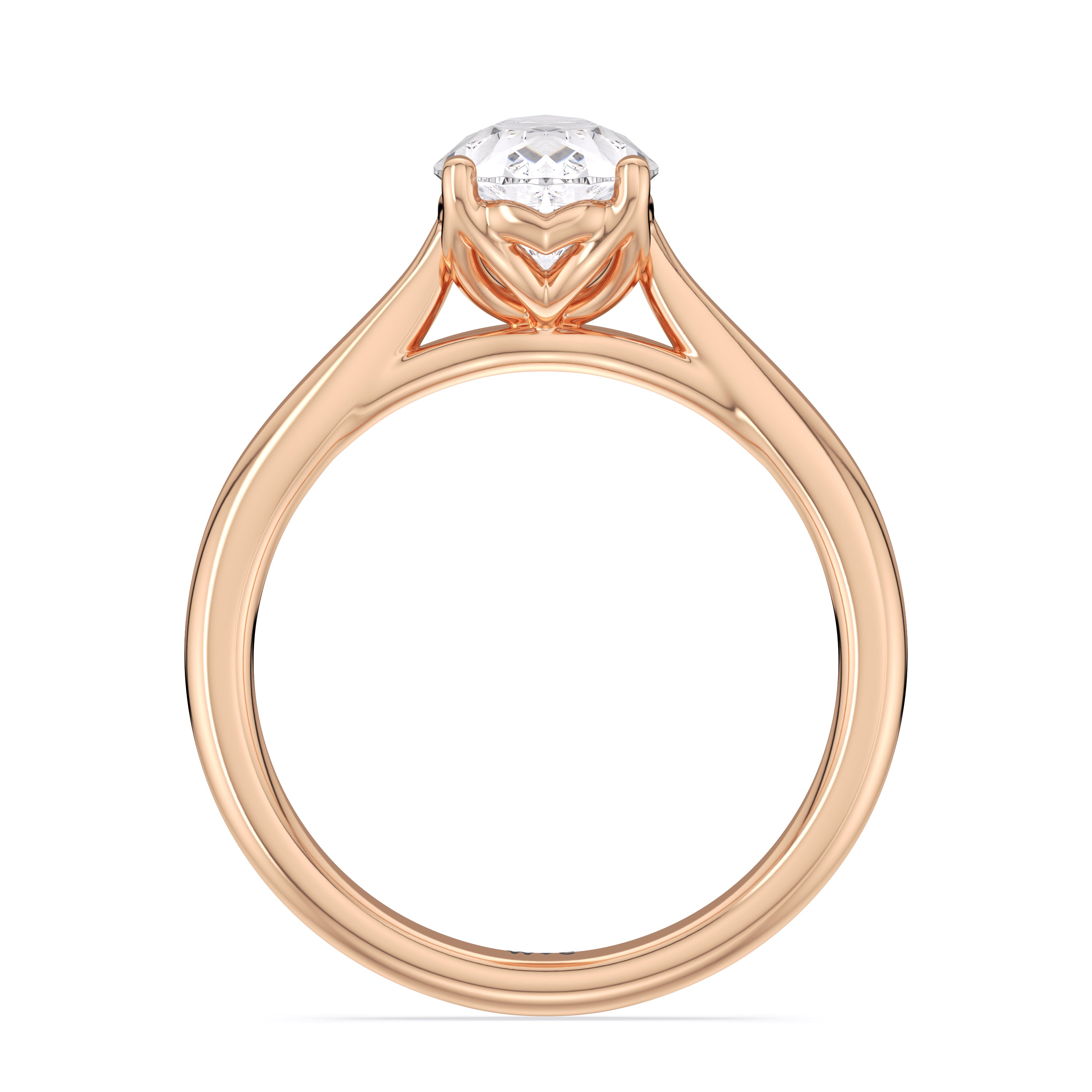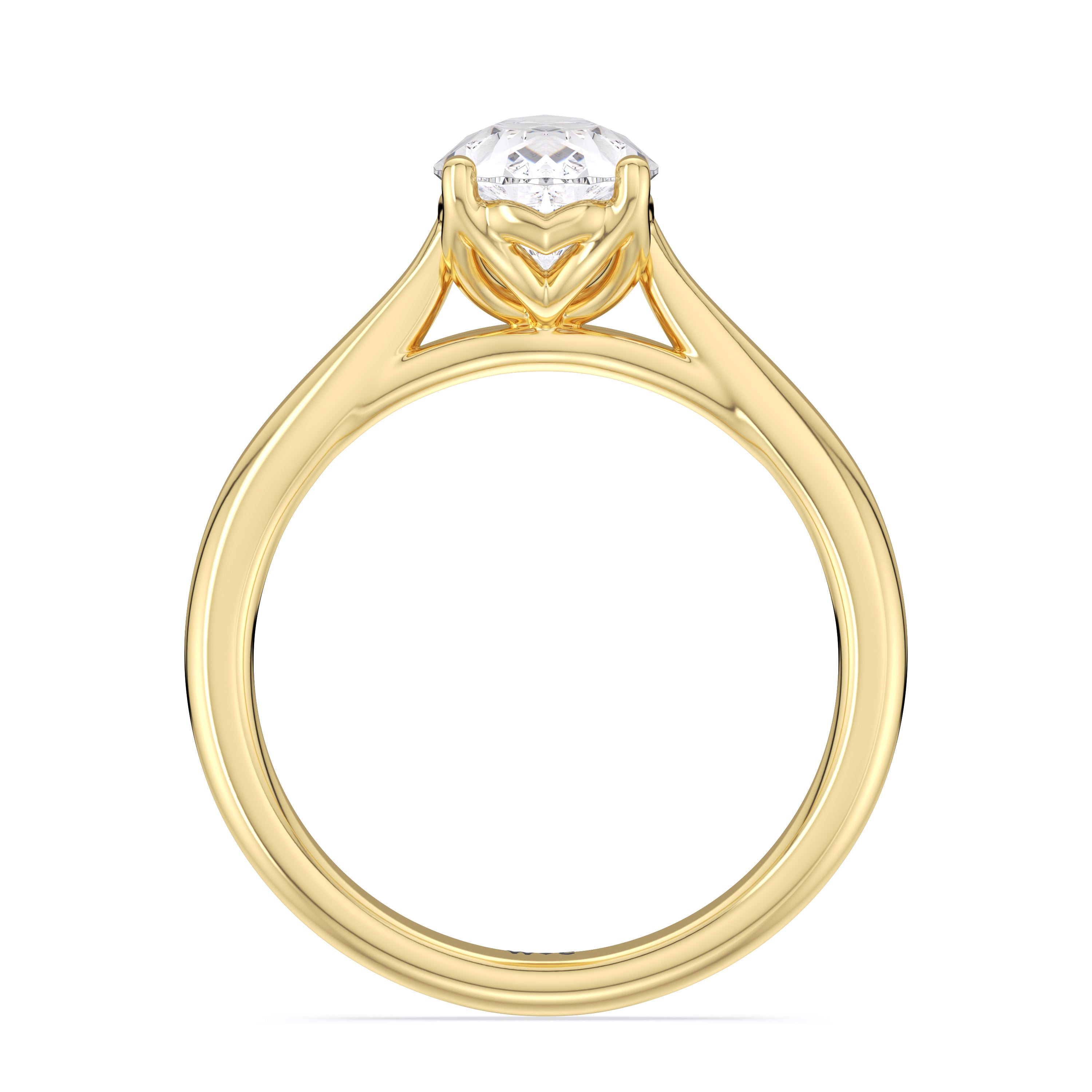 This ring exudes confidence with its stunning simplicity. Its single stone is nestled in a tulip basket and is effortlessly taking the spotlight. A chic tapered band complements the solitary diamond's delicate beauty.